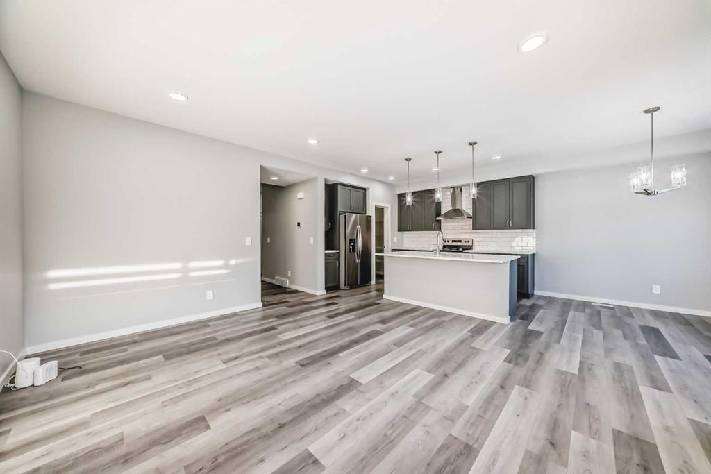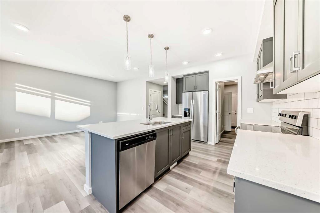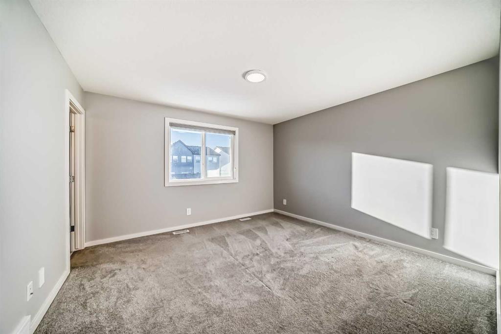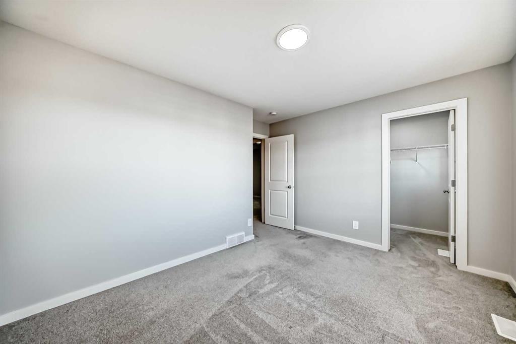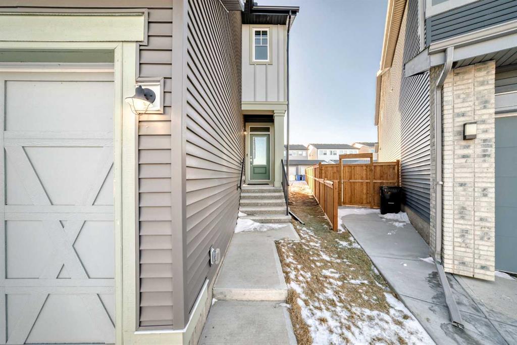 SHOWS 10/10 Welcome to this beautifully finished detached home in the growing community of Rangeview, offering modern design, functional living spaces, and the advantage of immediate possession. Whether you’re a growing family, an investor, or a buyer eager to move right in, this vacant home has AMAZING LOCATION and EXCELLENT DESIGN ready to welcome its next owners. From the street, the home showcases a striking contemporary façade with clean lines, modern siding, and tasteful architectural detailing that blends seamlessly with the neighborhood’s fresh, urban feel. The double attached garage and welcoming front entry complete the polished curb appeal. Step inside and you’re greeted by a bright and inviting entrance that sets the tone for the rest of the home. Just off the entry is a mudroom with direct access to the double attached garage—perfect for keeping everyday life organized. The main floor flows effortlessly into a spacious living area ideal for relaxing or entertaining, followed by a well-defined dining space that connects beautifully to the heart of the home. The kitchen is a standout, featuring a huge central island with ample seating, modern cabinetry and finishes, and a walk-through pantry that adds both convenience and storage. A powder room completes the main level, thoughtfully placed for guests. Upstairs, you’ll find three generously sized bedrooms, each designed with comfort in mind. The primary retreat offers a spacious layout, a walk-in closet, and a private ensuite bathroom, creating a perfect place to unwind. The two additional bedrooms also feature their own walk-in closets, a rare and highly desirable touch. This level is completed by a 4-piece main bathroom, a convenient laundry room, and a bonus room—ideal as a family lounge, home office, or play area. The basement remains unfinished, providing a blank canvas for the new owners to customize—whether that’s additional bedrooms, a home gym, or an entertainment space. Step outside to discover a massive backyard with back lane access, offering incredible flexibility. There’s AMPLE ROOM TO PARK AN RV at the back (pie shape lot with back lane), add future landscaping, or create your dream outdoor living space—something truly hard to find. Located in Rangeview, Calgary’s first garden-to-table inspired community, residents enjoy walking paths, parks, future schools, and a strong sense of neighborhood connection. With easy access to major roadways, nearby amenities, and continued community growth, this is a location that offers both lifestyle and long-term value. Vacant, move-in ready, and available for immediate possession—this is your opportunity to secure a modern home with space to grow in one of Calgary’s most exciting new communities.