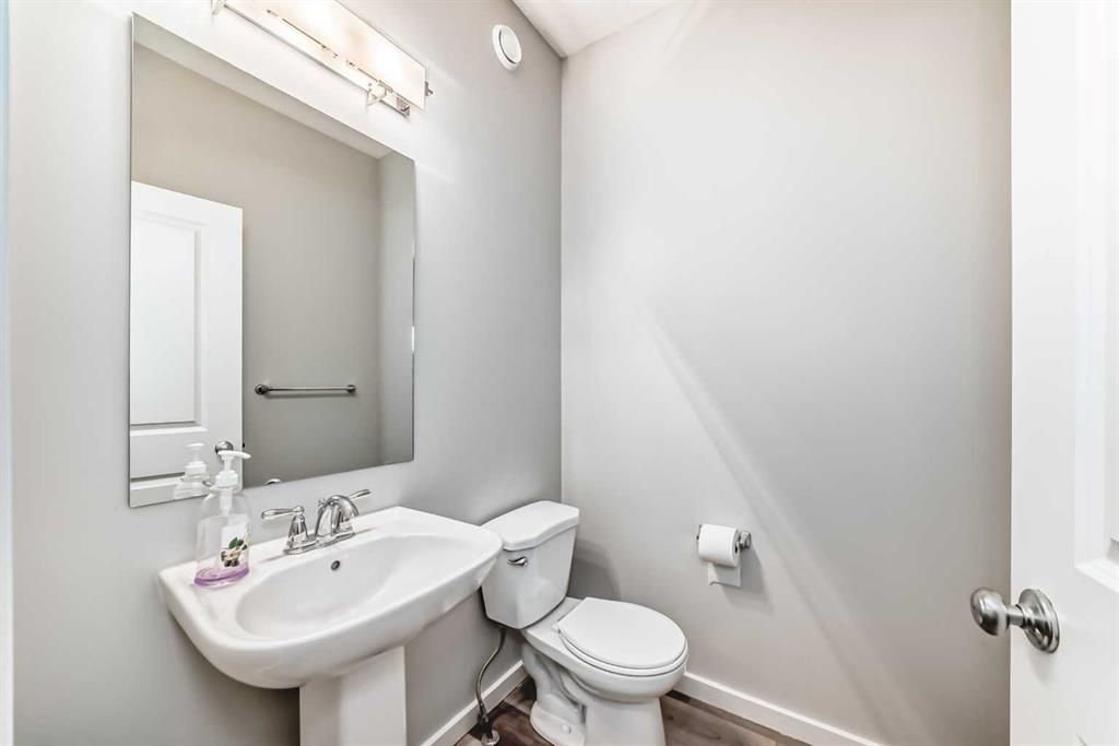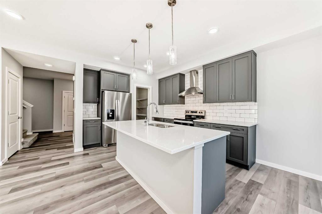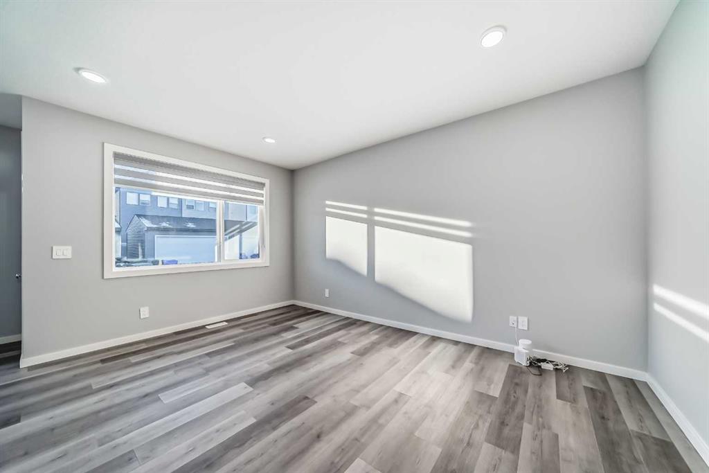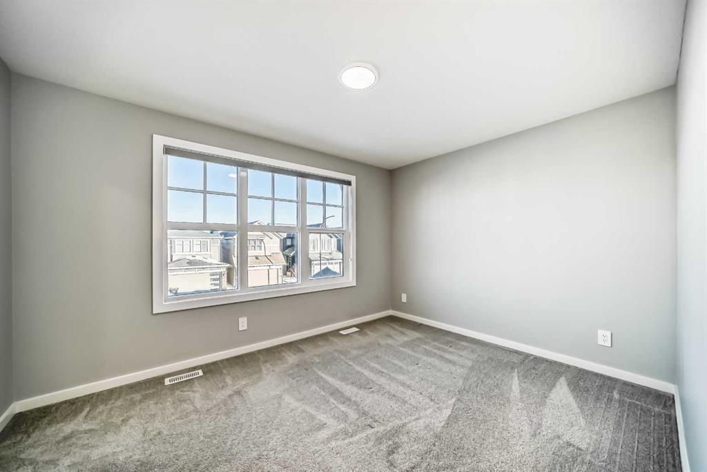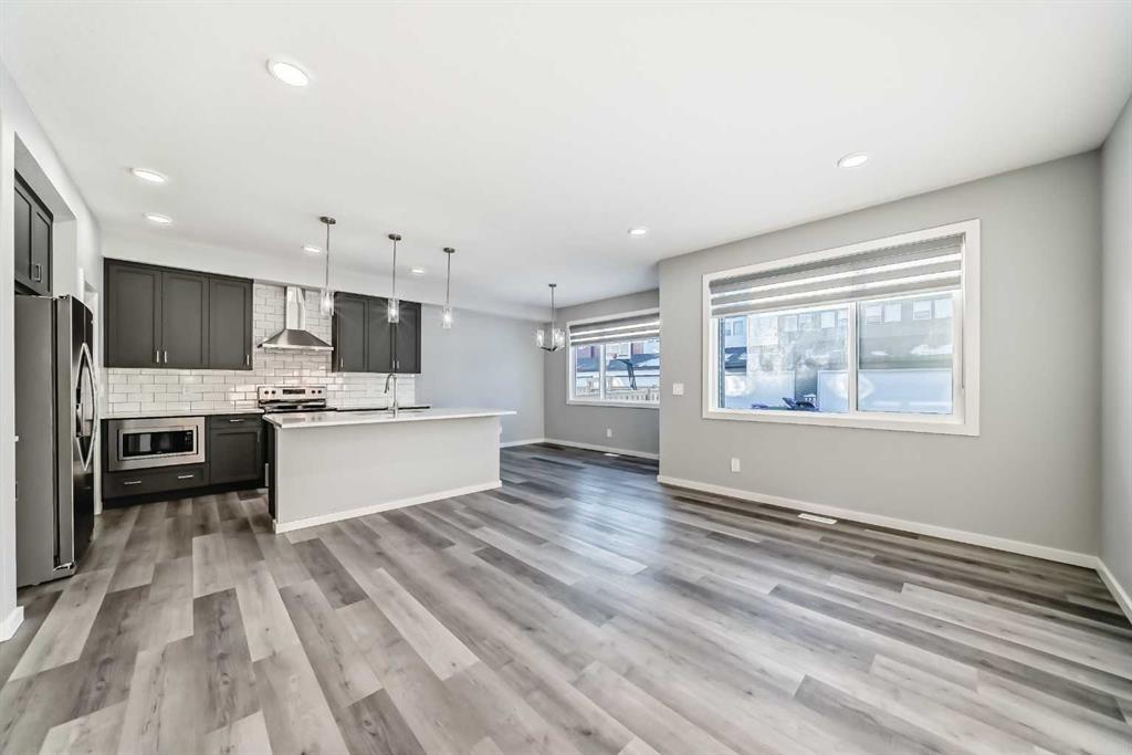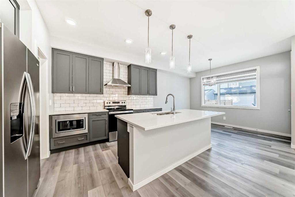 SHOWS 10/10 Welcome to this beautifully finished detached home in the growing community of Rangeview, offering modern design, functional living spaces, and the advantage of immediate possession. Whether you’re a growing family, an investor, or a buyer eager to move right in, this vacant home has AMAZING LOCATION and EXCELLENT DESIGN ready to welcome its next owners. From the street, the home showcases a striking contemporary façade with clean lines, modern siding, and tasteful architectural detailing that blends seamlessly with the neighborhood’s fresh, urban feel. The double attached garage and welcoming front entry complete the polished curb appeal. Step inside and you’re greeted by a bright and inviting entrance that sets the tone for the rest of the home. Just off the entry is a mudroom with direct access to the double attached garage—perfect for keeping everyday life organized. The main floor flows effortlessly into a spacious living area ideal for relaxing or entertaining, followed by a well-defined dining space that connects beautifully to the heart of the home. The kitchen is a standout, featuring a huge central island with ample seating, modern cabinetry and finishes, and a walk-through pantry that adds both convenience and storage. A powder room completes the main level, thoughtfully placed for guests. Upstairs, you’ll find three generously sized bedrooms, each designed with comfort in mind. The primary retreat offers a spacious layout, a walk-in closet, and a private ensuite bathroom, creating a perfect place to unwind. The two additional bedrooms also feature their own walk-in closets, a rare and highly desirable touch. This level is completed by a 4-piece main bathroom, a convenient laundry room, and a bonus room—ideal as a family lounge, home office, or play area. The basement remains unfinished, providing a blank canvas for the new owners to customize—whether that’s additional bedrooms, a home gym, or an entertainment space. Step outside to discover a massive backyard with back lane access, offering incredible flexibility. There’s AMPLE ROOM TO PARK AN RV at the back (pie shape lot with back lane), add future landscaping, or create your dream outdoor living space—something truly hard to find. Located in Rangeview, Calgary’s first garden-to-table inspired community, residents enjoy walking paths, parks, future schools, and a strong sense of neighborhood connection. With easy access to major roadways, nearby amenities, and continued community growth, this is a location that offers both lifestyle and long-term value. Vacant, move-in ready, and available for immediate possession—this is your opportunity to secure a modern home with space to grow in one of Calgary’s most exciting new communities.