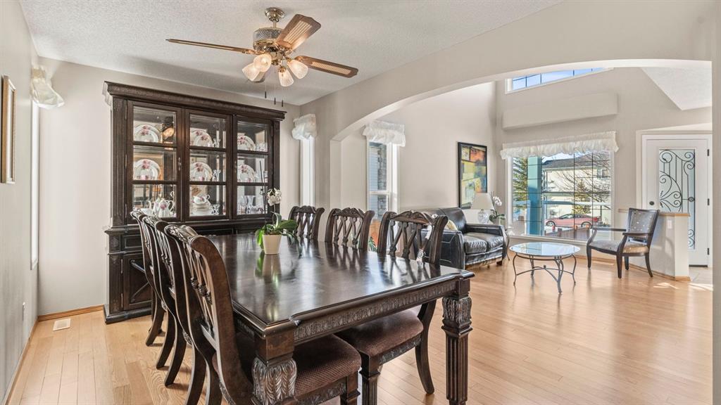 Welcome to this beautifully maintained two-storey home in the highly sought-after community of Rocky Ridge, offering 2,201 sq. ft. of thoughtfully designed living space above grade, plus a fully developed basement. With mountain views, abundant natural light, and an ideal family-friendly layout, this home blends comfort, functionality, and timeless style in one of northwest Calgary’s most desirable neighbourhoods. The main floor impresses with soaring ceilings, expansive windows, and a bright, open layout that feels both spacious and welcoming. A large living room with fireplace provides a cozy setting for everyday living, while the formal dining area is perfectly positioned for hosting family dinners and special occasions. The well-appointed kitchen features ample cabinetry, generous counter space, a central island, and exceptional storage—designed for both practicality and effortless entertaining. A convenient main-floor laundry room, 2-piece powder room, and central air conditioning complete this level, ensuring everyday comfort and ease. Upstairs, a charming loft overlooks the main living area, offering a flexible space ideal for a home office, reading nook, or additional family lounge. The upper level is bathed in natural light and features three generously sized bedrooms and two full bathrooms. The spacious primary retreat is a true highlight, complete with large windows, excellent closet space, and a spa-inspired ensuite featuring a soaker tub, separate shower, and bright double-vanity area—your own private place to unwind. The fully developed basement expands the living space with a fourth bedroom and a 3-piece bathroom, making it perfect for guests, teenagers, or a private home office, along with additional room for recreation or hobbies. Outside, enjoy mountain views and a low-maintenance yard, while the attached garage provides everyday convenience and additional storage. The home’s bright interior, easy-care finishes, excellent storage throughout, and thoughtful layout reflect the owners’ pride of ownership. Located in the vibrant community of Rocky Ridge—close to parks, walking paths, schools, shopping, and transit—this home offers exceptional value, space for the whole family, and a lifestyle you’ll love. Bright. Spacious. Exceptionally functional. This is Rocky Ridge living at its finest.