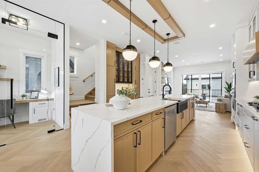 **OPEN HOUSE SATURDAY JAN 10TH BETWEEN 2PM-4PM** | **ONLY ONE SIDE AVAILABLE THE OTHER SIDE IS SOLD & QUICK POSSESSION AVAILABLE!** Welcome to this truly remarkable residence in the heart of the highly desirable Banff Trail community, where contemporary architecture meets meticulous craftsmanship. This property seamlessly blends luxury, functionality, and investment potential. South-facing backyard, and a 2-bedroom legal basement suite, this home offers unparalleled comfort, elegance, and versatility for families and investors alike. From the moment you step through the door, you’ll be captivated by the open-concept layout, high-end finishes, and abundance of natural light. The main floor is an entertainer’s dream, designed to maximize functionality without compromising style. The central gourmet kitchen is the heart of the home, featuring stainless steel appliances, custom high-rise cabinetry, quartz countertops, a spacious built-in pantry, and a large island with bar seating. Whether you’re hosting dinner parties or enjoying casual meals with family, this kitchen is sure to impress. Adjacent to the kitchen, the dining area is flooded with light from oversized windows, creating a warm and inviting space for gatherings. The main-floor office, thoughtfully tucked away, provides the perfect environment for productivity, whether for remote work, study, or personal projects. A well-organized mudroom, complete with built-in storage and a bench, adds a layer of convenience, while the elegantly designed half bathroom enhances the functionality of this level. The upper floor continues to impress with its focus on luxury and practicality. The primary suite is a true retreat, featuring sky-high vaulted ceilings, a walk-in closet, and a spa-like 5-piece ensuite. The ensuite is a masterpiece in itself, offering a free-standing soaker tub, a walk-in rain shower, dual sinks, and premium finishes, creating a space that feels like your own private sanctuary. Two additional bedrooms, each with sophisticated tray ceiling accents, provide comfort and style for family members or guests. A spacious laundry room with a sink, counter space, and linen storage ensures organization and efficiency on this level. One of the home’s standout features is the fully developed legal basement suite, which offers a host of possibilities. With its own private side entrance, this legal suite is designed for maximum privacy and functionality. It includes two spacious bedrooms, a sleek kitchen with quartz countertops and modern finishes, a stylish 4-piece bathroom, and its own laundry facilities. Whether used as a mortgage helper, a rental property, or a space for extended family, this legal suite is a valuable addition to the home. Just steps from the Banff Trail LRT station, quick and easy access to downtown Calgary, shopping, dining. The University of Calgary is only minutes away!