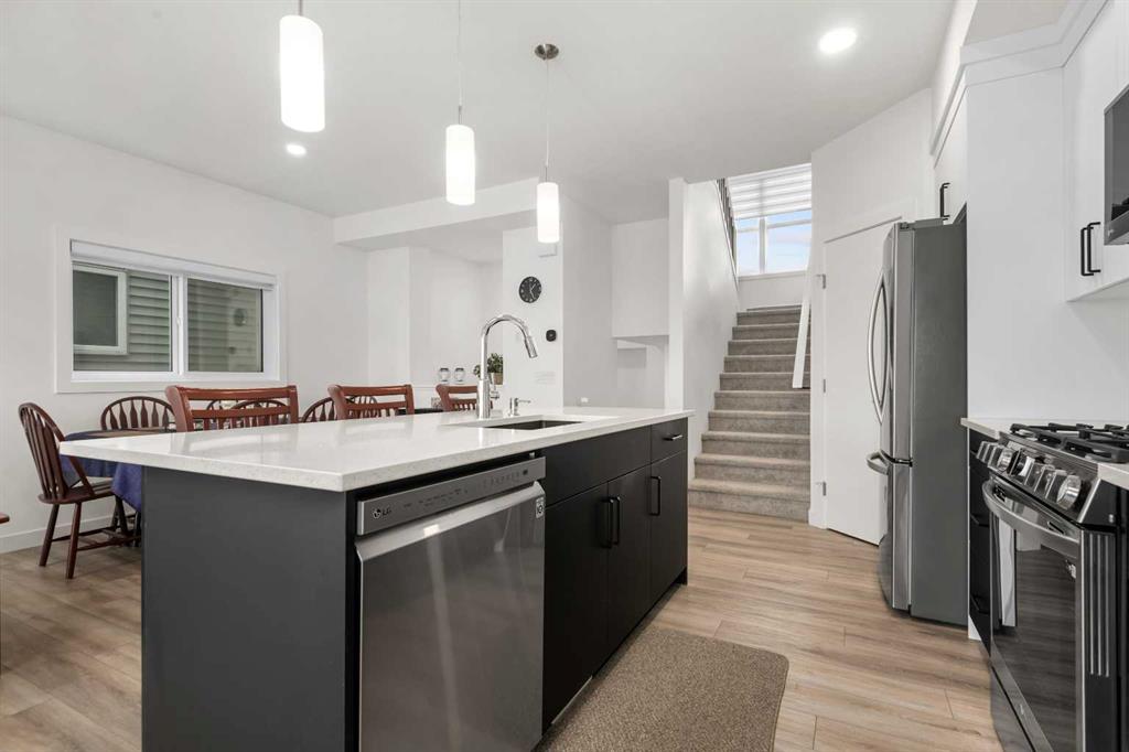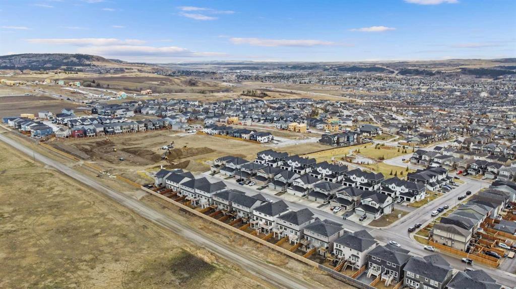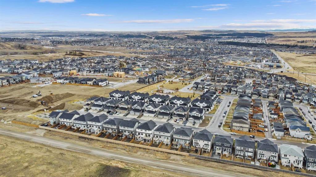 Experience elevated living in this meticulously crafted modern semi detached home, backing onto proposed park & recreation space offering over 2,200 sq ft of beautifully developed living space, stunning mountain views, walk-out finished basement, 3 spacious bedrooms, 3 bathrooms, and striking 9-foot ceilings throughout. With architectural details that balance sophistication and function, this home delivers comfort, style, and unbeatable value. As you step inside, you're welcomed by a bright, open-concept main floor—ideal for both daily life and entertaining. The chef-inspired kitchen is a true centerpiece, featuring elegant quartz countertops, stainless steel appliances, a gas range, and a generous central island perfect for prepping, dining, and gathering. The adjacent living room is anchored by a beautiful electric fireplace and is bathed in natural light thanks to oversized windows that frame unobstructed views of the mountains and open plains. Step out onto the private back deck to spectacular mountain views to the west and open fields to the north, perfect for BBQs or quiet evenings soaking in the scenery. Upstairs, the home continues to impress with a stunning bonus room showcasing soaring ceilings and custom-built-in cabinetry—perfect as a home office, lounge, or creative space. The expansive primary suite offers a tranquil retreat, complete with a sleek 3-piece ensuite and a large walk-in closet. Two additional well-sized bedrooms and a full bathroom offer comfort and flexibility for family or guests. The fully developed walkout basement adds incredible versatility to this home, with large windows, a stylish wet bar with a full size fridge, and custom cabinetry, it's the ideal space for a home theater, guest suite, or secondary living area. The walkout design opens to a private grade-level concrete patio and fully fenced yard. A large furnace/storage room offers additional practicality, with the option of adding a bathroom with rough in plumbing. Location is key, heritage hills offer an abundance of green space walking/bike paths and close proximity to schools, parks and all amenities with easy access to highway 1A leading you to the mountains in less than an hour. You're going to love this home, perfectly blending modern elegance with functional design and breathtaking views, this home is ready to impress. Book your viewing today!