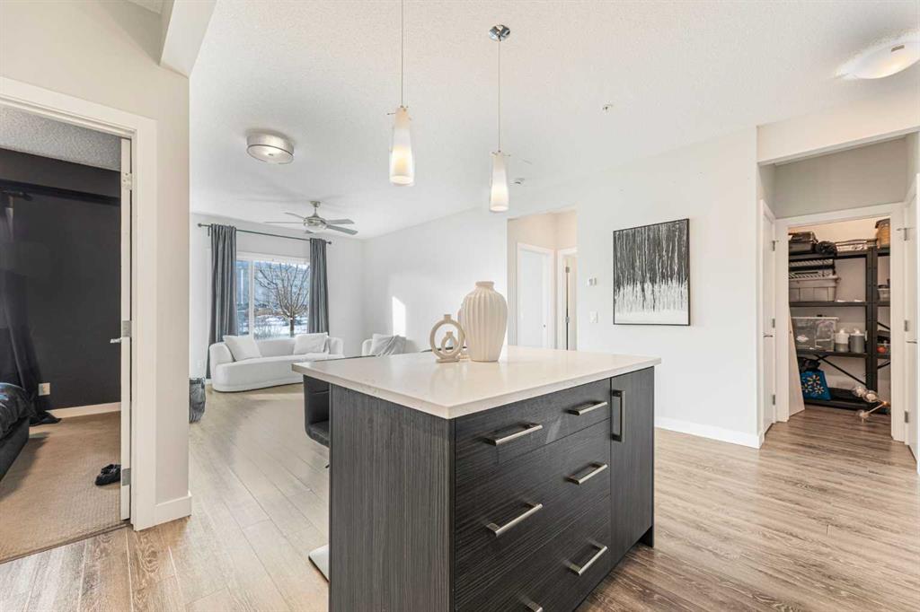 Interior:ceiling fan(s), kitchen island, no animal home, no smoking home, quartz counters, separate entrance, storage, vinyl windows, walk-in closet(s)