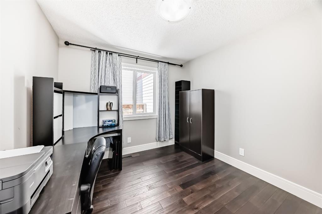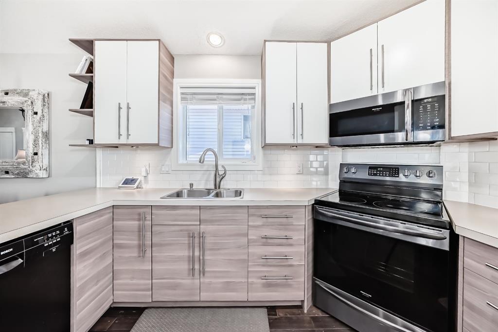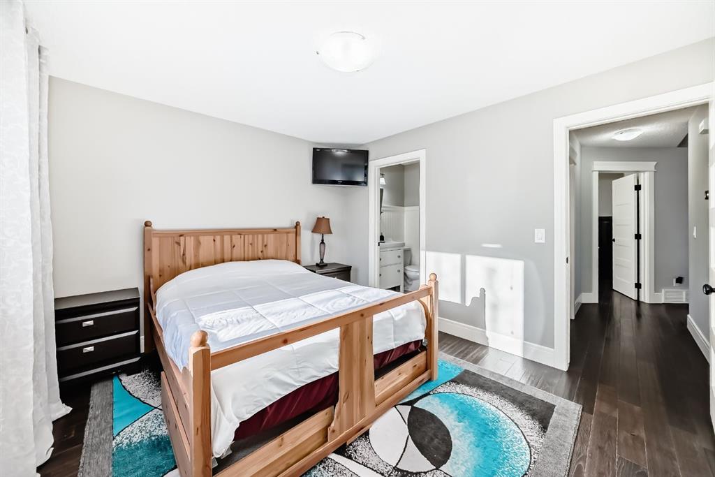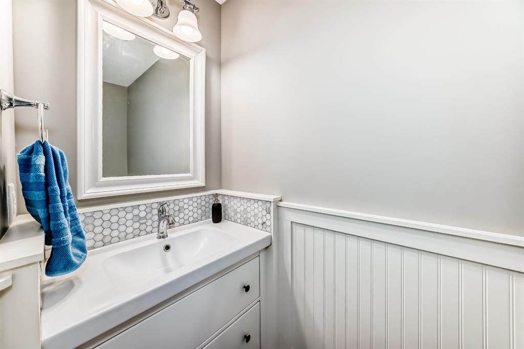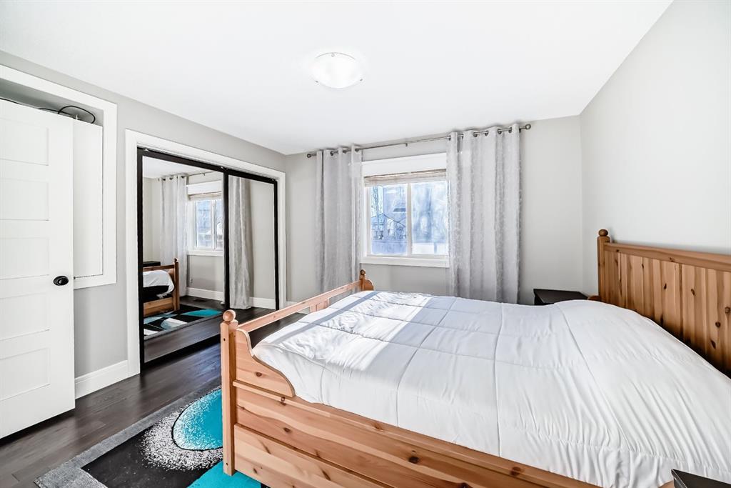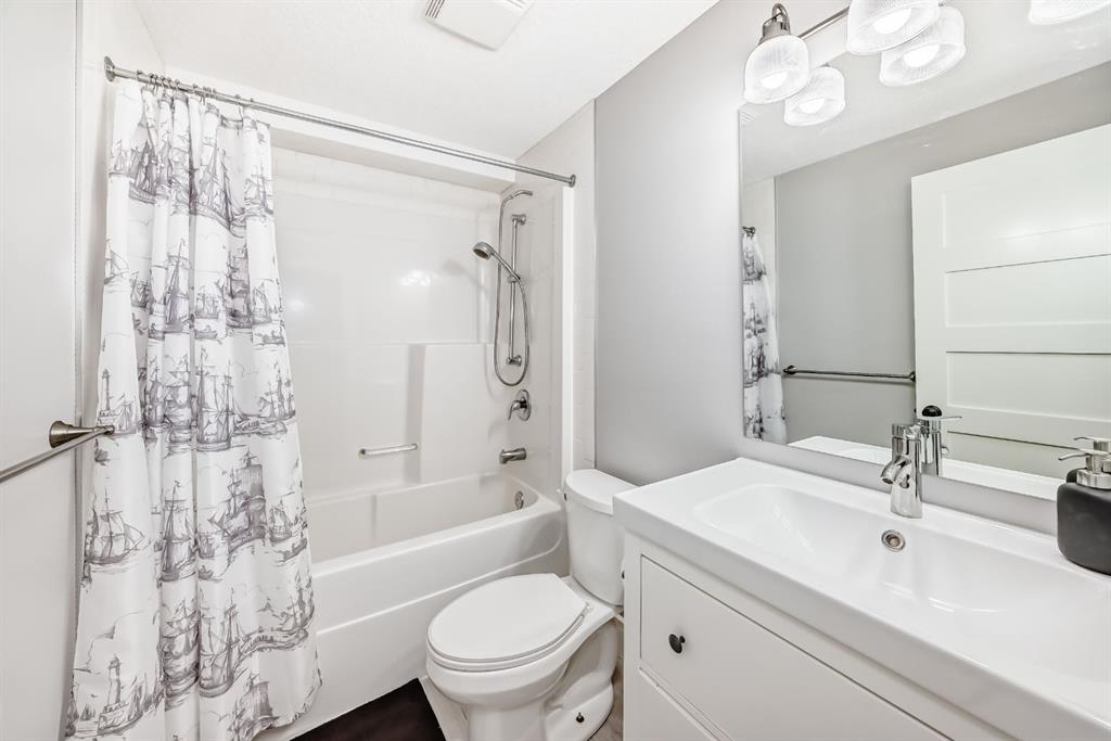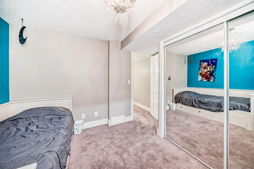 The fully finished basement provides a cozy retreat, ideal for movie nights or family gatherings. It features a welcoming family room, two large bedrooms (each with built-in storage and big south- and west-facing windows for ample natural light), a 4-piece bathroom with heated floors, and a practical laundry room with a sink—making it perfect for growing families or first-time buyers.