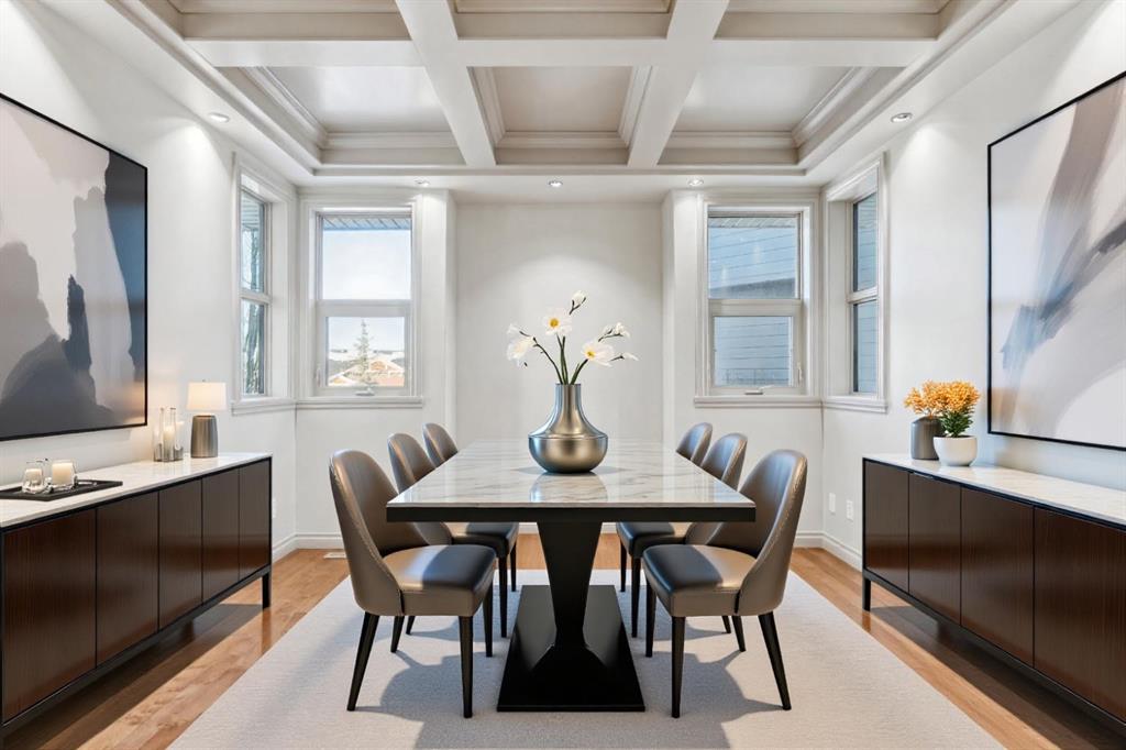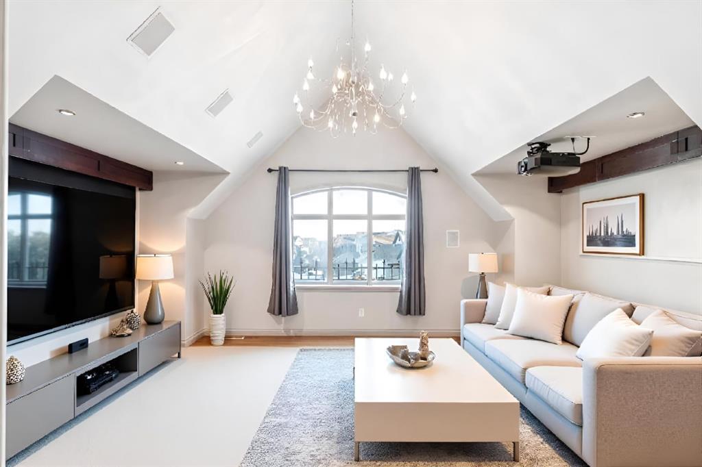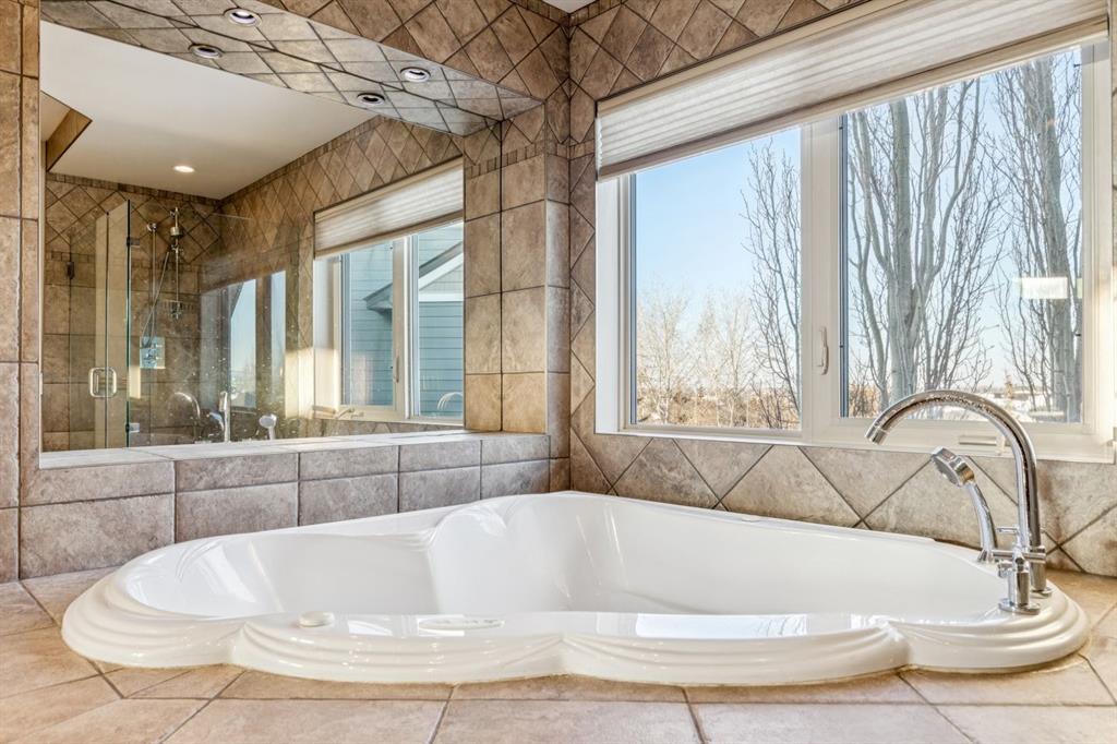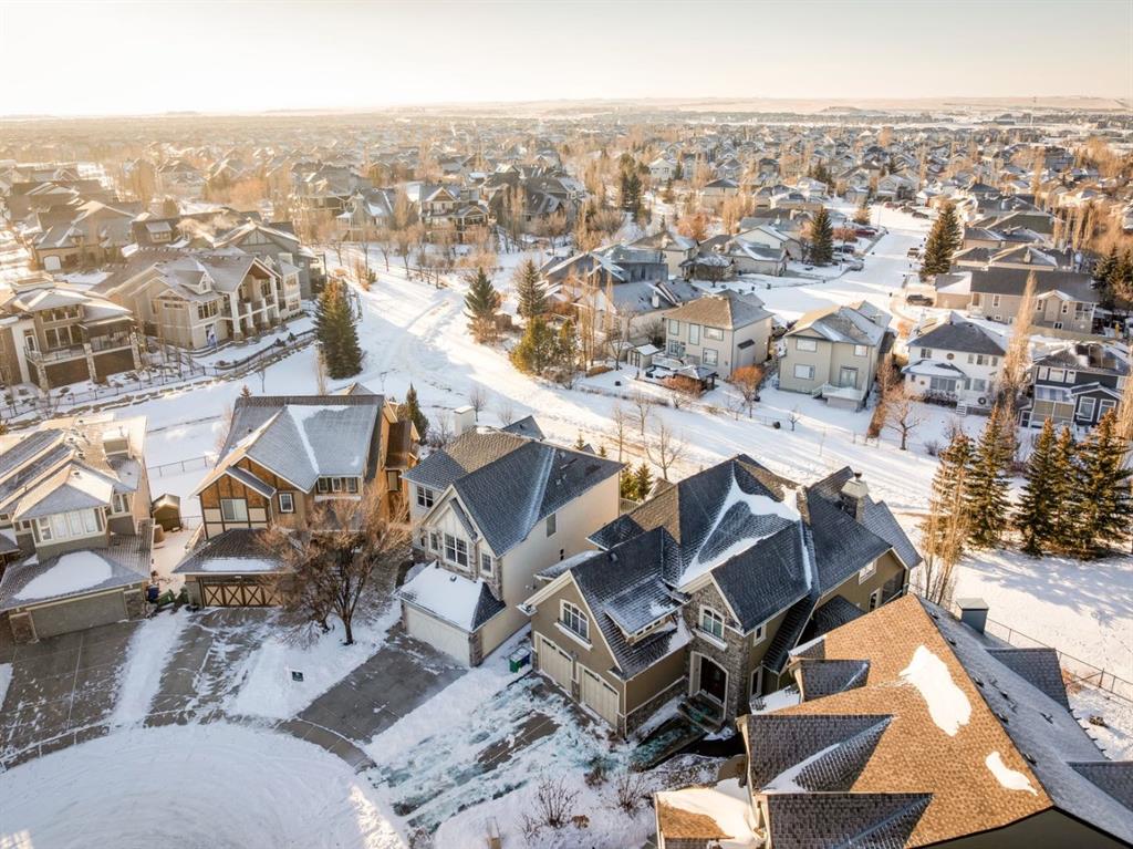 Welcome to an extraordinary custom-built, top-of-the-line geothermal estate tucked away on a quiet cul-de-sac in Airdrie’s most prestigious community—Coopers Crossing. Backing west onto green space, parks, and walking paths, this fully finished walkout home offers breathtaking sunsets, ultimate privacy, and a lifestyle few properties can match. Designed with no expense spared, this 5-bedroom, 3.5-bathroom residence blends striking architecture with leading-edge green technology, including geothermal heating & cooling, ICF foundation, tankless hot water on demand, in-floor radiant heating, and a heated oversized garage with hot & cold taps. Freshly painted in 2025, the home showcases timeless elegance with modern efficiency. Inside, you are greeted by soaring 9’ ceilings, crown molding, coffered details, extensive wall paneling, and a custom curved staircase that gracefully winds through all three levels. Rich cherry wood cabinetry, engineered hardwood, built-ins throughout, and upgraded lighting reflect exceptional craftsmanship and attention to detail. The chef’s kitchen is truly impressive, featuring high-end stainless appliances, a built-in Electrolux fridge/freezer, gas cooktop, prep sink, and an incredible Butler’s pantry with coffee station offering endless storage. Entertain effortlessly in the formal dining room or relax in the sun-filled living areas framed by expansive windows. Upstairs, the vaulted bonus room is a showstopper—complete with a full home theatre setup (projector, screen, amplifier, and subwoofer included). The primary retreat is a private sanctuary with a spa-like en suite, walk-in closet, and a separate reading/relaxation den. The fully developed walkout basement adds a home gym/craft room, additional bedrooms, bathroom, and exceptional storage. Step outside to enjoy multiple lower aggregate patios, two-tier decks, pergolas, a wood-burning exterior fireplace, and stunning professional landscaping complete with waterfall feature, stonework, underground sprinklers, and five cultured-stone retaining walls with custom caps. Additional highlights include screened-in upper balcony with gas line, exposed aggregate driveway with stamped border, central vacuum, in-ceiling speaker system, water softener, acrylic stucco exterior, and unbelievable curb appeal that feels straight out of a castle. Located in a family-friendly executive enclave, within walking distance to schools, parks, and amenities, and offering easy access out of town—this is more than a home; it’s a dream property and a rare opportunity to own one of Coopers Crossing’s finest residences. Book your private tour today and get ready to be blown away with this home’s impressive features!