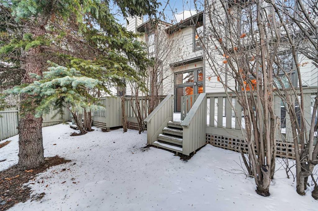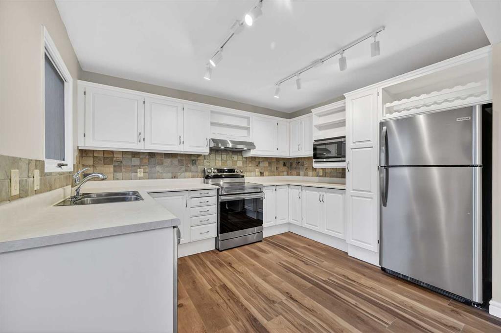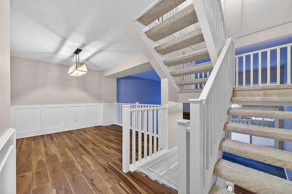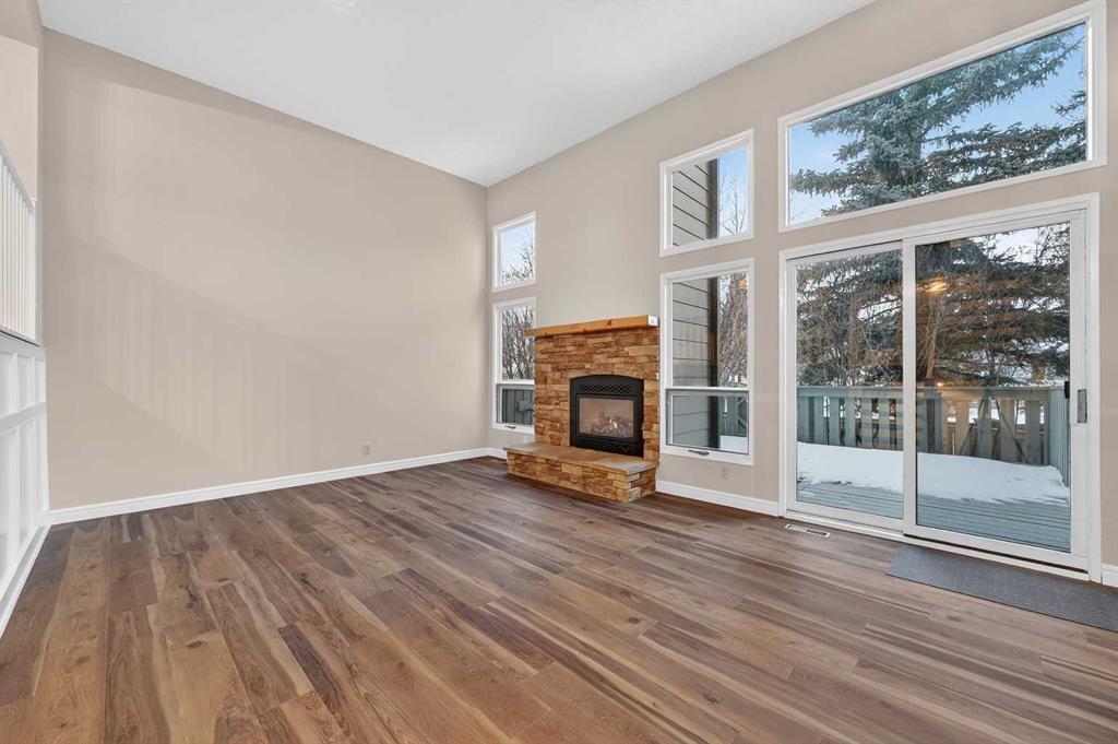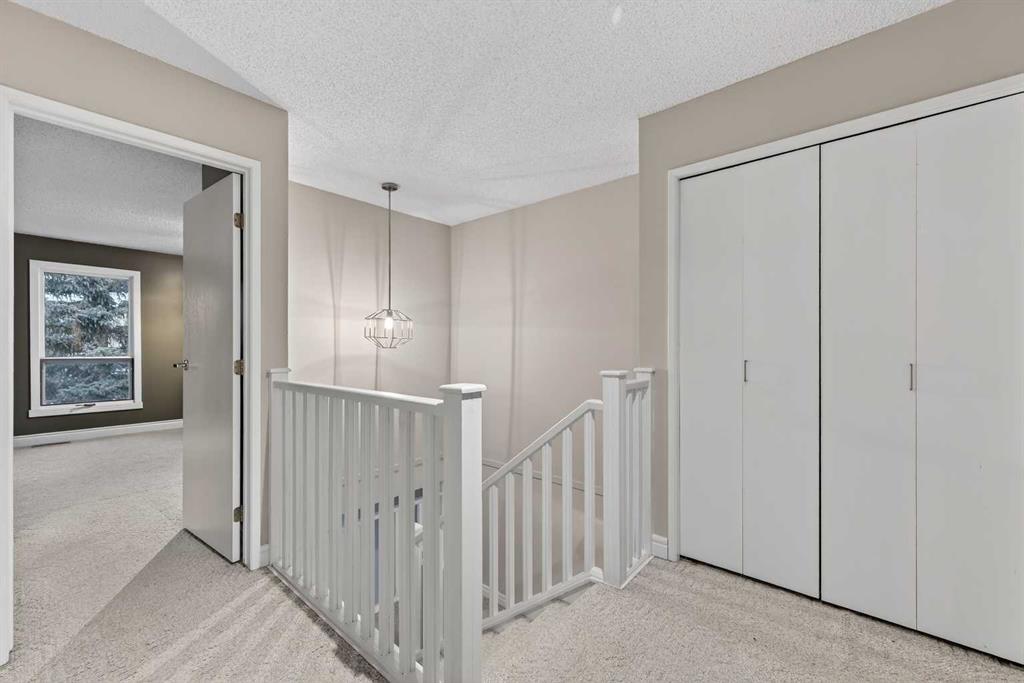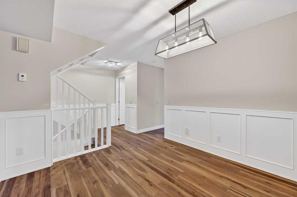 Welcome to this charming split-level townhome in the sought-after Woodlands on The Park condo community. Backing right onto the serene Fish Creek Park, this community offers the perfect blend of urban convenience and nature's tranquility – imagine morning walks along the trails or picnics just steps from your door. Step inside to over 1,600 square feet of thoughtfully designed living space that's been freshly updated and feels bright and inviting. The main level greets you with a spacious living area boasting soaring high ceilings, oversized windows that flood the room with natural light, and a cozy stone-surround gas fireplace – ideal for those chilly Alberta evenings. The new vinyl plank flooring ties everything together beautifully, while fresh paint, new baseboards, and updated lighting fixtures throughout add a modern touch. The kitchen is a real standout: roomy and airy with plenty of windows, a newly flat-painted ceiling, stainless steel appliances including a brand-new stove, dishwasher, and hood fan, plus a stylish tile backsplash. The cabinetry has been refinished in crisp white, offering tons of storage for all your cooking essentials. Right off the kitchen is a convenient breakfast nook, perfect for family meals or entertaining friends. Around the corner, you'll find a versatile loft space overlooking the living area – great for a formal dining area, home office, reading nook, or play area – and an updated two-piece bath for added convenience. Head up the open-riser staircase to the upper level, where the primary bedroom awaits. It's generously sized with his-and-hers closets and a four-piece ensuite featuring a granite countertop and tiled surround bath/shower combo. Two more good-sized bedrooms provide ample space for kids, guests, or hobbies, sharing a four-piece bathroom that's been updated with a new granite vanity, flooring, toilet, and lighting. Don't miss the large linen closet for all your storage needs. Downstairs, the unfinished basement with crawl space offers plenty of room for storage or future development – think gym, hobby room, or whatever suits your lifestyle. Outside, enjoy your private back deck for summer barbecues, and park with ease in the attached heated single garage. Plus, the complex got a big exterior makeover over the past few years! The roadways are freshly paved, new roof shingles, composite siding, eaves, soffits & downspouts. Location-wise, you're in a prime spot: steps to Fish Creek Park, walking distance to Woodbine Athletic Park for sports and recreation, Woodbine Square Shopping Mall for all your shopping and dining needs, and both Woodlands School and Woodbine School for families. Plus, it's just a short drive to Anderson Road and Stoney Trail, making commutes a breeze.