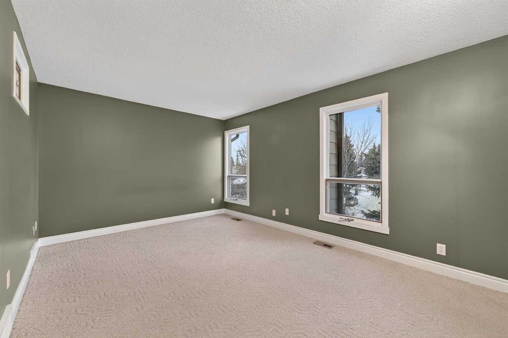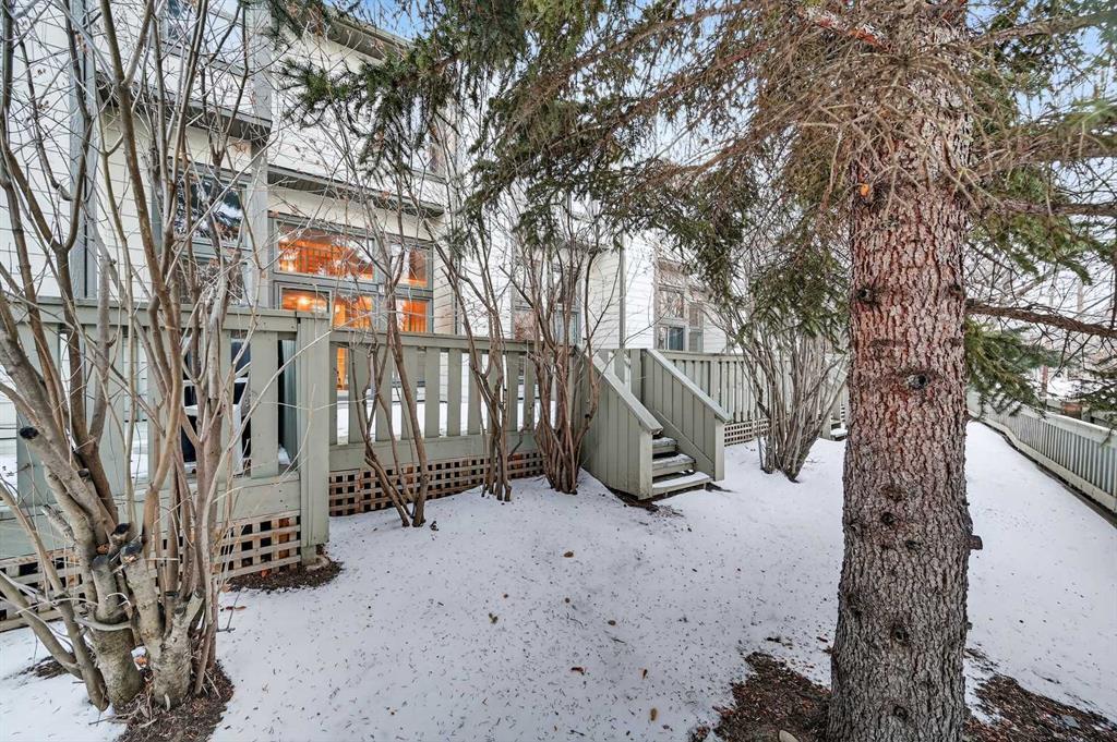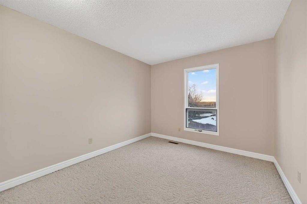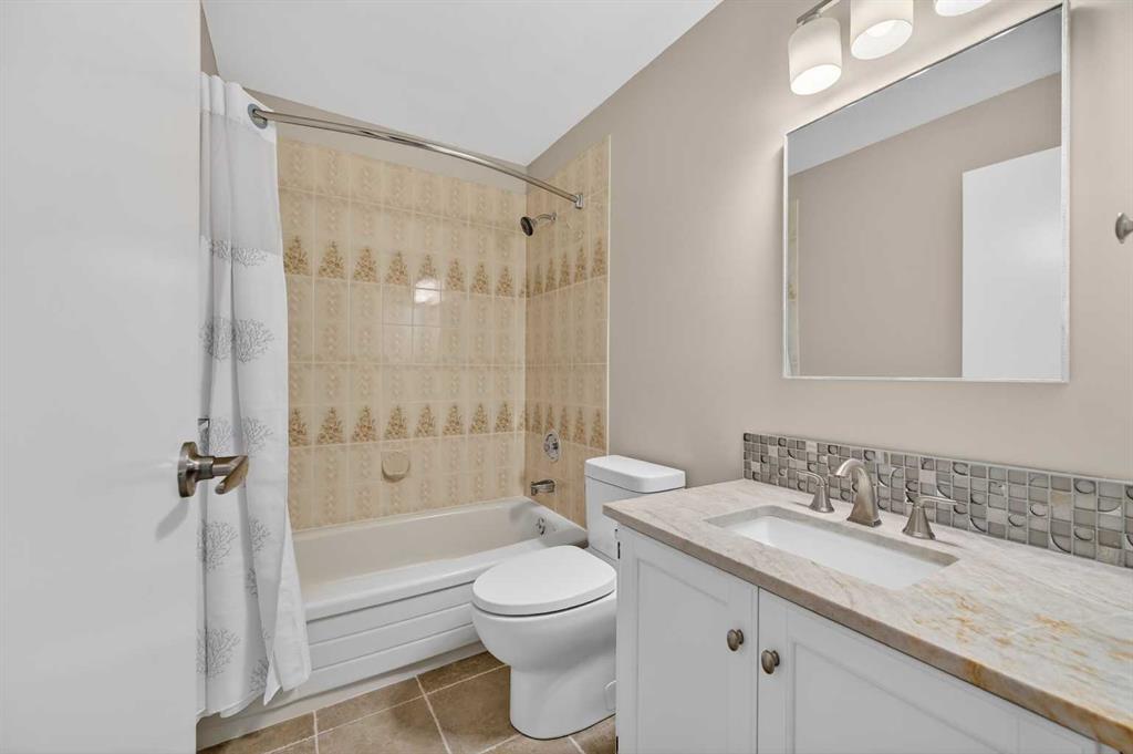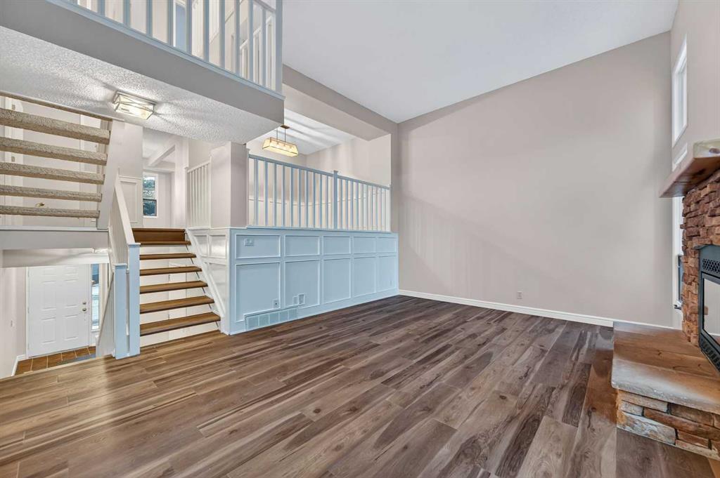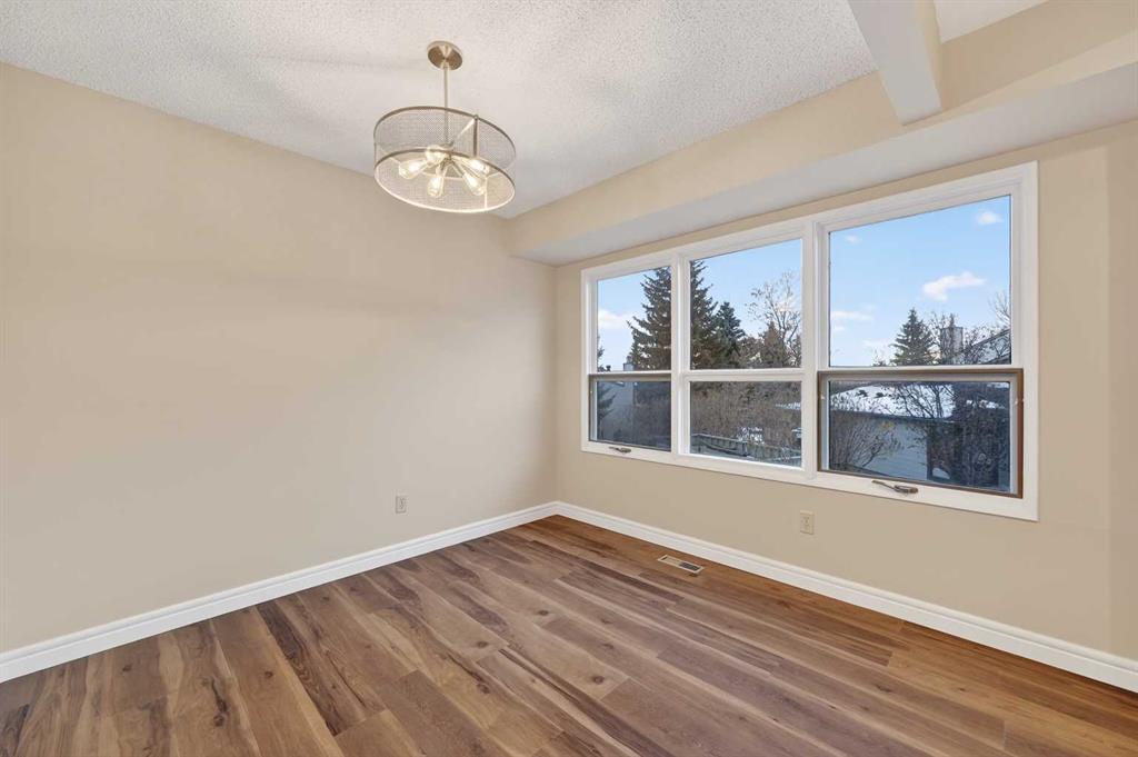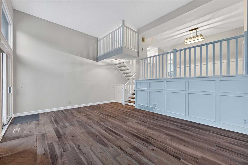Welcome to this charming split-level townhome in the sought-after Woodlands on The Park condo community. Backing right onto the serene Fish Creek Park, this community offers the perfect blend of urban convenience and nature's tranquility – imagine morning walks along the trails or picnics just steps from your door. Step inside to over 1,600 square feet of thoughtfully designed living space that's been freshly updated and feels bright and inviting. The main level greets you with a spacious living area boasting soaring high ceilings, oversized windows that flood the room with natural light, and a cozy stone-surround gas fireplace – ideal for those chilly Alberta evenings. The new vinyl plank flooring ties everything together beautifully, while fresh paint, new baseboards, and updated lighting fixtures throughout add a modern touch. The kitchen is a real standout: roomy and airy with plenty of windows, a newly flat-painted ceiling, stainless steel appliances including a brand-new stove, dishwasher, and hood fan, plus a stylish tile backsplash. The cabinetry has been refinished in crisp white, offering tons of storage for all your cooking essentials. Right off the kitchen is a convenient breakfast nook, perfect for family meals or entertaining friends. Around the corner, you'll find a versatile loft space overlooking the living area – great for a formal dining area, home office, reading nook, or play area – and an updated two-piece bath for added convenience. Head up the open-riser staircase to the upper level, where the primary bedroom awaits. It's generously sized with his-and-hers closets and a four-piece ensuite featuring a granite countertop and tiled surround bath/shower combo. Two more good-sized bedrooms provide ample space for kids, guests, or hobbies, sharing a four-piece bathroom that's been updated with a new granite vanity, flooring, toilet, and lighting. Don't miss the large linen closet for all your storage needs. Downstairs, the unfinished basement with crawl space offers plenty of room for storage or future development – think gym, hobby room, or whatever suits your lifestyle. Outside, enjoy your private back deck for summer barbecues, and park with ease in the attached heated single garage. Plus, the complex got a big exterior makeover over the past few years! The roadways are freshly paved, new roof shingles, composite siding, eaves, soffits & downspouts. Location-wise, you're in a prime spot: steps to Fish Creek Park, walking distance to Woodbine Athletic Park for sports and recreation, Woodbine Square Shopping Mall for all your shopping and dining needs, and both Woodlands School and Woodbine School for families. Plus, it's just a short drive to Anderson Road and Stoney Trail, making commutes a breeze.