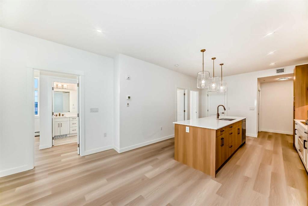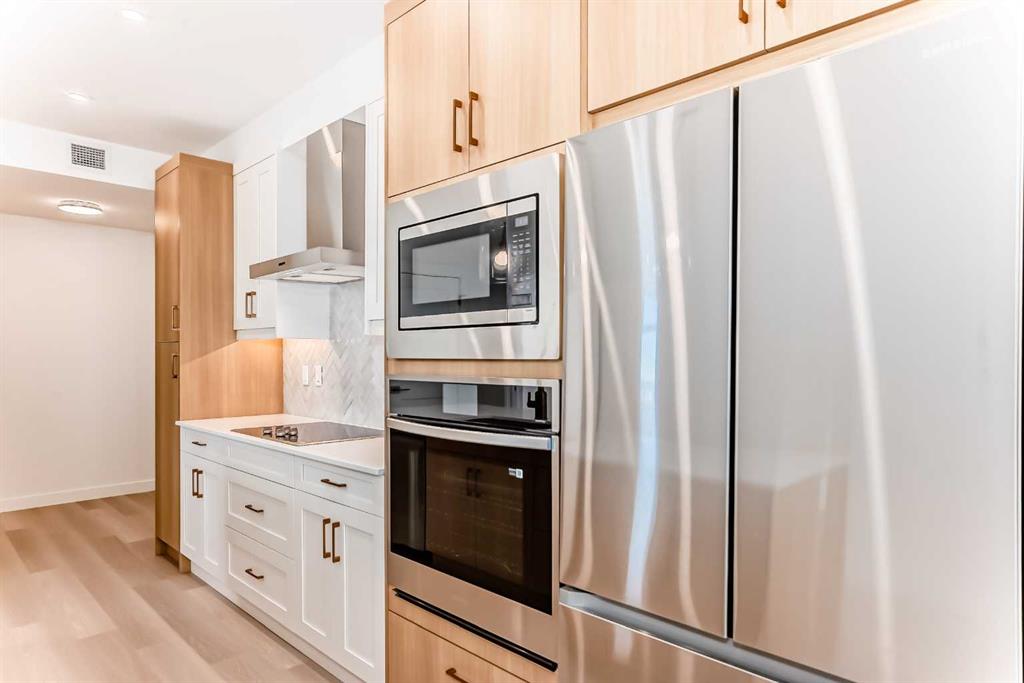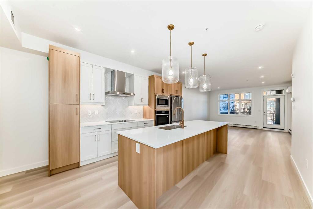 The Attwood 3 is one of award-winning Logel Homes’ most sought-after floor plans. This home features underground heated titled parking along with additional storage for added convenience. The well-designed layout offers two spacious bedrooms, including a primary bedroom with a full ensuite, as well as a second four-piece bathroom. The upgraded kitchen is highlighted by a central island with a breakfast bar, quartz countertops, and a full-height backsplash, and is equipped with a stainless-steel refrigerator, a built-in wall oven, a cooktop, and a microwave hood fan. The kitchen flows seamlessly into the dining area and a generously sized living room, which opens onto an oversized balcony—ideal for both everyday living and entertaining. Located in the desirable Sage Hill community, residents can enjoy scenic natural ravines, convenient access to shopping, and easy connections to major freeways for seamless travel throughout the city. Condo fees include heat, water, and sewer, as well as common-area maintenance, professional management, and contributions to the reserve fund. The purchase price includes GST and is backed by the Alberta New Home Warranty for added peace of mind.