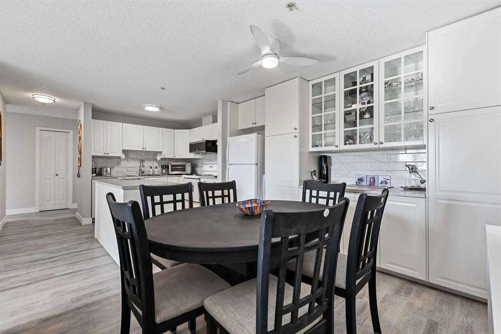 Welcome to this impeccably upgraded 2-bedroom, 2-bath condo in the sought-after Somerset Crossing – one of the largest floor plans available in the complex, offering over 1,000 square feet of beautifully designed living space. Nestled in the heart of Somerset, just steps from Shawnessy’s shopping, dining, and amenities, this stunning home combines comfort, function, and style in one of Calgary’s most walkable neighborhoods. Step inside to discover brand-new luxury vinyl plank flooring flowing seamlessly throughout the main living areas, giving the home a modern yet warm feel. The kitchen has been completely reimagined with a custom flush central island, perfect for prepping meals, entertaining guests, or enjoying your morning coffee. Extended cabinetry, finished with elegant glass insets and a matching countertop, stretches into the spacious dining area—providing tons of extra storage and display space, rarely found in condo living. The open-concept living room is generous in size, basking in sun-soaked Southeast exposure with unobstructed views of the peaceful courtyard and shimmering pond beyond. Step through the sliding glass doors onto your covered patio, where you can relax and enjoy the view—patio furniture included, so you’re ready to unwind from day one. Both bedrooms are privately tucked away, each enjoying bright southeast light. The primary suite features a large closet and a beautifully renovated 3-piece en suite with a stunning oversized walk-in shower, floor-to-ceiling tile, and sleek glass doors. A second 4-piece bath is perfect for guests or family. Practical touches abound, including a spacious entryway with room for a bench and a massive in-suite laundry/storage room—complete with the original island repurposed as a folding station or work surface, along with built-in shelving for smart, out-of-sight organization. You’ll also enjoy the convenience of one titled underground parking stall, and peace of mind knowing you're in a well-managed, sought-after building where residents tend to stay for the long haul. With quick access to Macleod Trail & Stoney Trail, Spruce Meadows just minutes away, and walkable access to everything from groceries to coffee shops and fitness studios, this location truly has it all. With quick access to the Somerset C-Train, heading to down town to enjoy all that Calgary has to offer is ideal - perfect to enjoy a nice blend of urban and suburban. Rarely do units like this come available—especially with these upgrades, size, and that unbeatable view. Don’t miss your chance to make this exceptional condo your next home!