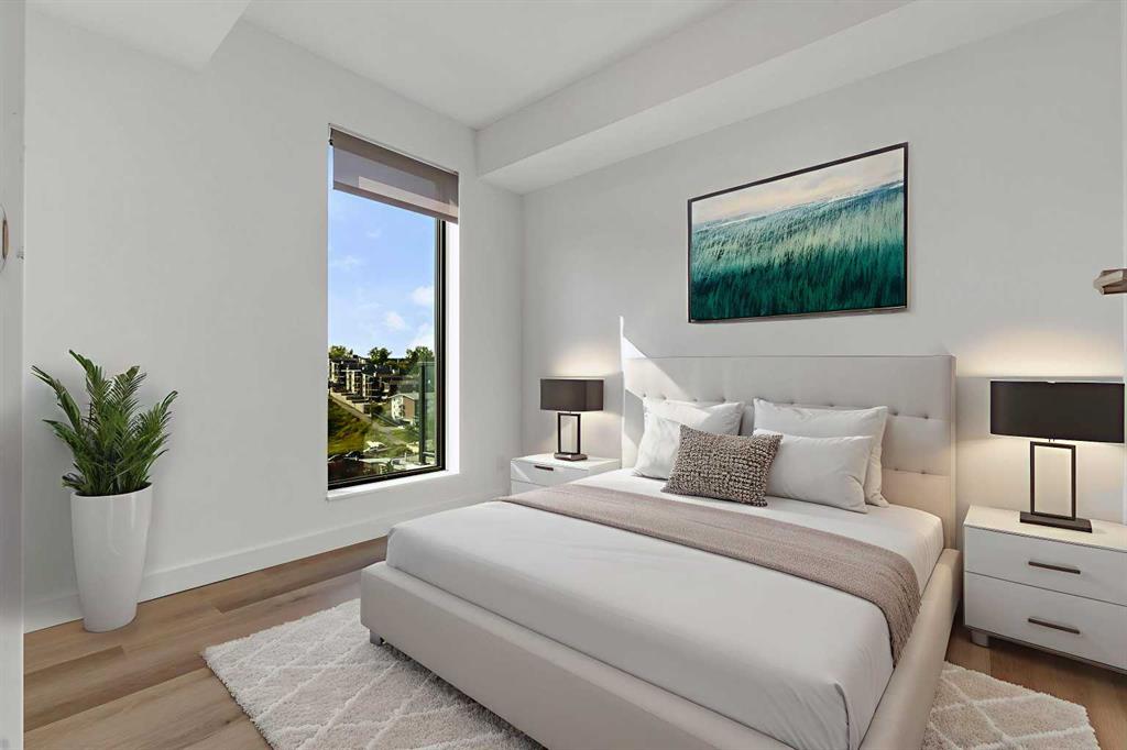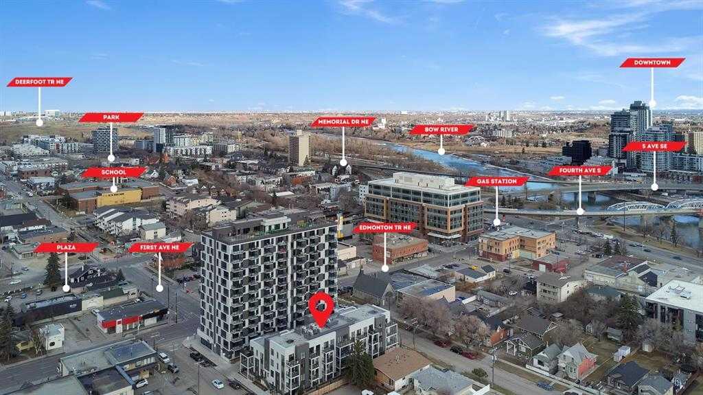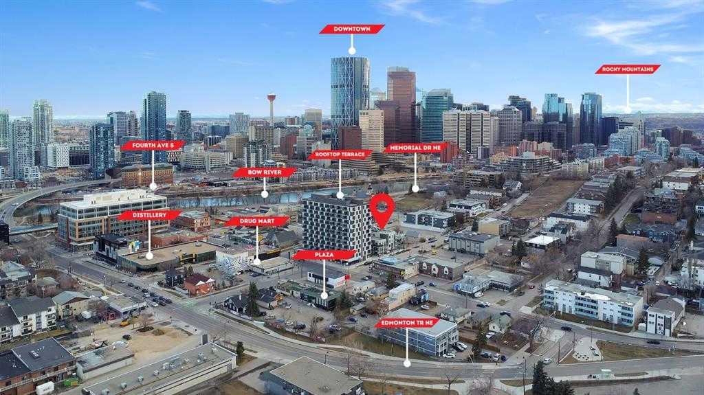 Experience ELEVATED LIVING in this stunning 2 BED, 2 BATH AIRBNB FRIENDLY residence perched on the 13TH FLOOR of Era by Minto Communities, offering the rare comfort of NO NEIGHBOURS ABOVE. Filled with WEST FACING natural light, the open concept layout effortlessly connects the modern kitchen, dining, and living spaces, all flowing onto a LARGE PRIVATE BALCONY with STUNNING DOWNTOWN VIEWS. From MORNING COFFEE to glowing SUNSETS and peaceful EVENING RELAXATION, this outdoor space is ideal any time of day. The GOURMET KITCHEN showcases QUARTZ COUNTERTOPS, STAINLESS STEEL APPLIANCES, a spacious ISLAND, and sleek designer cabinetry, perfect for entertaining or everyday living. Thoughtful features such as DURABLE VINYL PLANK FLOORING, IN SUITE LAUNDRY, and AIR CONDITIONING ensure year round comfort, while a TITLED UNDERGROUND PARKING STALL and STORAGE LOCKER add everyday convenience. Era’s LEED INSPIRED design and advanced SMART TECHNOLOGY raise the bar with FACIAL RECOGNITION ACCESS, one way video calling, secure package lockers, community messaging, and a VIRTUAL CONCIERGE. Just steps from your door, enjoy the ROOFTOP PATIO complete with PANORAMIC SKYLINE VIEWS, cozy FIRE PITS, BBQ AREAS, and indoor workspaces, ideal for hosting or working remotely. Perfectly situated between BRIDGELAND and CRESCENT HEIGHTS, you are moments from the BOW RIVER PATHWAYS, Bridgeland LRT, popular restaurants, boutique shopping, and downtown Calgary. This is your opportunity to own the HIGHEST FLOOR UNIT with unbeatable views and an exceptional lifestyle. Book your PRIVATE TOUR today.