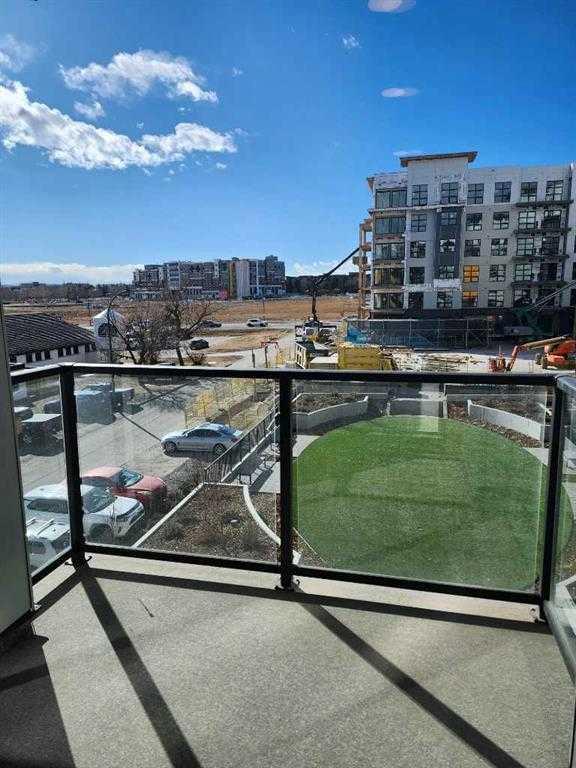 **Air Bnb Friendly Location Location Location presenting 1 bed 1 bath designer condo by Rohit Homes to the heritage-rich community of Currie Barracks. The Quesnay at Currie Barracks inner-city project is well-connected to the city's best. You'll love the convenience of being within a 7 - 10 minute drive to downtown, Mount Royal University, Marda Loop, CF Chinook Centre, Glenmore Park and more! The Rosso kitchen is designed for maximum efficiency. Using the kitchen work triangle rule, movement between the fridge, stove and sink is minimized. Designed to be the centre-piece of the kitchen, the long kitchen island lets owners cook, snack and entertain all from one location. To make the home feel open and airy, we added large windows in the living room and bedroom to allow plenty of natural light. home comes standard with its private deck. Picture summer BBQs, leisurely brunches and evenings spent sipping cocktails in your oasis. This spacious primary bedroom is designed to fit a queen-size bed and two nightstands with room to spare.Modern Kitchen with latest appliances and elegant design will impress your eyes.Ideal for students ,working professional , couple and investors.Motivated seller come have a Look now