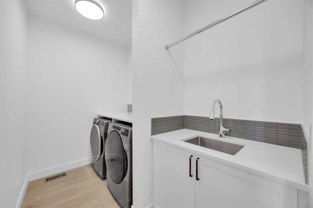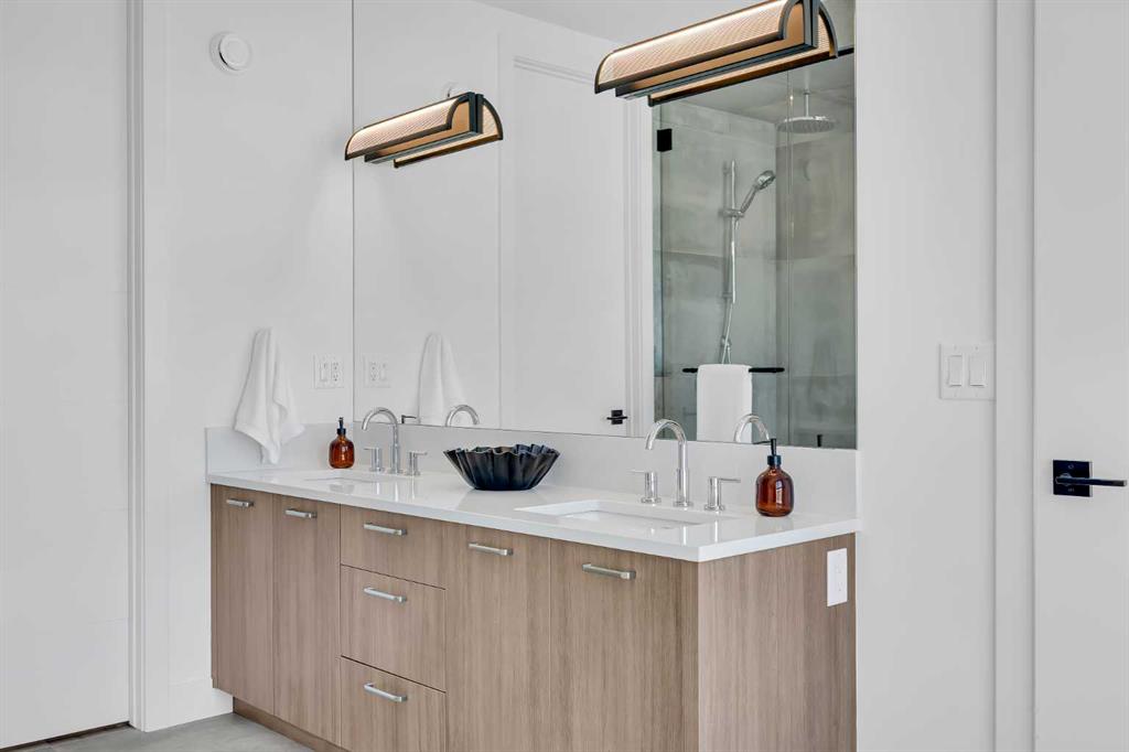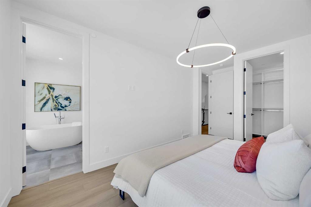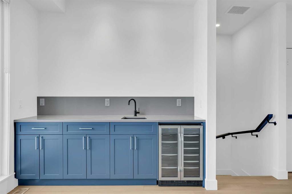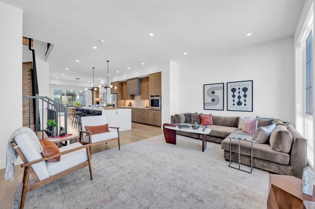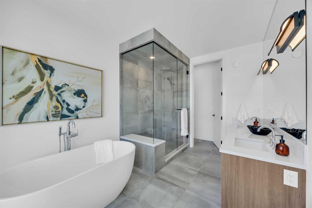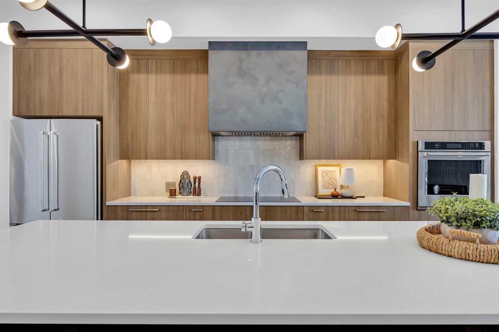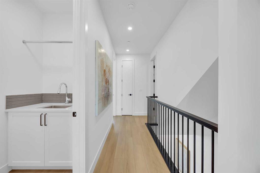 Welcome to 12 Greenwich Heath NW, the Carrara model by Partners, a distinctive four-storey Modern Brownstone directly fronting the canal in the northwest community of Upper Greenwich. Offering a rare combination of architectural presence, refined interiors, and an exceptional waterfront setting, this no-condo-fee residence stands apart within Calgary’s luxury townhome market. The exterior reflects classic brownstone architecture, while the interior has been professionally curated with elevated finish selections throughout. The home features a private four-storey elevator, rooftop patio, and an oversized heated rear-attached double garage, providing comfort, convenience, and long-term versatility for a range of discerning buyers. The entry level begins with an expansive foyer and includes a flexible office or bedroom, a full bathroom, and a mudroom with custom built-ins. Direct access to the heated garage adds everyday practicality. The main living level offers 10’ ceilings and oversized windows that frame canal views and fill the home with natural light. The kitchen is thoughtfully designed with a custom plaster hood fan and an oversized waterfall-edge quartz island. Built-in dining cabinetry adds both function and visual cohesion, while the living room is anchored by a statement fireplace. A rear deck with enclosed storage extends the living space outdoors. A powder room with floating vanity and under-cabinet lighting completes this level. The third floor is dedicated to the private sleeping quarters. The primary suite features a well-appointed ensuite with fully tiled glass shower, freestanding soaker tub, and dual vanities. Two additional bedrooms share a full bathroom finished to the same standard. A laundry room with built-in cabinetry, sink, and quartz countertops adds everyday convenience. The top floor is designed as an elevated entertaining space, complete with a wet bar and beverage fridge. From here, step onto the private rooftop patio with hot tub rough-in and open views toward the canal and surrounding community. Additional features include air conditioning, a full blinds package, and modern mechanical systems designed for comfort and efficiency. Upper Greenwich has been thoughtfully planned to offer a strong sense of character, walkability, and connection to green space. Residents enjoy immediate access to the canal and pathways, proximity to the Bow River pathway system, Calgary Farmers’ Market West, nearby shops and restaurants, sports courts, playgrounds, and WinSport. With convenient access to downtown Calgary and the Rocky Mountains, the location offers a rare balance of urban convenience and natural surroundings. This is a rare opportunity to own a canal-front brownstone offering architectural distinction, refined interiors, and an exceptional setting in one of Calgary’s most distinctive communities.