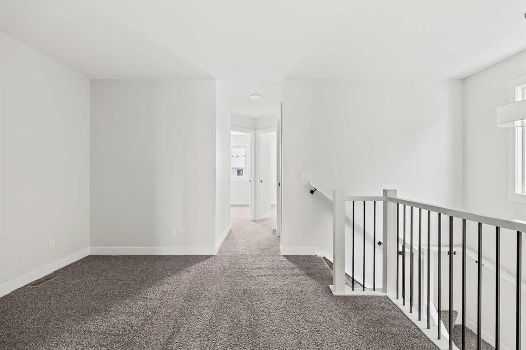 Welcome to the Wicklow in the vibrant community of Seton. This thoughtfully designed home by Brookfield Residential features 3 bedrooms, 2.5 bathrooms, two distinct living areas, and a full basement that awaits your imagination! Offering nearly 1,700 sq. ft. of living space across two levels, the Wicklow blends modern design with functional, family-friendly layouts. The main floor is bright and inviting, with expansive front windows that allow natural light to flood the space throughout the day, while ensuring optimal sunshine in the southwest-facing backyard in the evenings. The open-concept layout is enhanced by 9-foot ceilings, creating a comfortable and airy living environment. The kitchen is a standout feature with full-height cabinetry, a central island, a large corner pantry, and a full suite of stainless-steel appliances, including a chimney-style hood fan, built-in microwave, and gas line for the range (electric range included). It flows seamlessly into the dining area and sliding patio doors lead to the backyard, perfect for indoor-outdoor living. On the upper level, a centrally located bonus room provides separation between the spacious primary suite and the two additional bedrooms, offering added privacy. The primary suite features a walk-in closet and a luxurious 4-piece ensuite with dual sinks and a walk-in shower. Two more bedrooms, a full bathroom, and an upper-level laundry room complete this level. The full basement is undeveloped, offering endless potential, and includes a separate side entrance for direct exterior access. There is ample space to create a large living area, an additional bedroom, and a full bathroom, making this ideal for growing families or future income potential (subject to local municipal guidelines and approvals). The southwest-facing backyard provides plenty of space for family activities and leads to a double parking pad, with future potential to add a detached garage if desired. This home comes with a builder’s warranty and the Alberta New Home Warranty, giving you peace of mind. Ideally located just a short walk from Seton’s extensive amenities and the South Calgary Health Campus, this property is perfect for families or investors alike.