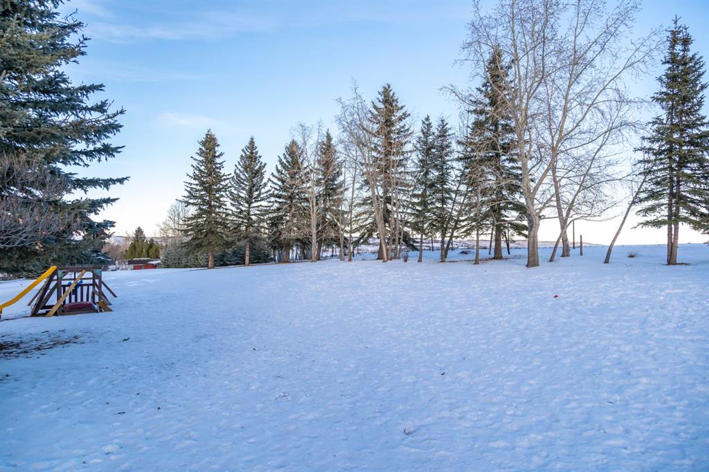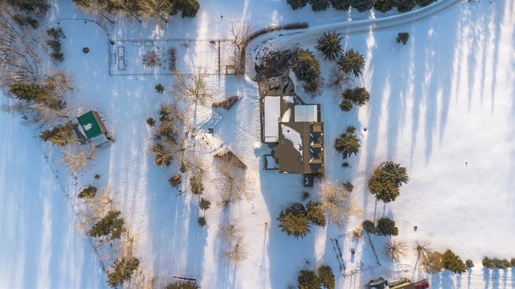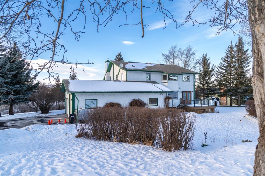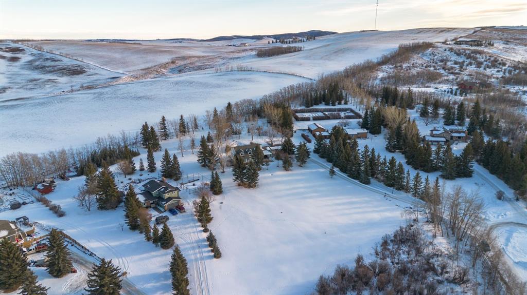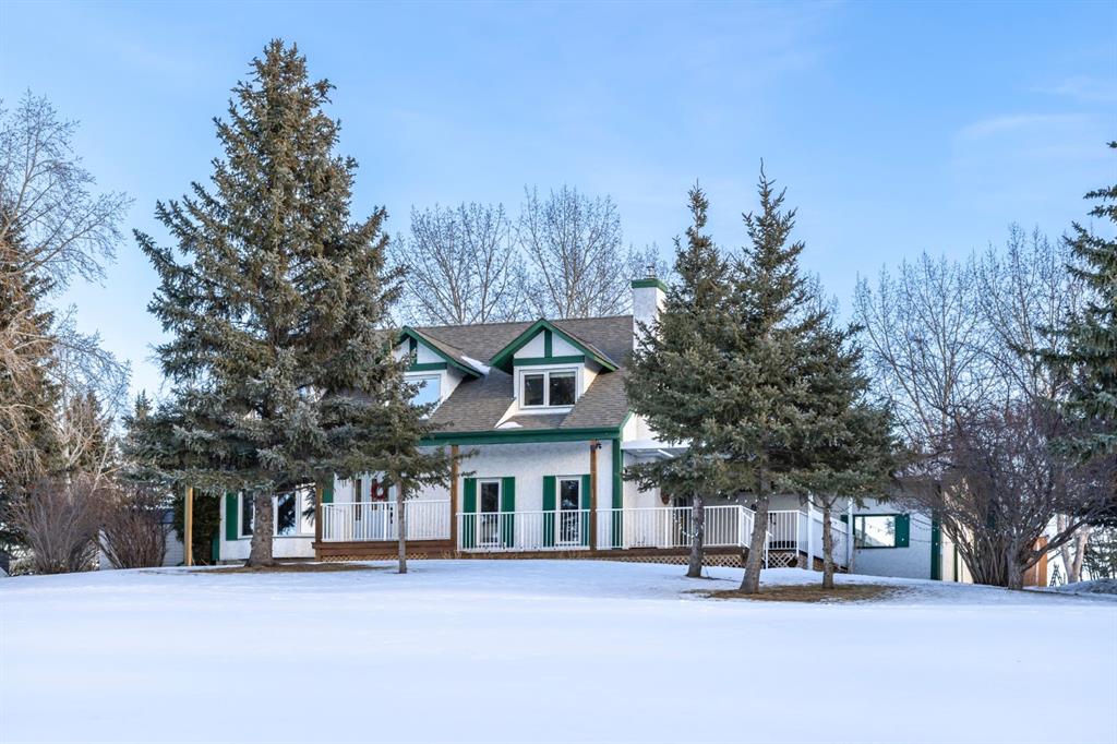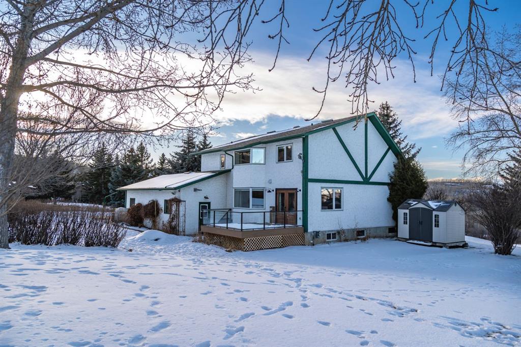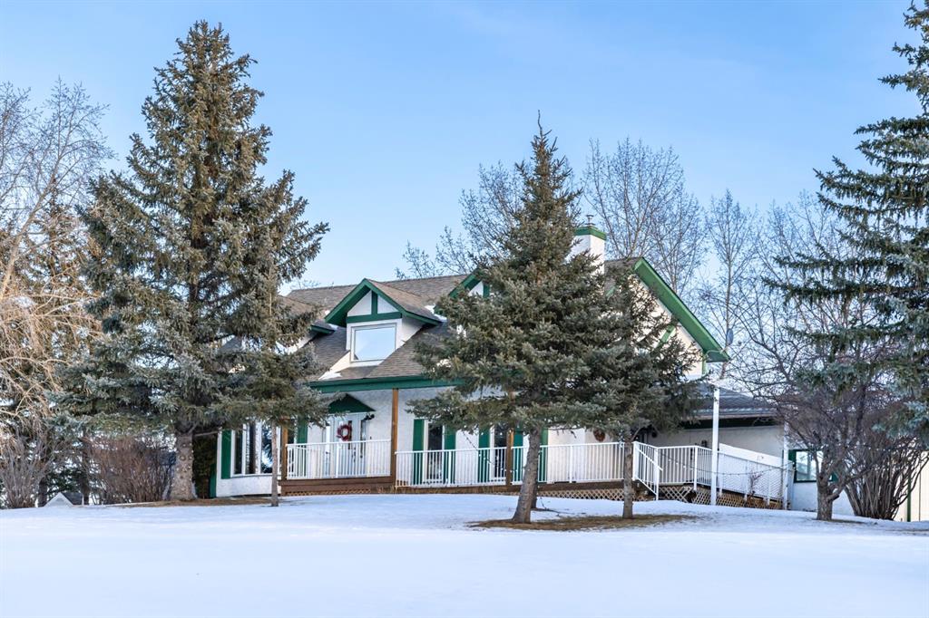 Welcome Home to this beautifully upgraded and meticulously maintained two-storey home situated on a picturesque 2.18 acre lot in the highly sought after community of White Post Lane Estates, only 15 minutes from Calgary. Surrounded by mature trees and lush landscaping, this serene retreat offers exceptional privacy and breathtaking views. This home seamlessly blends timeless country charm with modern luxury with 3,635 square feet of thoughtfully updated living space. Upon entering the home, the foyer welcomes you with soaring vaulted ceilings and abundant natural light through triple-pane windows. At the heart of the home is the stunning modern farmhouse kitchen, complete with a large island and apron-front sink, newer appliances, pot filler, coffee station, as well as an expansive pantry. A cozy built-in bay window bench provides the perfect place to enjoy your morning coffee while taking in natures surroundings. The main floor also offers a front living room, a formal dining room with French doors opening to a low-maintenance composite deck, and a cozy family room highlighted by a gas fireplace with a striking stone surround with custom built-ins. A 4 piece bathroom and a thoughtfully designed farmhouse-style mudroom/laundry room featuring a sink and vintage refrigerator, complete the main floor. Convenient side access to the wraparound west-facing deck, is the perfect spot for soaking in the breathtaking views and evening sunsets. Upstairs, the primary retreat overlooks the peaceful backyard and includes a large walk-in closet and private 3-piece ensuite. Two additional generously sized bedrooms complete the upper level, one of which features a renovated ensuite 4-piece bathroom. The open-concept basement offers excellent flexibility for recreation, a home gym, or future development with the potential to add a fourth bedroom and bathroom, with rough-ins already in place. The oversized heated double garage includes an EV charger and a dedicated workshop area. Outside is truly where the dream begins, featuring an expansive private backyard featuring a fenced vegetable garden, chicken coop, mature trees and shrubs, as well as a tasteful rock water feature. Additional upgrades include a reverse osmosis system, newer high-efficiency furnace, newer hot water tank, upgraded attic insulation, radon mitigation system, newer windows, built-in speakers and phantom screens. Enjoy the best of Country Living with nearby conveniences, including Granary Road Farmers Market, just two minutes down the road, as well as top-rated schools such as Red Deer Lake School and Tanbridge Academy (Private K–9) only 12 minutes away. An extraordinary acreage opportunity to enjoy refined, low maintenance country living with unmatched proximity to Calgary!