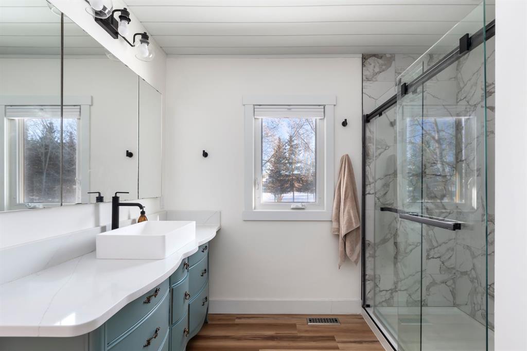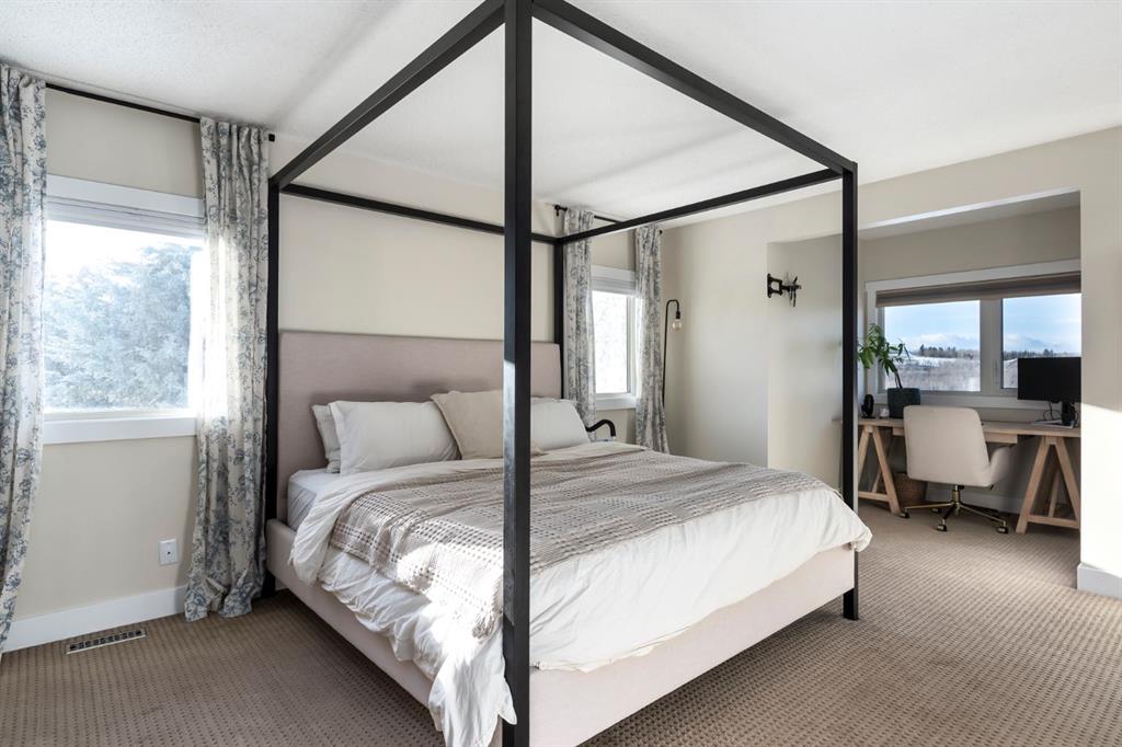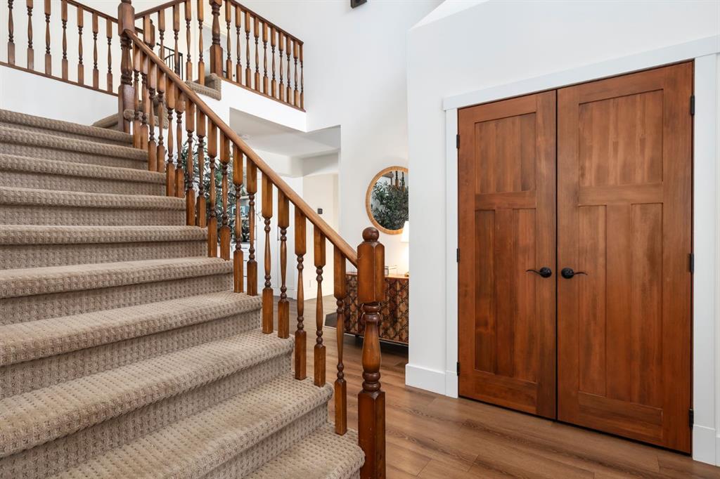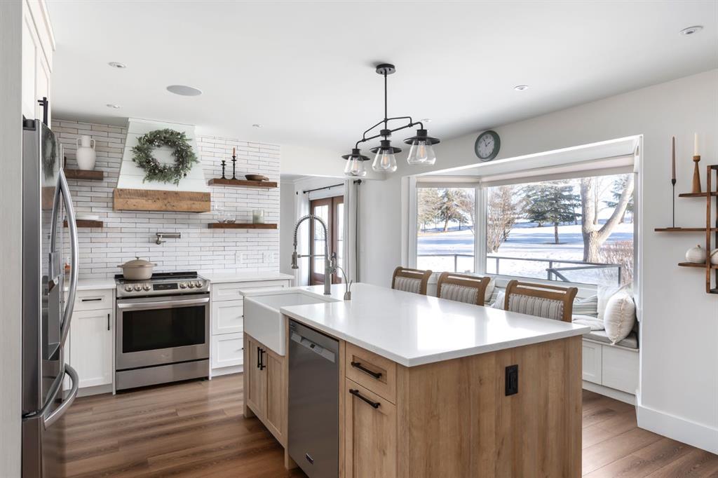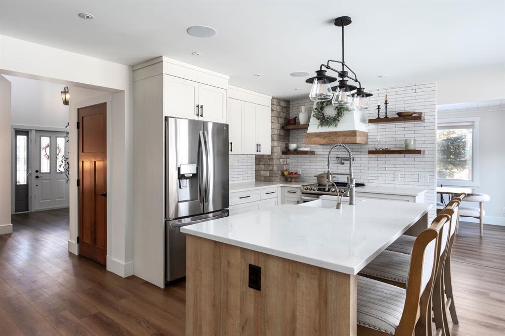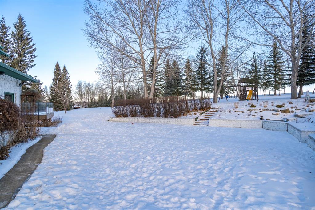 Welcome Home to this beautifully upgraded and meticulously maintained two-storey home situated on a picturesque 2.18 acre lot in the highly sought after community of White Post Lane Estates, only 15 minutes from Calgary. Surrounded by mature trees and lush landscaping, this serene retreat offers exceptional privacy and breathtaking views. This home seamlessly blends timeless country charm with modern luxury with 3,635 square feet of thoughtfully updated living space. Upon entering the home, the foyer welcomes you with soaring vaulted ceilings and abundant natural light through triple-pane windows. At the heart of the home is the stunning modern farmhouse kitchen, complete with a large island and apron-front sink, newer appliances, pot filler, coffee station, as well as an expansive pantry. A cozy built-in bay window bench provides the perfect place to enjoy your morning coffee while taking in natures surroundings. The main floor also offers a front living room, a formal dining room with French doors opening to a low-maintenance composite deck, and a cozy family room highlighted by a gas fireplace with a striking stone surround with custom built-ins. A 4 piece bathroom and a thoughtfully designed farmhouse-style mudroom/laundry room featuring a sink and vintage refrigerator, complete the main floor. Convenient side access to the wraparound west-facing deck, is the perfect spot for soaking in the breathtaking views and evening sunsets. Upstairs, the primary retreat overlooks the peaceful backyard and includes a large walk-in closet and private 3-piece ensuite. Two additional generously sized bedrooms complete the upper level, one of which features a renovated ensuite 4-piece bathroom. The open-concept basement offers excellent flexibility for recreation, a home gym, or future development with the potential to add a fourth bedroom and bathroom, with rough-ins already in place. The oversized heated double garage includes an EV charger and a dedicated workshop area. Outside is truly where the dream begins, featuring an expansive private backyard featuring a fenced vegetable garden, chicken coop, mature trees and shrubs, as well as a tasteful rock water feature. Additional upgrades include a reverse osmosis system, newer high-efficiency furnace, newer hot water tank, upgraded attic insulation, radon mitigation system, newer windows, built-in speakers and phantom screens. Enjoy the best of Country Living with nearby conveniences, including Granary Road Farmers Market, just two minutes down the road, as well as top-rated schools such as Red Deer Lake School and Tanbridge Academy (Private K–9) only 12 minutes away. An extraordinary acreage opportunity to enjoy refined, low maintenance country living with unmatched proximity to Calgary!