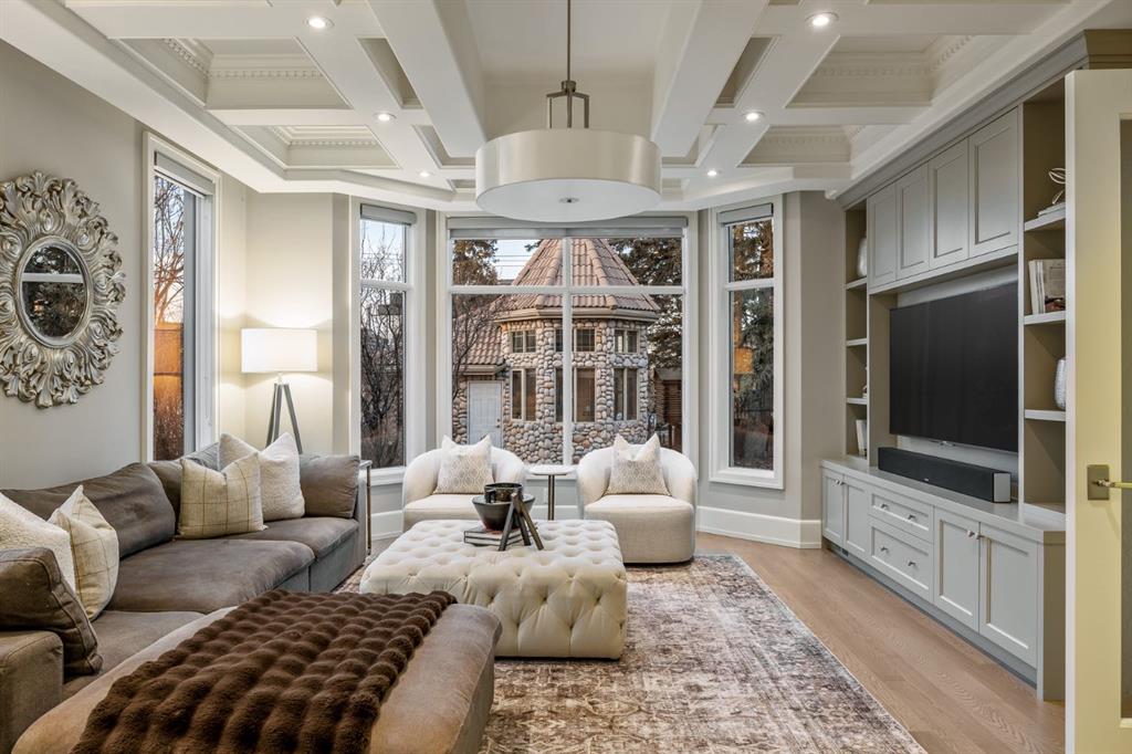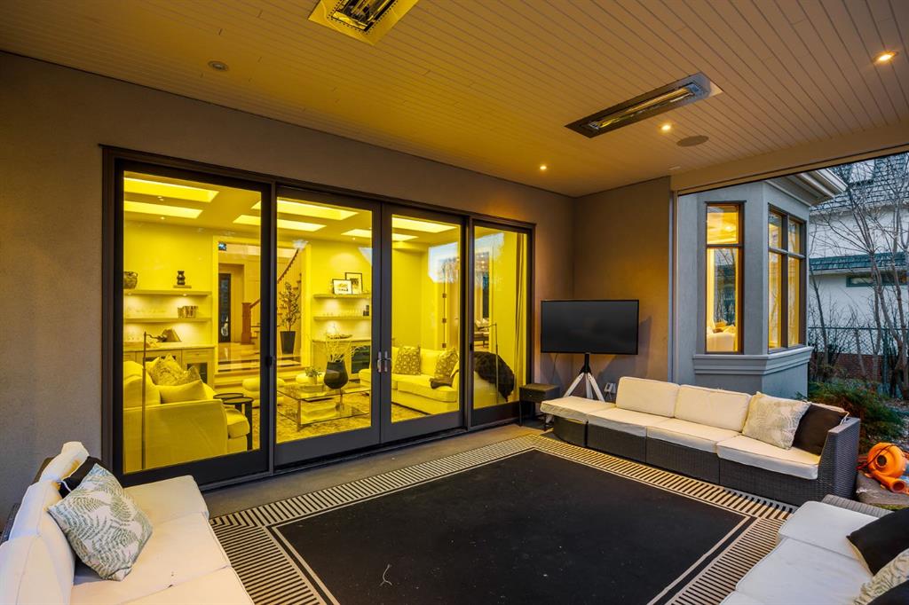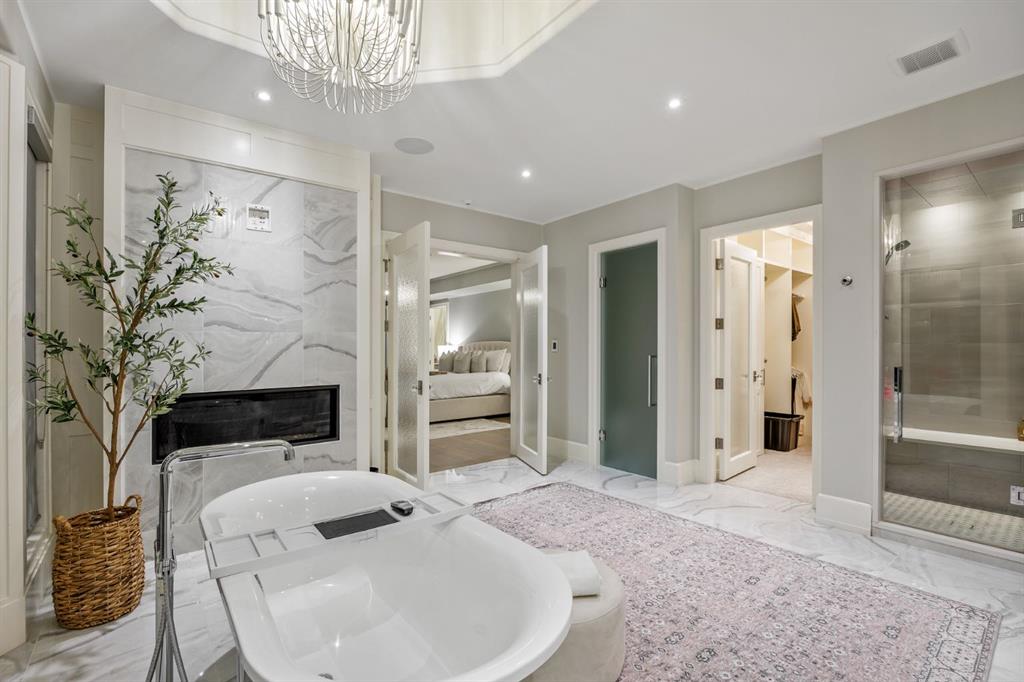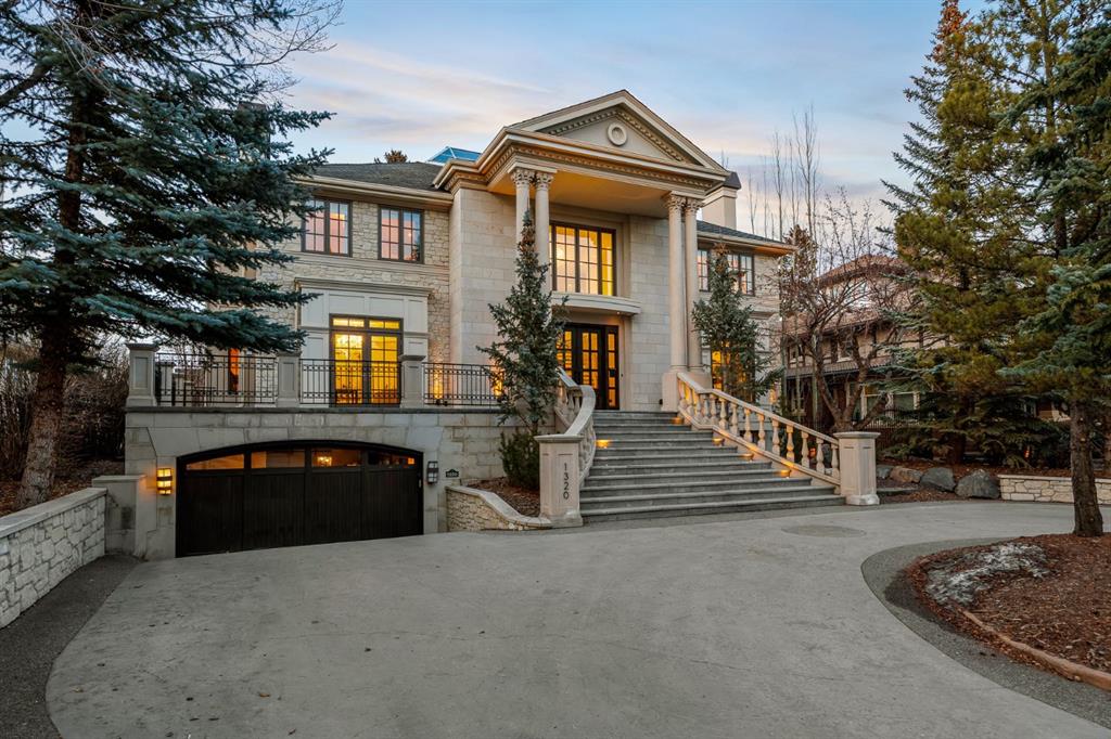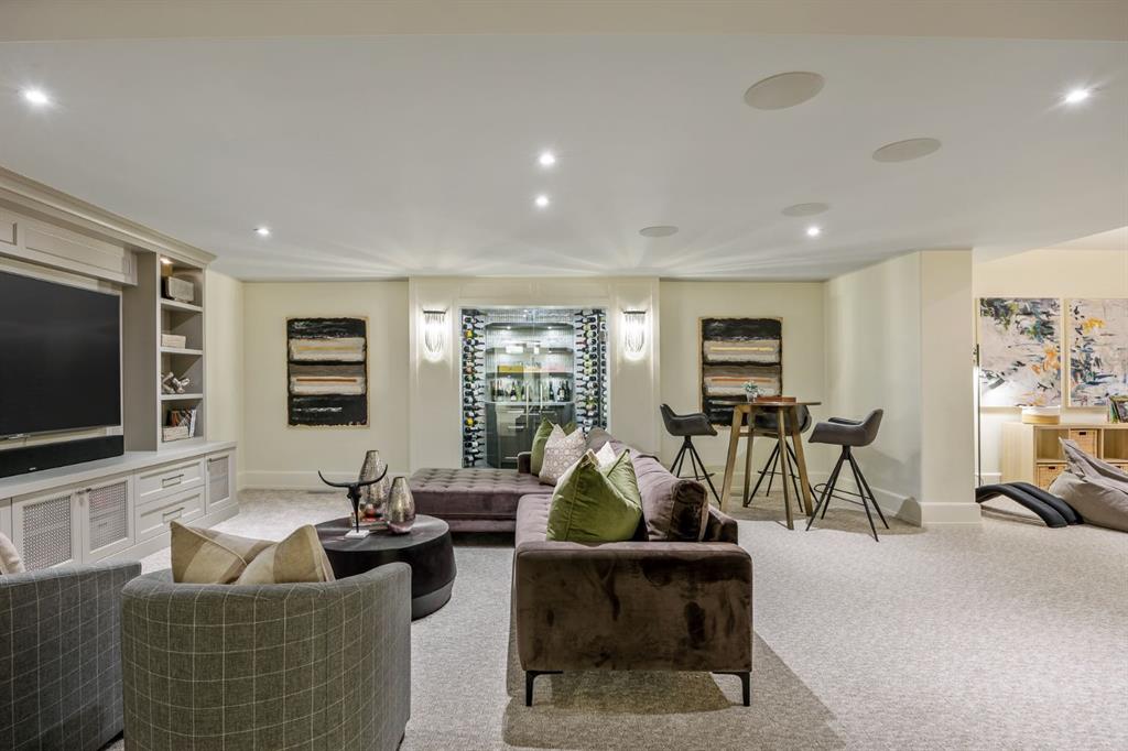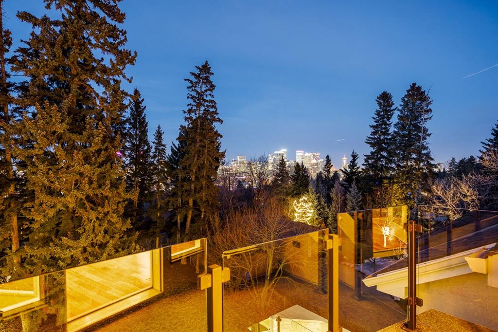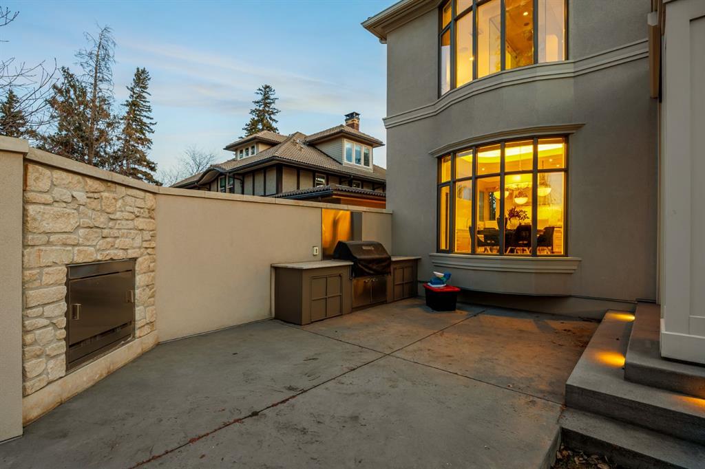 Set on an exceptional 0.31-acre estate lot in the heart of prestigious Upper Mount Royal, this extraordinary 2½-storey luxury residence offers a rare opportunity in one of Calgary’s most coveted neighbourhoods. Completely re-imagined and renovated by award-winning Rockwood Custom Homes in 2018, the property delivers over 8,700 sq. ft. of beautifully developed living space, including close to 6,050 sq. ft. above grade, blending timeless elegance with modern sophistication. The striking stone exterior complements the historic character of the community, while the interior showcases exceptional craftsmanship throughout. A dramatic 19-foot foyer welcomes you with marble floors, a sweeping dual staircase, and a custom Swarovski crystal chandelier. Designed for both refined entertaining and everyday living, the main level features an expansive chef’s kitchen with marble backsplash, premium Sub-Zero, Faber and Dacor appliances, quartz countertops, ample storage, and an oversized leathered granite island. The adjacent great room is highlighted by coffered ceilings and floor-to-ceiling windows and flows seamlessly to a covered outdoor living and kitchen area with a built-in fireplace and grill. Infratech heaters and the addition of retractable screens transform this space into a comfortable three-season space. A formal dining room and private office, both with gas fireplaces, along with a discreet powder room, complete the main floor. Upstairs, the private quarters are anchored by an exceptional primary retreat featuring dual walk-in closets and adjoining yet separate spa-inspired ensuite bathrooms. Two additional bedrooms each include their own four-piece ensuite, along with a dedicated laundry room. The third-floor loft offers flexible space ideal for a home gym or lounge with vaulted ceilings, skylight, and opens up to a balcony with unrivalled downtown city views. The fully developed lower level includes a spacious recreation and media room, guest bedroom with full ensuite, and a glass-enclosed wine room with sink and elegant bottle storage. The generous sized mudroom with additional Sub-Zero refrigerator and freezer adds everyday convenience and function. An oversized heated four-car garage connects via a heated underground tunnel to a private, standalone spa pavilion featuring almost 500 sq. ft. of wellness space with dry sauna, steam shower, powder room and additional space for a cold plunge or hot tub —an exceptionally rare amenity that can be accessed without ever stepping a foot outside. Professionally landscaped grounds include mature trees, extensive irrigation, stone detailing, and a large south-facing backyard with a charming treehouse. Additional features include ELAN smart-home integration, built-in speakers, state-of-the-art security, a heated driveway with upgraded grating system, and proximity to The Glencoe Club, top schools, parks, downtown, and the shops and dining of 17th Avenue S.W.