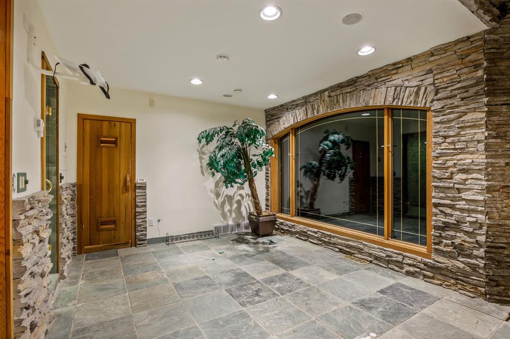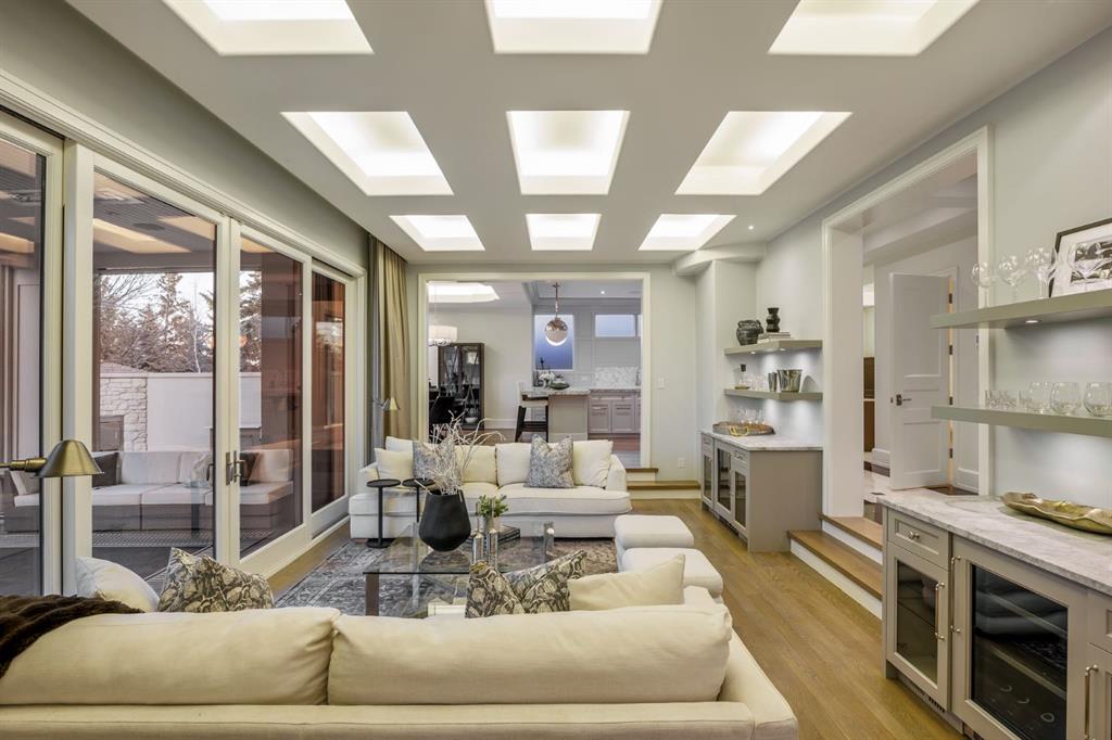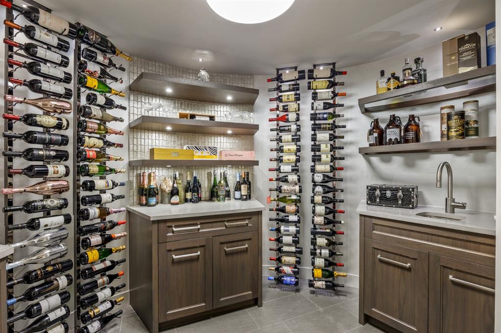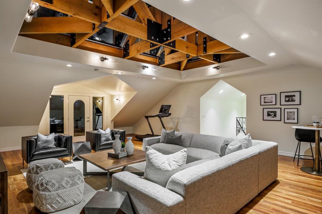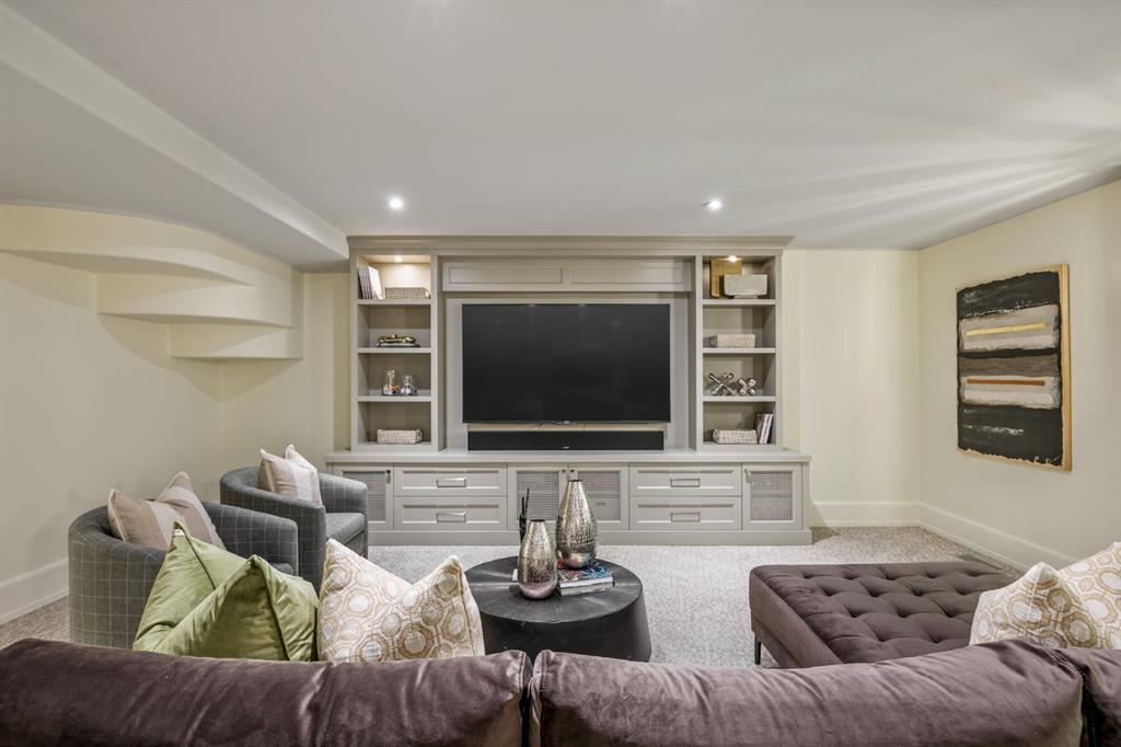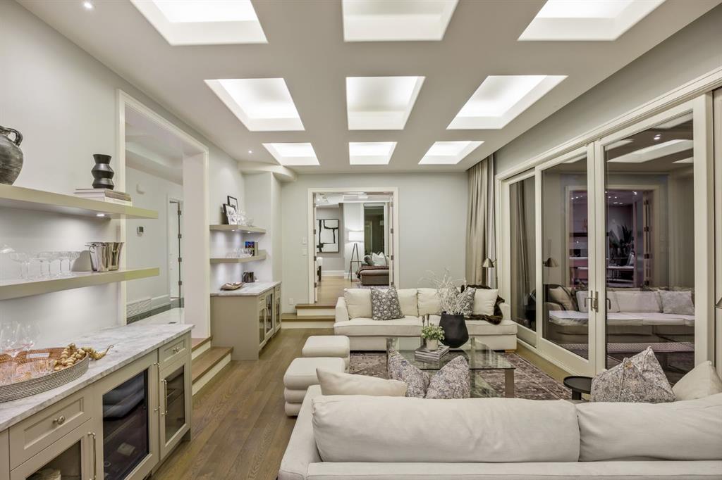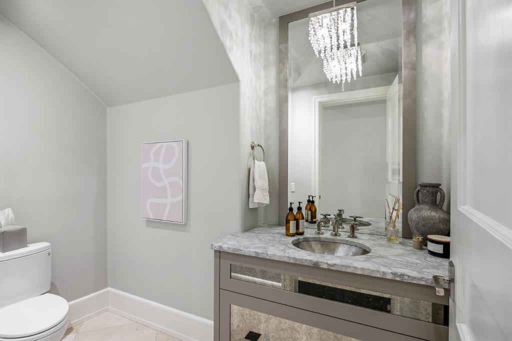 Set on an exceptional 0.31-acre estate lot in the heart of prestigious Upper Mount Royal, this extraordinary 2½-storey luxury residence offers a rare opportunity in one of Calgary’s most coveted neighbourhoods. Completely re-imagined and renovated by award-winning Rockwood Custom Homes in 2018, the property delivers over 8,700 sq. ft. of beautifully developed living space, including close to 6,050 sq. ft. above grade, blending timeless elegance with modern sophistication. The striking stone exterior complements the historic character of the community, while the interior showcases exceptional craftsmanship throughout. A dramatic 19-foot foyer welcomes you with marble floors, a sweeping dual staircase, and a custom Swarovski crystal chandelier. Designed for both refined entertaining and everyday living, the main level features an expansive chef’s kitchen with marble backsplash, premium Sub-Zero, Faber and Dacor appliances, quartz countertops, ample storage, and an oversized leathered granite island. The adjacent great room is highlighted by coffered ceilings and floor-to-ceiling windows and flows seamlessly to a covered outdoor living and kitchen area with a built-in fireplace and grill. Infratech heaters and the addition of retractable screens transform this space into a comfortable three-season space. A formal dining room and private office, both with gas fireplaces, along with a discreet powder room, complete the main floor. Upstairs, the private quarters are anchored by an exceptional primary retreat featuring dual walk-in closets and adjoining yet separate spa-inspired ensuite bathrooms. Two additional bedrooms each include their own four-piece ensuite, along with a dedicated laundry room. The third-floor loft offers flexible space ideal for a home gym or lounge with vaulted ceilings, skylight, and opens up to a balcony with unrivalled downtown city views. The fully developed lower level includes a spacious recreation and media room, guest bedroom with full ensuite, and a glass-enclosed wine room with sink and elegant bottle storage. The generous sized mudroom with additional Sub-Zero refrigerator and freezer adds everyday convenience and function. An oversized heated four-car garage connects via a heated underground tunnel to a private, standalone spa pavilion featuring almost 500 sq. ft. of wellness space with dry sauna, steam shower, powder room and additional space for a cold plunge or hot tub —an exceptionally rare amenity that can be accessed without ever stepping a foot outside. Professionally landscaped grounds include mature trees, extensive irrigation, stone detailing, and a large south-facing backyard with a charming treehouse. Additional features include ELAN smart-home integration, built-in speakers, state-of-the-art security, a heated driveway with upgraded grating system, and proximity to The Glencoe Club, top schools, parks, downtown, and the shops and dining of 17th Avenue S.W.