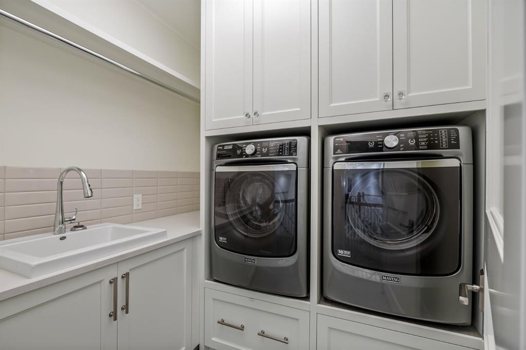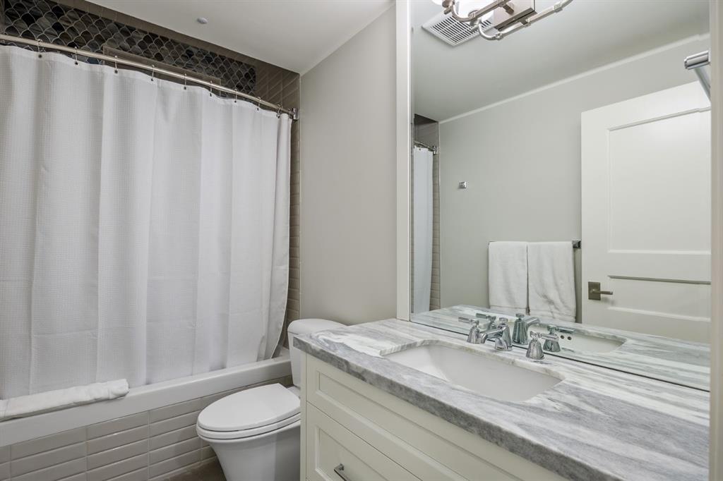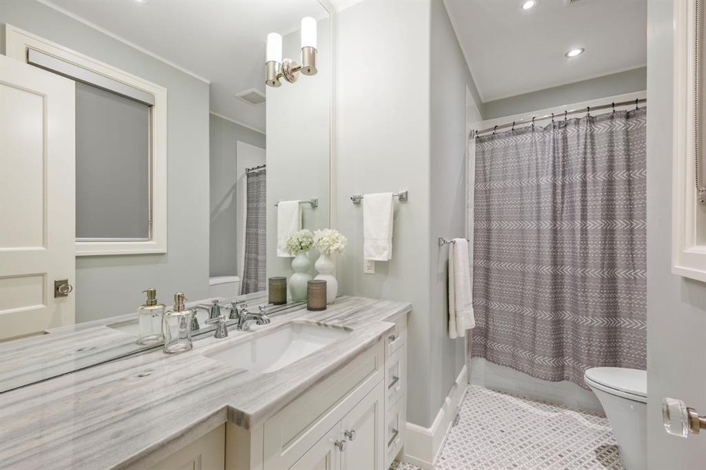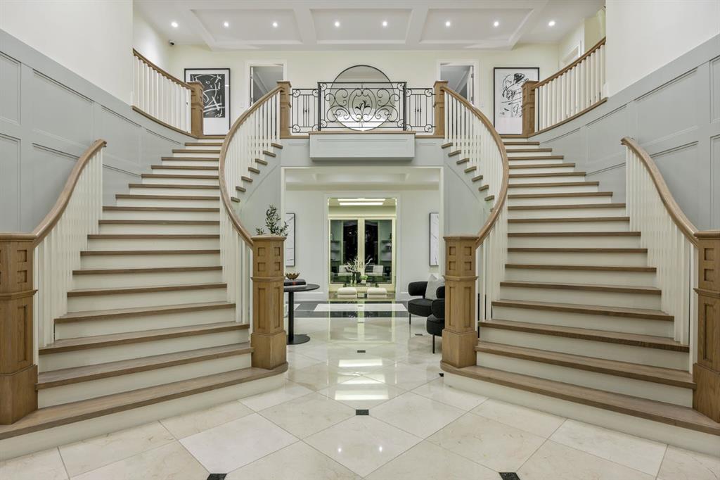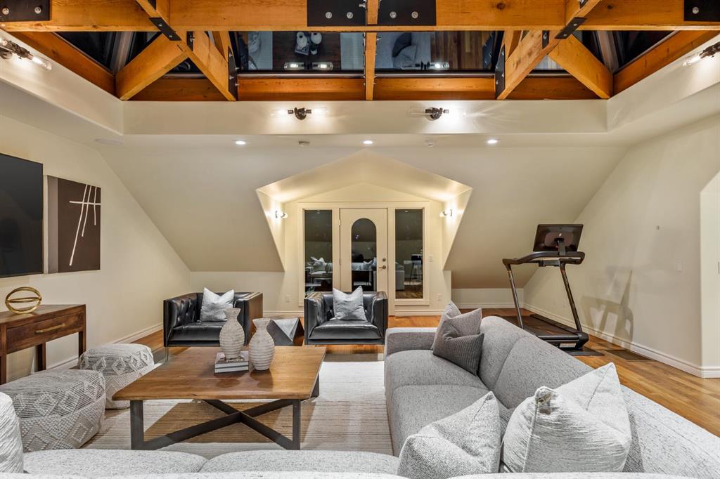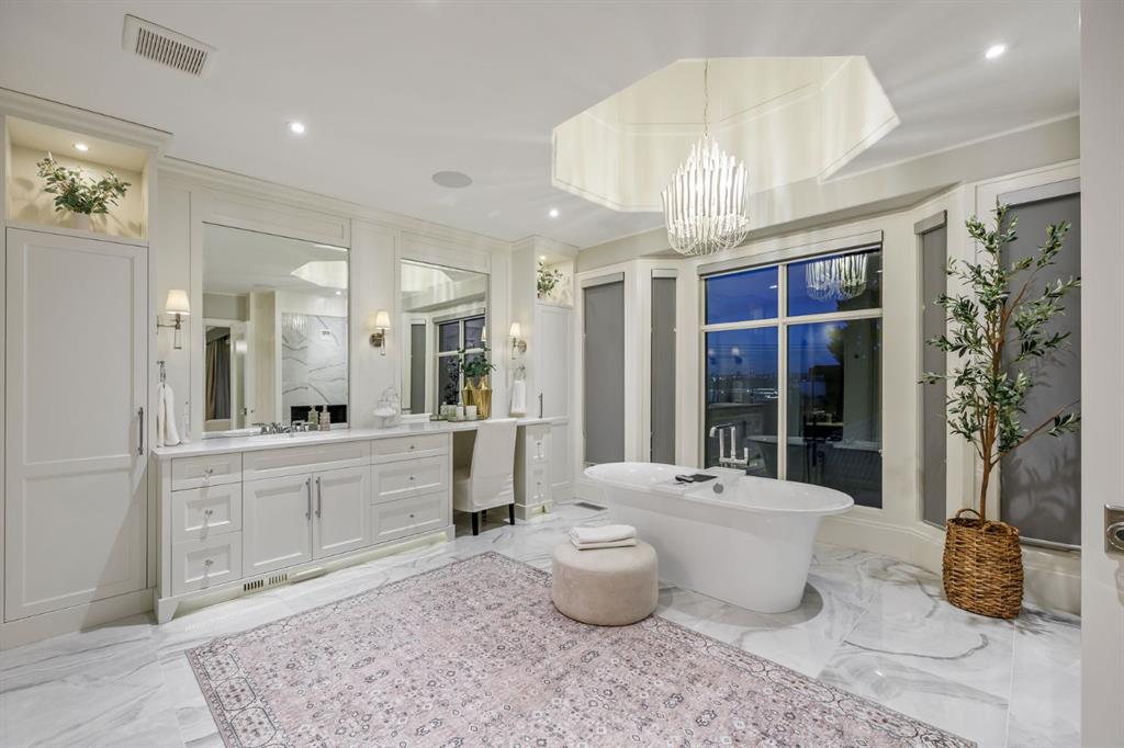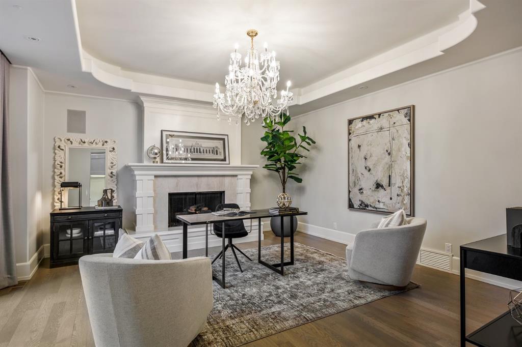 Set on an exceptional 0.31-acre estate lot in the heart of prestigious Upper Mount Royal, this extraordinary 2½-storey luxury residence offers a rare opportunity in one of Calgary’s most coveted neighbourhoods. Completely re-imagined and renovated by award-winning Rockwood Custom Homes in 2018, the property delivers over 8,700 sq. ft. of beautifully developed living space, including close to 6,050 sq. ft. above grade, blending timeless elegance with modern sophistication. The striking stone exterior complements the historic character of the community, while the interior showcases exceptional craftsmanship throughout. A dramatic 19-foot foyer welcomes you with marble floors, a sweeping dual staircase, and a custom Swarovski crystal chandelier. Designed for both refined entertaining and everyday living, the main level features an expansive chef’s kitchen with marble backsplash, premium Sub-Zero, Faber and Dacor appliances, quartz countertops, ample storage, and an oversized leathered granite island. The adjacent great room is highlighted by coffered ceilings and floor-to-ceiling windows and flows seamlessly to a covered outdoor living and kitchen area with a built-in fireplace and grill. Infratech heaters and the addition of retractable screens transform this space into a comfortable three-season space. A formal dining room and private office, both with gas fireplaces, along with a discreet powder room, complete the main floor. Upstairs, the private quarters are anchored by an exceptional primary retreat featuring dual walk-in closets and adjoining yet separate spa-inspired ensuite bathrooms. Two additional bedrooms each include their own four-piece ensuite, along with a dedicated laundry room. The third-floor loft offers flexible space ideal for a home gym or lounge with vaulted ceilings, skylight, and opens up to a balcony with unrivalled downtown city views. The fully developed lower level includes a spacious recreation and media room, guest bedroom with full ensuite, and a glass-enclosed wine room with sink and elegant bottle storage. The generous sized mudroom with additional Sub-Zero refrigerator and freezer adds everyday convenience and function. An oversized heated four-car garage connects via a heated underground tunnel to a private, standalone spa pavilion featuring almost 500 sq. ft. of wellness space with dry sauna, steam shower, powder room and additional space for a cold plunge or hot tub —an exceptionally rare amenity that can be accessed without ever stepping a foot outside. Professionally landscaped grounds include mature trees, extensive irrigation, stone detailing, and a large south-facing backyard with a charming treehouse. Additional features include ELAN smart-home integration, built-in speakers, state-of-the-art security, a heated driveway with upgraded grating system, and proximity to The Glencoe Club, top schools, parks, downtown, and the shops and dining of 17th Avenue S.W.