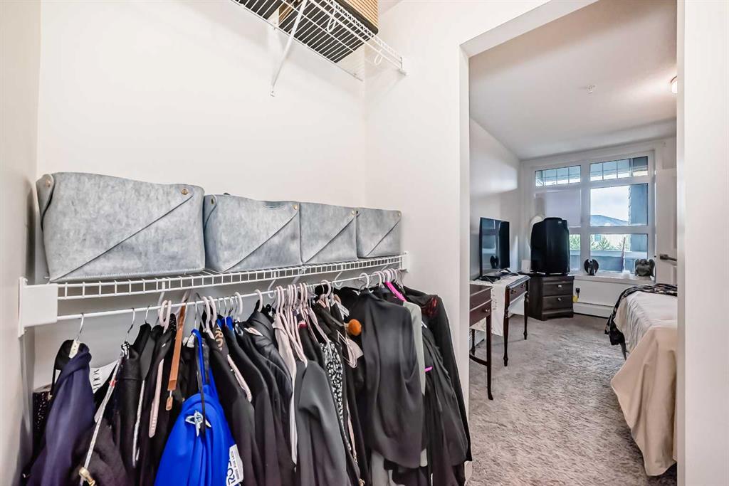 Modern two bedroom condo with MOUNTAIN VIEWS and UPGRADES! Welcome to this unique and open condo in the sought after community of Auburn Bay. This condo will exceed your expectations upon arrival. Step into your gorgeous BRIGHT KITCHEN with QUARTZ countertop, tiled backsplash, plenty of cabinet and counter space and stainless steel appliances. This unit is packed with every available upgrade including wide plank LVP flooring, increased capacity washer and dryer, 9 foot knock down ceilings and lots of STORAGE and built in shelving. The 4 piece bathroom has two door for easy access from the bedroom or living space. Your new primary bedroom is bright with a large window and a walk through closet. This unit also has a second bedroom with a barn door. You will appreciate the view that faces the courtyard and is extremely quiet. The private OVERSIZED BALCONY with NATURAL GAS outlet offers a quiet place to entertain with courtyard and MOUNTAIN VIEWS. This home also includes HEATED UNDERGROUND PARKING with direct access to the elevator and a large storage unit. One of Calgary's PREMIER LAKE COMMUNITIES that offers a year round lake, tennis courts, beach, volleyball, skating and swimming. You are also minutes away from the SOUTH HEALTH CAMPUS HOSPITAL, YMCA, VIP THEATRE, many restaurants and pubs, shopping and schools, public transit, Deerfoot and Stony Trail and off leash dog park. This is a must see!