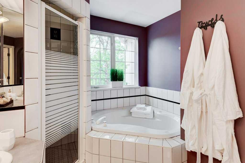 Welcome to a truly one-of-a-kind, New York-style walk-up penthouse located in the highly desirable inner-city community of Windsor Park—just steps from Chinook Mall, transit, and minutes from downtown Calgary. Boasting over 2,000 sq ft of luxurious living space across two stunning levels, this updated home combines architectural elegance, thoughtful design, and unmatched outdoor space. Inside, you're greeted by soaring vaulted ceilings, expansive windows, and an open-concept layout drenched in natural light. The gourmet kitchen is a chef’s dream, featuring custom oak cabinetry, newer stainless steel appliances, a built-in gas range, and an eat-up breakfast bar—perfect for casual dining or entertaining. Rich hardwood floors with intricate Purple Heart inlay add a sophisticated touch. The spacious living room includes a built-in entertainment unit and a three-sided gas fireplace that seamlessly connects to the formal dining area. Your primary retreat offers custom built-ins, a large walk-in closet connected to the laundry room, and a spa-inspired 5-piece ensuite with a jetted tub and oversized shower. From both the living room and primary suite, step out onto a private, north-facing balcony tucked into the treetops—your own peaceful, treehouse-like escapeUpstairs, an elegant staircase leads to a bright lofted family room overlooking the main floor, a spacious second bedroom, a modern 3-piece bathroom with in-floor heating and a massive steam shower, a den, and a bonus room—ideal for a home office or creative studio. And here's the showstopper: a private 1,500 sq ft rooftop terrace, unlike anything else in the area. Whether you're hosting summer soirées or enjoying peaceful evenings under the stars, this rooftop is pure magic. Additional features include: heated underground parking, oversized storage locker, quiet, professionally managed building with strong financials. Perfect for professionals, creatives, or investors seeking luxury and lifestyle in a premier location.