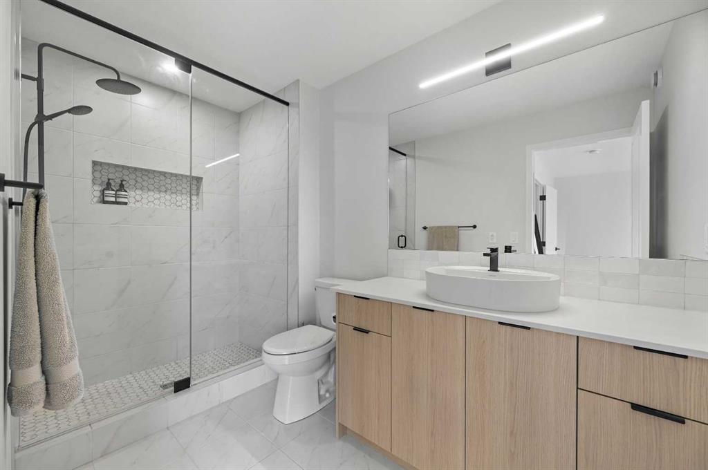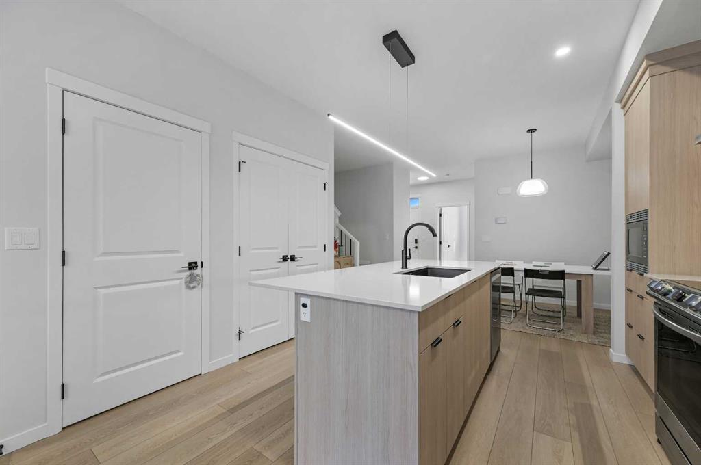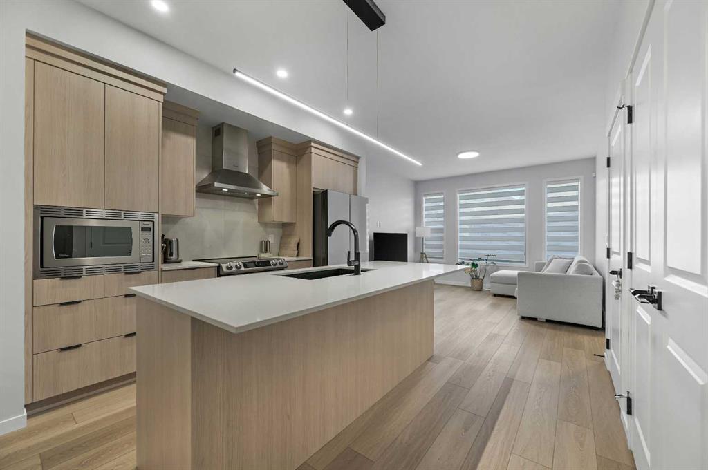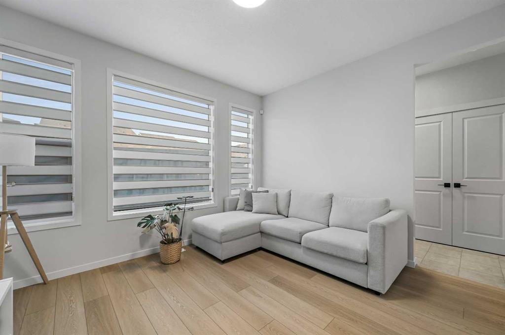 ** Great Value - $80K in upgrades - list available ** Side Entry ** Double Garage ** 1777+ Sq Ft ** 4 Bedroom home ** Immaculately maintained, almost brand new, bright and open plan. Modern design 2-story home in the heart of the vibrant Livingston community. Located on a fully paved lane with well-maintained double garages, offering a clean and organized rear access rarely found. GOURMET KITCHEN - CHEF'S DELIGHT! Custom features include upgraded classic wood-style cabinet doors, an efficient family-approved layout with stainless steel appliances (including a smooth-top stove), a glass panel front fridge, a central island with a flush eating bar, an undermount black granite sink, quartz countertops, custom full-height backsplash tile, and a stainless steel hood fan. The spacious dining room and great room bookend the open design, all of which feature 9-foot ceilings. The larger floor plan features a front main floor bedroom/office/den, an oversized front foyer, a back mudroom, a staircase with railings, and a landing. Super bright design!! All flooring is upgraded with wide-plank LVP hardwood flooring on the main floor and tile floors in the upper bathrooms- no carpet! BONUS: The upstairs bonus room is perfect for a home office, spare bedroom, or extra TV room. Three generously sized bedrooms & 2.5 bathrooms. NOTE: The primary bedroom features a private 3-piece en-suite with an upgraded sink basin, quartz countertops, and a spacious walk-in tiled shower with glass doors. Other upgrades include custom window coverings, an unspoiled basement with high 9' ceilings, side entry, oversized windows, a rough-in bathroom, and a 22' x 22' double-car garage with room for extra street parking out front. Excellent curb appeal with a covered front porch, fully landscaped with a walkway and fencing, all complete. Available for a 30/60 day possession date. Please feel free to call your friendly REALTOR(R) to view.