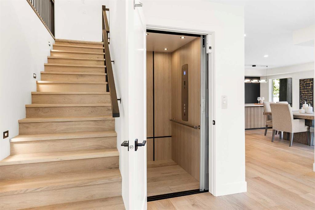 built-in features, central vacuum, closet organizers, elevator, kitchen island, natural woodwork, open floorplan, quartz counters, separate entrance, storage, tankless hot water, vaulted ceiling(s), walk-in closet(s), wired for data, wired for sound
