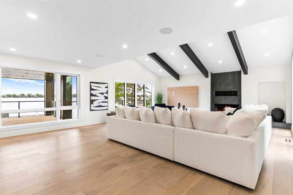 WELCOME TO LAKE SIDE HEAVEN. lt exudes elegance, luxury and high class. Nestled on 0.50 ACRES with 5,657 Sq ft ABOVE GRADE living; this exceptional property offers captivating LAKE VIEWS and great views of the LAKESIDE GOLF COURSE. Boasting 7 beds and 6 baths Including an independent 2 bed, 2 bath legal suite with laundry & kitchen. home is perfect for multi-generational living or entertaining guests. Boasts living spaces on every floor and an ELEVATOR, it provides the utmost convenience and comfort for all. The home has been completely redesigned and remodelled to the studs; with ALL NEW ELECTRICAL WIRING, PLUMBING, HVAC, INSULATION, ROOFING, EXTERIORS, and more. Showcasing modern luxury and sophistication, A THREE CAR GARAGE and FULLY UPDATED LANDSCAPING add to the grandeur of the home, elevating the allure of lakefront living. Step inside to discover a kitchen that will delight any culinary enthusiast. Featuring Schenk architectural products cabinet fascia, premium quartz countertops and backsplash, and a FULL DACOR APPLIANCE PACKAGE including a 72" BUILT-IN PANEL READY FRIDGE/FREEZER, CONVECTION MICROWAVE/WALL OVEN COMBO, 36" GAS RANGE, PANEL-READY DISHWASHER, and a COFFEE. BAR WITH A WINE or BEVERAGE FRIDGE. Every detail has been carefully considered, ensuring durability, style, and functionality. The main floor welcomes you with a sunken living room, complete with ample space for a large television, and sliding door access to the lake. Adjacent to the foyer, you'll find an open space perfect for a games room, as well as a half-bath and laundry with private access to the lake. On the second floor, a wood-burning fireplace and exposed wooden beams take centre stage, creating a cozy and inviting atmosphere. The third floor offers versatility, whether you desire a secluded space to relax and read or a playroom for your children. The bonus room provides ample space for everyone's needs. Escape to the master suite, located on the tranquil third floor, where a private deck offers unobstructed lake views. An electric fireplace sets a soothing ambiance and adds a touch of sophistication to the space. IN THE MASTER BEDROOM, INDULGE IN THE LUXURIOUS ENSUITE BATH, FEATURING HEATED FLOORS, A LARGE SHOWER, ELECTRIC TOWEL WARMER, A FREE STANDING TUB WITH BREATH TAKING LAKE VIEWS. HEATED FLOORS ADORNED WITH ONYX TILES CREATE A SPA-LIKE ATMOSPHERE, perfect for unwinding after a long day. Completing this masterpiece is a generously sized walk-in closet, complete with built-in drawers and hanging bays. Organize your clothing and accessories with ease. Other features: CCTV CAMERAS , AMBIENT LIGHTING, FULLY LANDSCAPED LAWN, MAINTENANCE FREE DOCK, TOPLESS HAND RAILS, ROUGHED IN VACUUM SYSTEM, and EXTERIOR SPEAKERS, BARBEQUE GAS LINE, EPOXY FLOOR IN GARAGE , TWO MUD ROOMS, generously sized walk in closets Experience the epitome of elegance, waterfront luxury, and excellence. Don't miss the opportunity to make it yours and elevate your lifestyle.