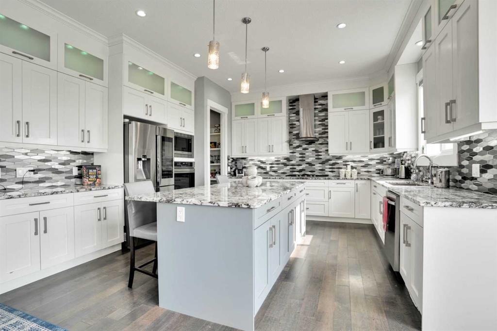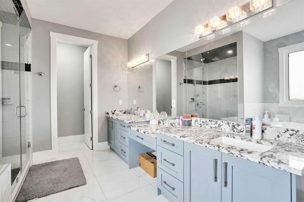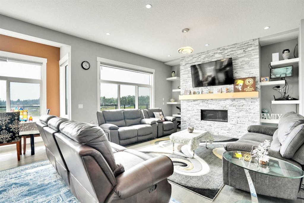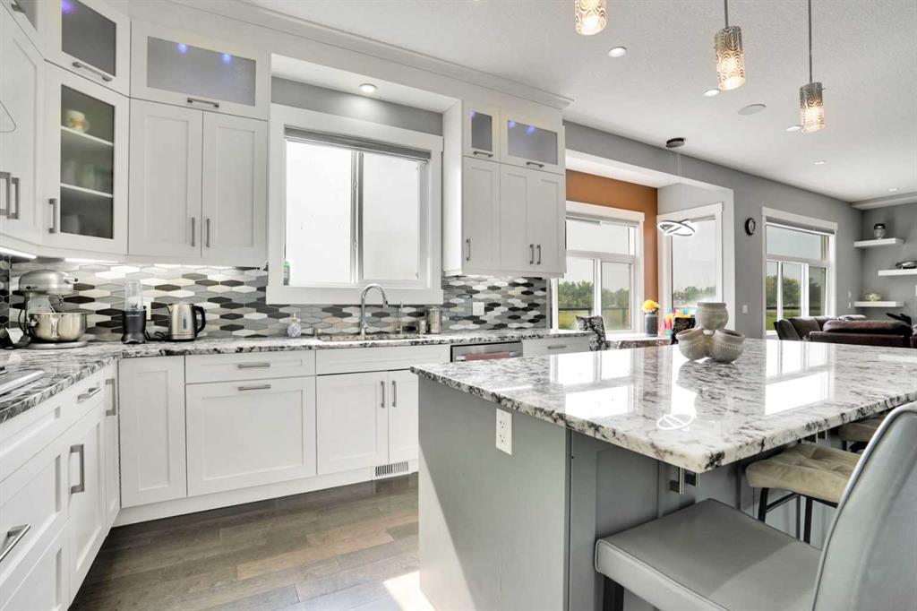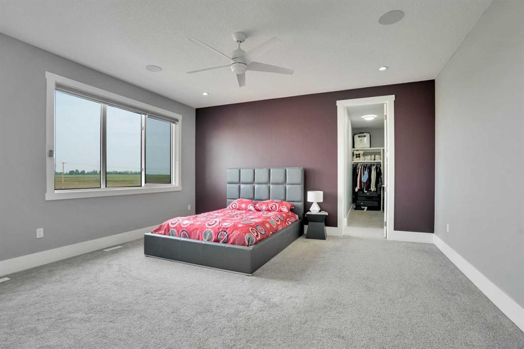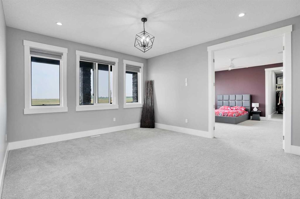 Refined Country Luxury Just Minutes from Chestermere. This 2021 custom-built estate delivers over 5,400 sq. ft. of exceptional craftsmanship across three levels on nearly 2 acres. Designed for Luxury, functionality and family living, it presents a striking two-storey exterior with terrace Balconies, dazzling stonework and an Oversized Heated Garage that accommodates 6+ vehicles. On the main level, a grand foyer opens into bright, welcoming spaces filled with large windows for Natural Light. The inviting family room features a cozy fireplace and flows into a stunning Chef’s kitchen with Granite Counters, a massive island, abundant cabinetry and a walk-in Pantry. A spacious Office that can be converted into a seventh bedroom sits next to a full bathroom, while a convenient mudroom off the garage keeps everything organized. A beautiful Deck off the kitchen – perfect for summer BBQs and entertaining. Upstairs are four generous bedrooms—each with its own ensuite, including two with Steam Showers, walk-in closets and private Balconies. A family room, flex space and convenient laundry complete this level. The primary Ensuite is a private retreat with a lavish 5-piece ensuite (granite counters, soaker tub, steam shower) and walk-in closet. The lower level is built for versatility and entertainment with a custom Wet Bar and full Media/Theatre room with washroom. The other side houses a fully self-contained 2-bedroom Legal suite complete with kitchen, bath, laundry and private entrance, while above-grade windows flood the entire level. The basement is equipped with in-floor heating for year-round comfort.with natural light. Car enthusiasts will appreciate the Attached, Heated, and Insulated garage—approximately 35’ x 74’ with high ceilings ready for a hoist, built-ins, and space for multiple vehicles. There’s even a dedicated hot-tub room already set up for your relaxation needs. Outdoors, the expansive grounds are ready for your vision—a sports court, pool, outdoor kitchen or entertainment area. Smart-home features include Surround Sound, exterior Puck Lights, Security Cameras, and Dual high-efficiency furnaces. Situated in Rocky View County, this estate combines peaceful country living with urban convenience—just 5 minutes to Chestermere and a short drive to Calgary with quick access to Hwy 1, Stoney Trail, Deerfoot Trail and Glenmore Trail.