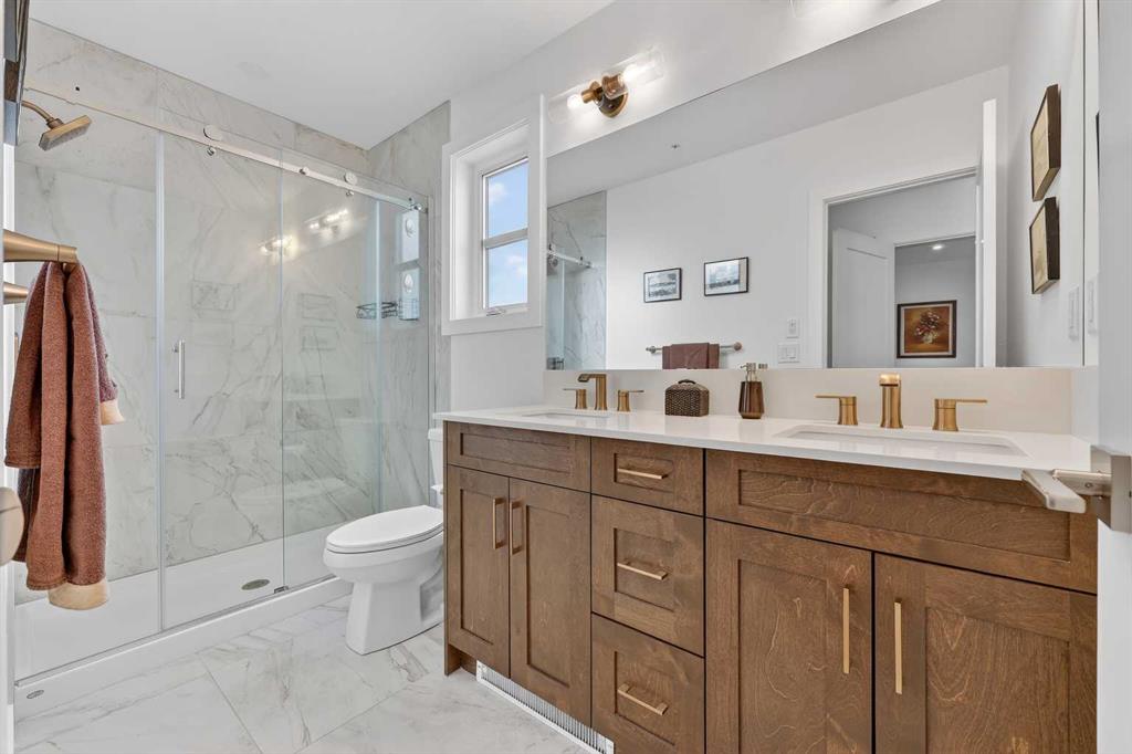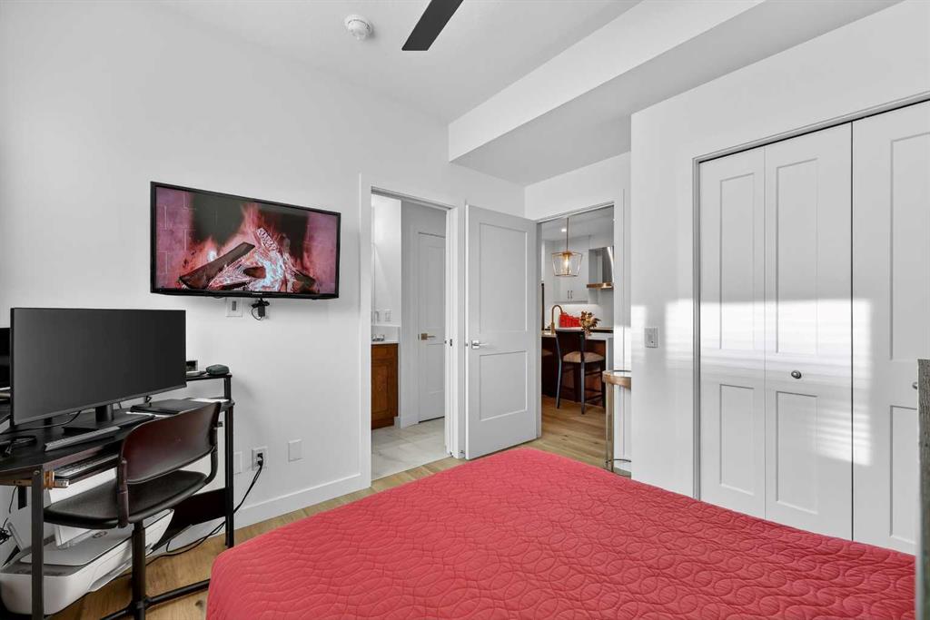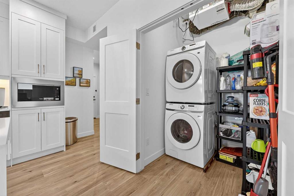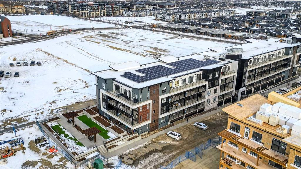 ** NEW LISTING ** Waterside Mahogany - Third Floor Corner Model "Atwood 3" with Courtyard Views - Quick Possession!! Unbelievable VALUE & DESIGN! This superb air-conditioned condo offers two bedrooms, two bathrooms, a titled indoor tandem parking stall (2 cars), extra tall windows, south exposure, a 160 SF covered balcony, and high 9' ceilings. Many Designer Value Added features ... Check and Compare; 974 RMS sq. ft. of luxurious living space. Loaded with extras... Luxury wide plank engineered flooring, upgraded lighting and plumbing fixtures, dual pane Low-E windows, wide patio door, modern white painted casings, doors & baseboards, white decora light switches, convenient laundry with storage & stacked washer/dryer. High-end stainless steel appliance package: fridge with freezer below, built-in microwave, smooth top electric cooktop, and quiet Energy Star-rated tall tub dishwasher. Upgraded Kitchen cabinets with tall upper doors + soft-close drawers + extra floor cabinets + mouldings with under-cabinet lighting, white quartz island countertops, undermount dual-basin stainless steel sink, full-height quartz backsplash, pull-out kitchen faucet, dramatic centre island with waterfall ends, flush eating bar, and room to sit 4. BONUS features: California closet built-in canisters, electric fireplace, and assigned storage locker! BUILDING INFO: latest in acoustic attenuation technology, including Sonopan panelling, combined with real-world testing to achieve best-in-class results. Acoustic Shield 2.0 helps create a calm, peaceful environment where life’s best moments thrive, because every home deserves comfort and connection without the noise. ERV - Advanced Ventilation System - This energy-efficient technology is designed to draw fresh air from outside, filter it, warm it (as needed), and circulate clean air into your home, exhausting the old. In every individual condo. Plus, a supersized front foyer and private entry! Mahogany is Calgary’s premier four-season lake community, centred around a stunning 63-acre freshwater lake and 22 acres of private beachfront. Residents enjoy exclusive access to swimming, kayaking, paddleboarding, fishing, skating, and year-round community events, all just steps from home. The award-winning Mahogany Beach Club offers recreation facilities, picnic areas, fire pits, playgrounds, and gathering spaces designed to bring neighbours together. Winding pathways, parks, and wetlands create a welcoming outdoor lifestyle, while nearby schools, transit, and major roadways provide everyday convenience. At the heart of the community, Mahogany Village Market features grocery, dining, cafés, fitness, and professional services—making it easy to live, work, and play close to home. Thoughtfully designed streetscapes, diverse housing options, and a strong sense of community make Mahogany one of Calgary’s most desirable places to live.