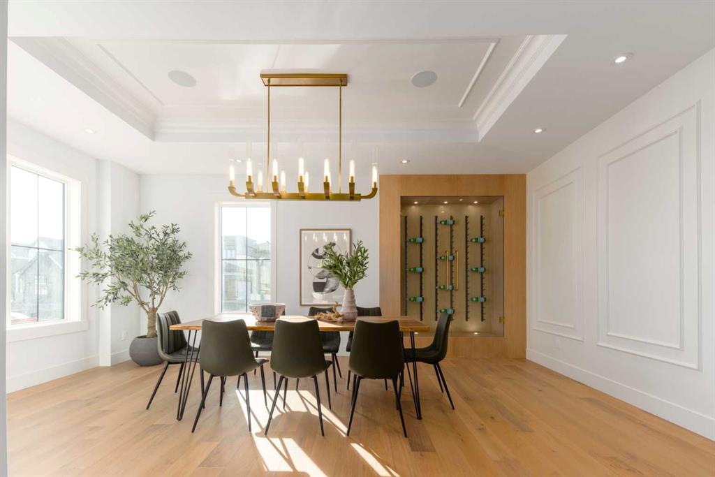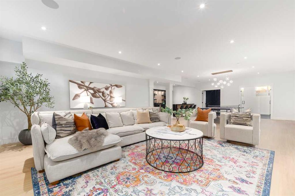 Upstairs, the primary suite is a serene retreat with a boutique-style walk-in closet, spa-inspired ensuite with soaking tub and rainfall shower, and space for private lounging. Three additional bedrooms each feature their own ensuite and walk-in closet, while a flex loft/media space and a fully outfitted laundry room complete the level. The lower level is designed for recreation and relaxation, offering a spacious rec room with wet bar, fitness studio, plush theater room, and two additional bedrooms. Radiant in-floor heating throughout the lower level ensures year-round comfort. Set on a beautifully landscaped 0.28-acre lot, this home includes speaker zones, central vac, gas BBQ hookup, gas garage heater and smart-home rough-ins for modern living. Beyond the property, Watermark is one of Calgary’s most sought-after family communities, renowned for its strong sense of community, scenic pathways, and access to top schools and amenities. With nearby shopping, dining, recreation centers, and a quick drive into the city, it is the perfect balance of tranquility and convenience.