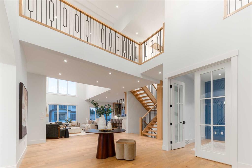 NEW PRICE! Discover the epitome of luxury living at 200 Pondside Place, an extraordinary 7-bedroom, 6.5-bath estate in the prestigious community of Watermark at Bearspaw. Designed with families in mind, this home combines architectural elegance with modern functionality across nearly 6,800 sq ft of developed space. A striking façade of smooth stucco, black wood accents, and stone detailing sets the tone, while a four-car garage and exposed aggregate driveway provide both practicality and curb appeal. Inside, soaring ceilings, wide-plank oak floors, and expansive windows create a light-filled atmosphere that is as welcoming as it is refined.