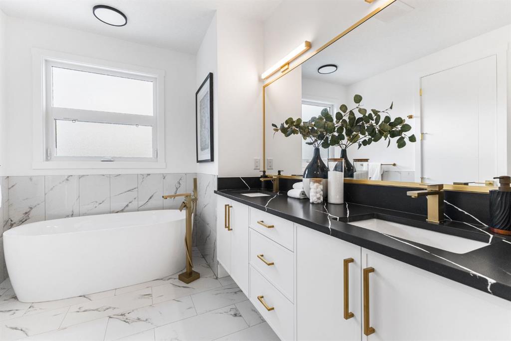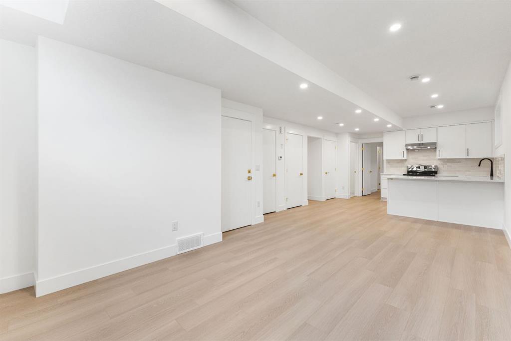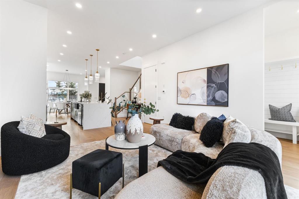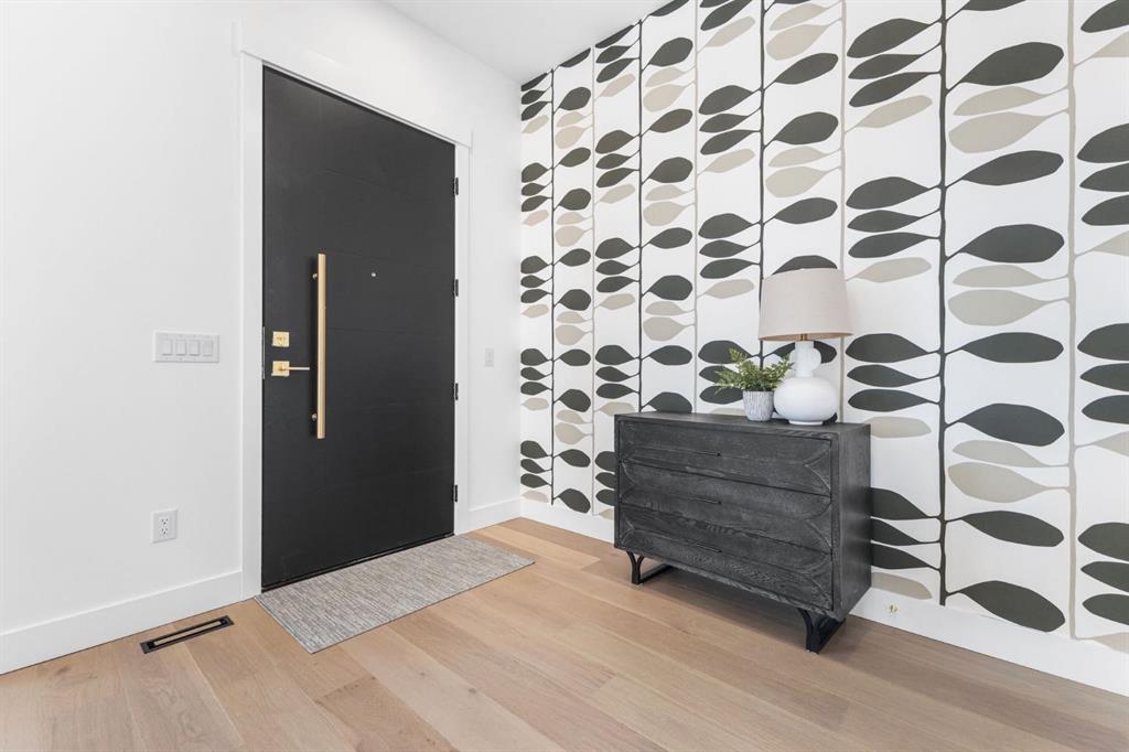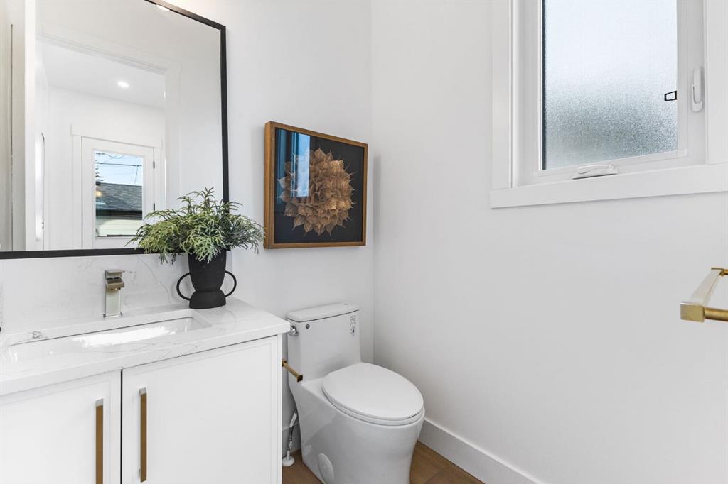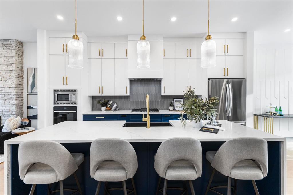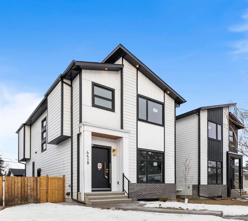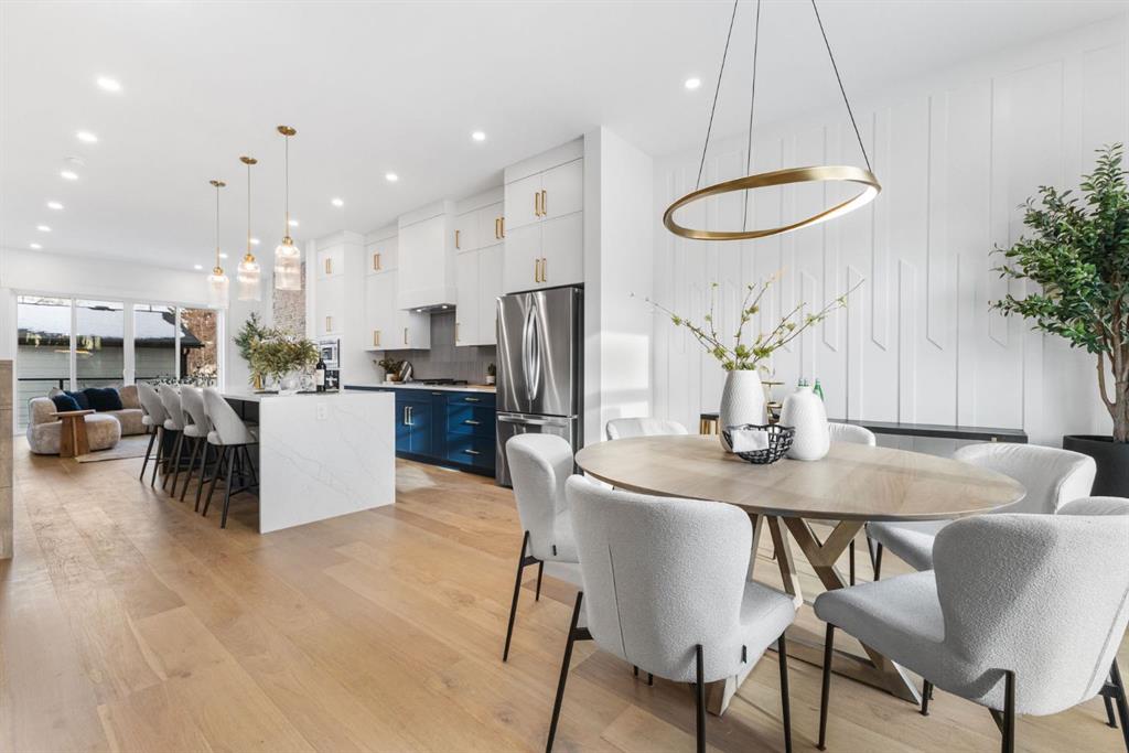 Welcome to this brand-new, 3 bedroom residence perfectly situated in the mature community of Rosscarrock. Designed for modern living and crafted with exceptional attention to detail, this contemporary two-storey home offers over 1900 sq ft of beautifully developed space, plus a self-contained legal one-bedroom basement suite—ideal for guests, or as a potential mortgage helper. The main level showcases an open-concept design enhanced by wide-plank hardwood floors, high ceilings, and expansive windows that flood the space with natural light. The inviting living room features a striking floor to ceiling fireplace and built-in shelving, creating a warm focal point for gatherings. The adjacent dining area easily accommodates family meals or formal entertaining. At the heart of the home, the chef-inspired kitchen impresses with full-height cabinetry, quartz countertops, an oversized island with breakfast bar and excellent appliance package. Thoughtful details such as recessed lighting, designer chandelier, a functional mudroom with custom built-ins and 2 piece powder room elevate the space. Upstairs, the vaulted-ceiling primary suite is a private retreat, complete with a spacious walk-in closet fitted with custom organizers and a luxurious 5-piece ensuite featuring double sinks, a quartz-topped vanity, freestanding soaking tub, and separate glass shower. Two additional bedrooms, a 4-piece bath, and a convenient laundry room with sink complete this level. The fully developed lower level has been designed as a private, self-contained legal one-bedroom suite, complete with its own kitchen, living area, full bathroom, and laundry facilities. Large windows, recessed lighting, and quality finishes ensure the suite feels bright and inviting—ideal for extended family, guests, or rental use. Outside, enjoy a private, landscaped yard with a rear deck, fencing, and a double detached garage. The home’s exterior blends timeless brick and composite siding with modern lines and a welcoming south-facing front exposure. Situated on a quiet street within walking distance to parks, playgrounds & schools and close to Shaganappi Point Golf Course, shopping, scenic Edworthy Park and public transit, this property offers the perfect balance of style, flexibility, and convenience. Newly built in 2025, this outstanding Rosscarrock residence delivers premium craftsmanship, functional design, and exceptional versatility—ideal for today’s discerning buyer seeking luxury living with the added benefit of a legal self-contained suite.