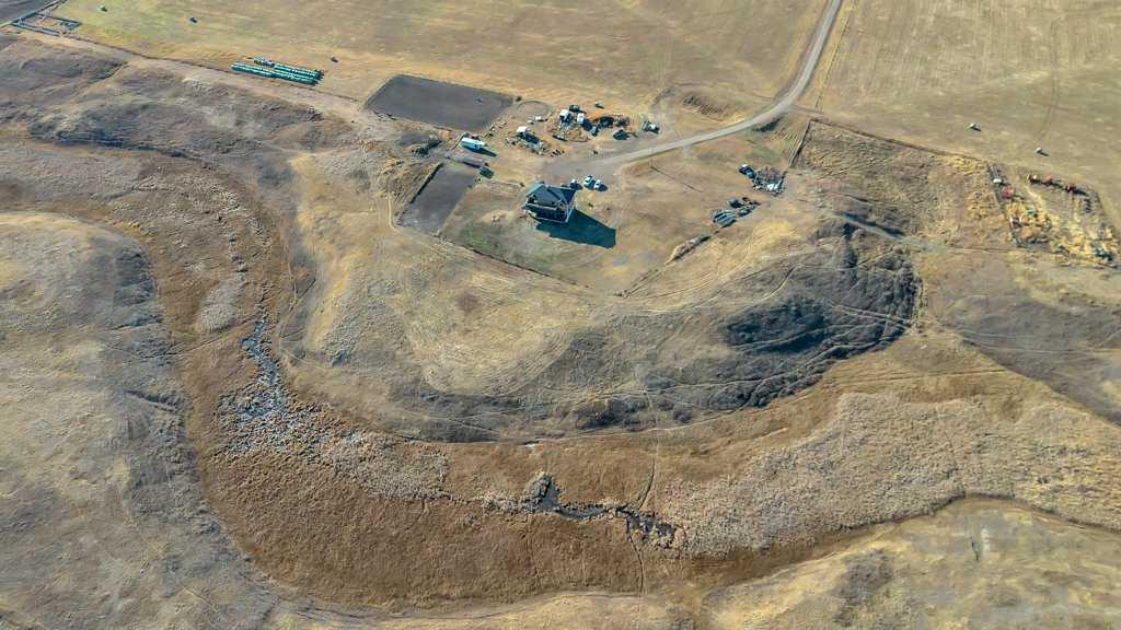 Experience true prairie living just minutes from town and under an hour from Calgary. This 148.5-acre ranch in Wheatland County combines working-ranch functionality with modern comfort and wide-open Alberta beauty. Fenced and cross-fenced with irrigation rights through the Western Irrigation District, the land supports hay and pasture, features rolling terrain with a coulee and year-round creek, and includes a 120’ x 240’ outdoor riding arena—ideal for cattle, horses, or expanding your agricultural operation. An annual gas lease also provides $2,400 in income. Set on a new 10’ ICF walkout foundation in 2019, the home offers more than 4,100 sq ft of space with updated mechanical systems, in-floor heat, and bright, open-concept living areas designed around the property’s sweeping views. The kitchen was built in 2019 with epoxy countertops, gas range and pot filler tap, custom soft-close cabinetry, and a large walk-in pantry with space for a freezer. The main level features a welcoming living area with large windows, a spacious mudroom designed for ranch life, and a serene primary suite with walk-in closet, spa-style ensuite, and private sunrise balcony. The walkout level provides two additional bedrooms, a full bathroom, and heated floors—ready for further development to suit your needs. Water supply is strong with a 4 gpm well supported by a cistern, and major mechanical components were new in 2019, including well, septic, and utilities. With easy access to Strathmore, Rockyford, and K–12 schooling at Wheatland Crossing, this property offers the space, privacy, and potential rarely found so close to the city. Whether expanding your herd, launching an equestrian program, or simply seeking quiet prairie living with room to grow, this ranch delivers an exceptional opportunity in a prime location.