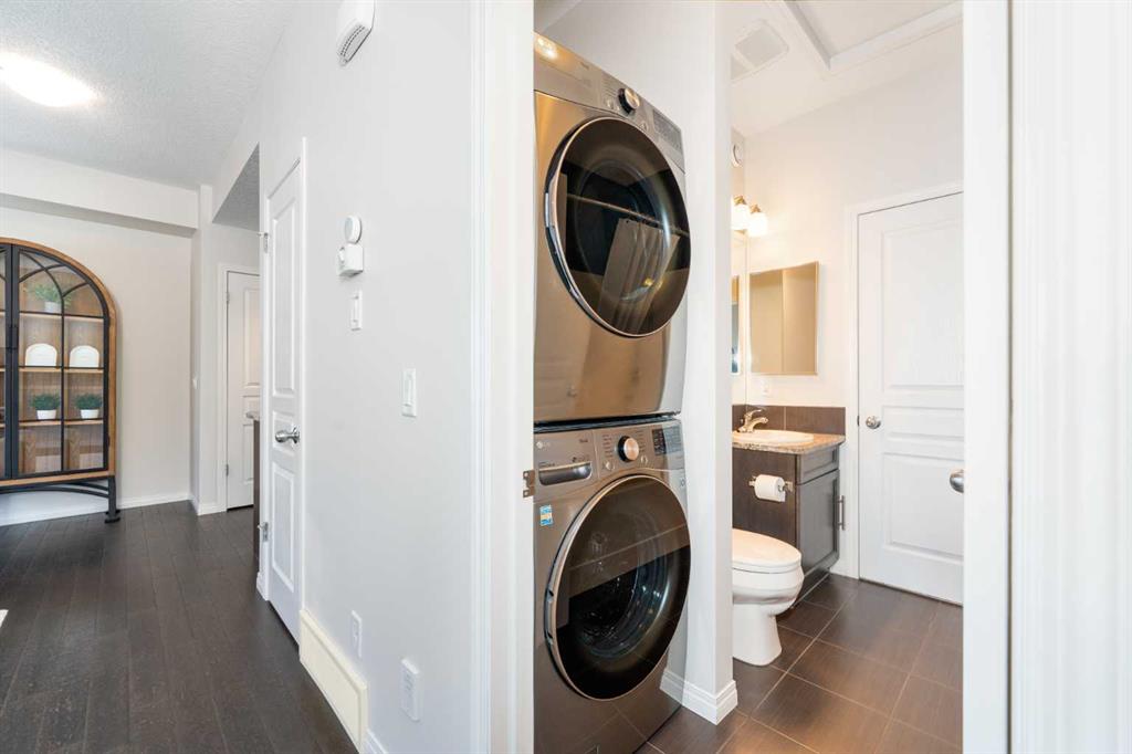 Welcome to this charming 1-bedroom, 1-bathroom end-unit townhouse in the desirable Auburn Bay community of Southeast Calgary. With its bright and open layout, this home is perfect for first-time buyers, downsizers, or investors looking for a well-maintained property in a vibrant lakeside neighbourhood. Step inside to a spacious living room flooded with natural light from the additional end-unit windows, creating a warm and inviting atmosphere for relaxing or entertaining. The galley-style kitchen features 41-inch high cabinets, granite countertops, and stainless steel appliances, providing both style and functionality. Enjoy your meals in the adjacent dining area or take the party outside to your private balcony, complete with a BBQ gas line rough-in, ideal for summer cookouts. The home offers cork and tile flooring throughout the main living areas for durability and easy maintenance, while the bedroom is cozy and carpeted, offering comfort and quiet. The 4-piece bathroom boasts a functional layout and full-sized laundry with convenient access from both the bedroom and the main living area. Storage is never an issue, with plenty of closets throughout, a storage room under the stairs, and additional space downstairs with direct access to the single attached garage. Modern conveniences include air conditioning, and the interior has been freshly painted throughout for a bright, move-in-ready feel. Major updates include a new roof installed in 2025 and a new garage door, providing peace of mind and long-term value. Being an end unit means more natural light and extra privacy, while the building is well maintained with low condo fees, making this a smart and affordable choice. Living in Auburn Bay offers an unbeatable lifestyle. Enjoy 4-season lake access with walking paths, parks, playgrounds, and a vibrant community feel. The area is also conveniently located near shopping, restaurants, schools, and major roadways for easy commuting throughout Calgary. This townhouse combines style, comfort, and convenience in a sought-after lakeside community. With recent updates, abundant storage, and a bright, open layout, it’s a move-in-ready home you’ll love. Don’t miss the opportunity to make this Auburn Bay gem yours!