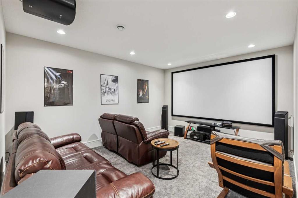 The finished basement offers a recreation/media room, two bedrooms, a full bathroom with heated floors, and a second laundry area.