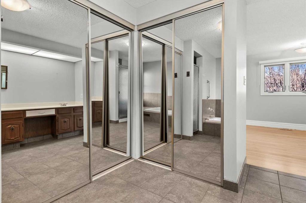 Updates include - Kitchen renovation ($100,000) cabinetry/island, quartz counters, soft-close drawers & pullouts, stainless appliances (2015), 2 sink areas, Upper level 4 pce bath renovated (2015), hardwood flooring throughout main (excluding back entrance & 2 pce. bath), hardwood up stairs continuing down the hall, primary bedroom and sitting area (2015) most windows replaced (2015–present), front door (2015), two upper level solar skylights (2015), primary balcony reconstructed (2020), cedar shake roof inspected (2024), furnace (2023), Furnace serviced (2025), Hot water tank replaced (Jan 2026), fence replaced. A wonderful family home with access to Stoney Trail SW and allows easy access to travel in all directions beyond the city limits. Offer pending Feb 25. Seller welcomes showings