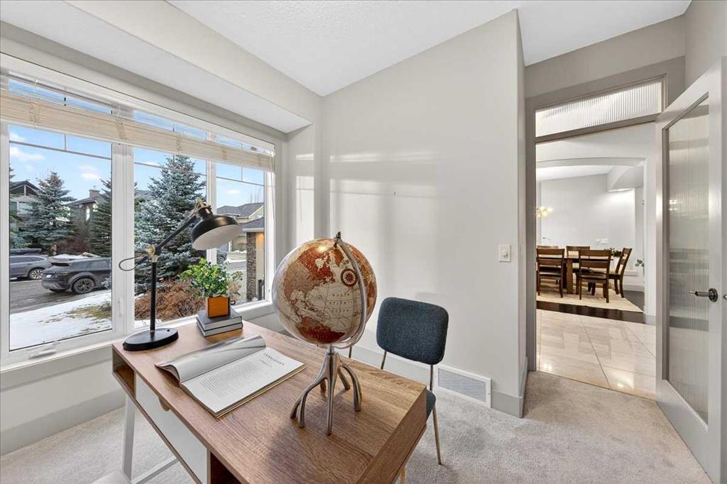 Welcome to this exceptional executive residence nestled in the prestigious enclave of Discovery Ridge, backing onto Calgary’s treasured natural reserve. Surrounded by mature trees, scenic pathways, and just moments from Griffith Woods Park and the Elbow River, this is a home that offers rare privacy, refined design, and an elevated lifestyle. With more than 2,900 sq. ft. of above-grade living space and a fully finished lower level, this beautiful home welcomes you with a sense of openness and grandeur. The impressive living room offers soaring two-storey ceilings and expansive windows overlooking the forest, creating a bright, airy space filled with natural beauty. The heart of the home is the gourmet kitchen, featuring generous cabinetry, expansive prep space, a walk-in pantry, and an inviting breakfast nook overlooking the trees — perfect for everyday living and entertaining alike. A main-floor office, elegant formal dining area, and a functional mudroom with laundry and direct garage access complete the thoughtfully designed main level. Upstairs, the private retreat continues with a spacious primary bedroom offering a luxurious 5-piece ensuite and walk-in closet. Two additional bedrooms, a full bath, a cozy family lounge, and a bright sunroom overlooking the open-to-below living space provide comfort and versatility for growing families or guests. The finished basement adds incredible flexibility with a massive recreation area, additional lounge space, a full 3-piece bathroom, and ample storage — ideal for a home theatre, gym, or games room. Step outside to a serene, tree-lined backyard where nature becomes part of your everyday living. Whether enjoying morning coffee or evening gatherings, the peaceful setting offers unmatched privacy in one of Calgary’s most coveted west-side communities. Located minutes from West Hills Shopping Centre, top-rated schools, downtown access, and extensive trail systems, this is luxury living without compromise. Homes of this caliber in Discovery Ridge are rarely available — this is a true retreat in the city. Book your viewing today!