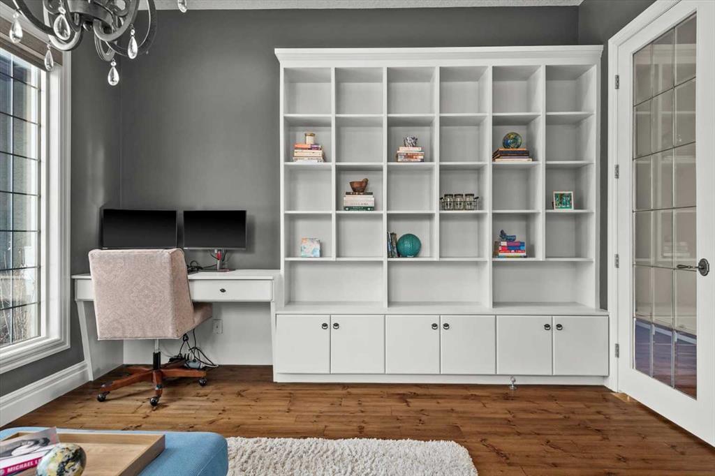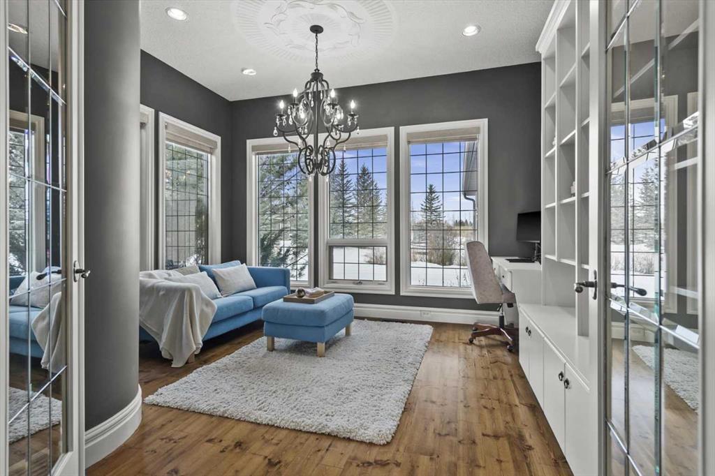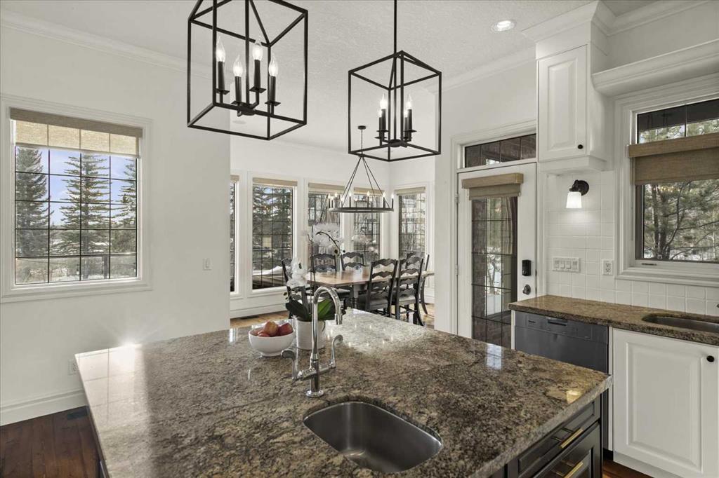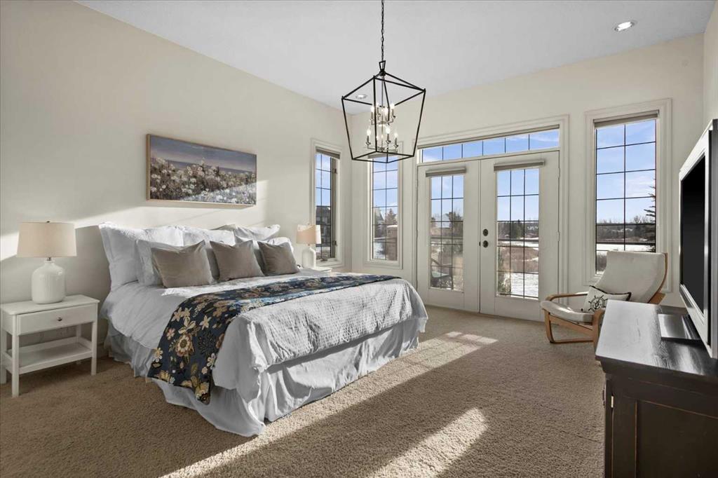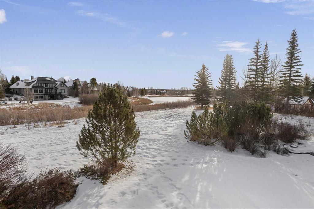 * OPEN HOUSE SATURDAY FEB 7, 1-3 PM* Stunning walk-out bungalow perfectly positioned on a rare, private one-acre lot backing onto a tranquil pond in prestigious Elbow Valley. This warm and open home is flooded with natural light, with expansive windows that seamlessly bring the outdoors in. The interior has been refreshed with new paint throughout most of the home, updated light fixtures, and renovated lower-level bathrooms. The gourmet kitchen features ceiling-height cabinetry, stainless steel appliances, a central island, and walk-in pantry, flowing into a spacious dining area with access to the west-facing wraparound deck with sleek glass railing, ideal for enjoying the serene views. The great room impresses with vaulted ceilings, a focal gas fireplace custom built-ins and gorgeous views. An expansive office with wall of built-ins is perfect for days when you are working from home. The primary retreat offers a 5-piece ensuite, walk-in closet, and private balcony. Premium main floor finishes include 10-foot ceilings, 8’ solid core doors, and hardwood flooring. The fully developed walk-out level features 9-foot ceilings, radiant in-floor heating, three bedrooms, two full bathrooms, bar, fireplace and expansive recreation space. Oversized triple garage provides ample space for vehicles, storage, or toys. Elbow Valley is a master planned bareland condo community with resident access to lakes, peddle boats, beach, clubhouse, tennis/pickleball courts, basketball courts, and walking paths. A truly special property in an outstanding community!