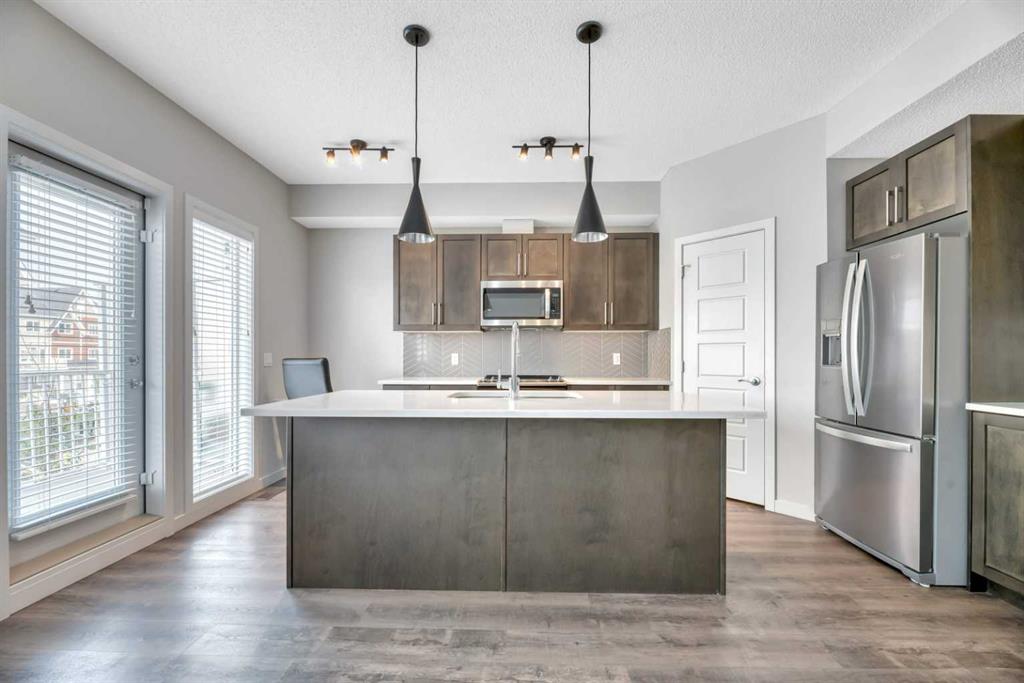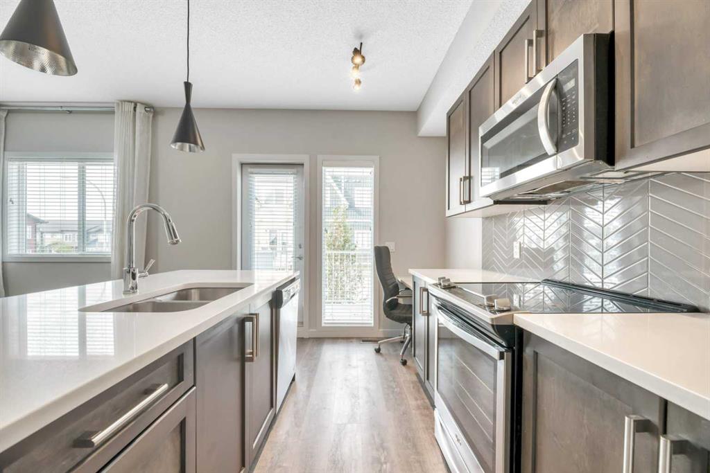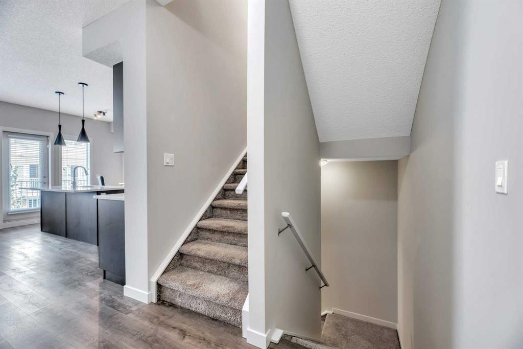 SELLER IS WILLING TO PUT UP TO $2,000 towards the buyer's LEGAL FEES (that's a direct SAVINGS)! Welcome to 104, 32 Red Embers Parade NE — a stylish and well-maintained three-storey townhome in the vibrant community of Redstone. With nearly 1,279 sq ft (RMS) of above-grade living space, this home offers a bright and functional layout perfect for modern living. The entry level provides a spacious foyer, storage/utility room, and access to the single attached garage. On the main living floor, natural light fills the open-concept kitchen, dining, and living areas. The kitchen showcases stainless steel appliances, full-height cabinetry, a pantry, and ample counter space. The living room flows seamlessly to a private balcony — ideal for morning coffee or evening BBQs. A convenient 2-pc powder room completes this level. Upstairs, find two bedrooms, each with its own full bathroom. The primary suite features a walk-in closet and 4-pc ensuite, while the second bedroom is served by its own 4-pc bath. Upper-floor laundry adds everyday convenience.