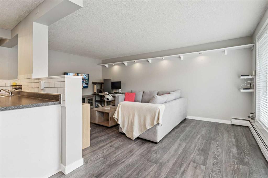 Welcome to an one-bedroom condominium on a tranquil, tree-lined street in Sunalta. Spanning a generous 600 square feet, this residence features an open, sun-filled plan that enhances everyday living and entertaining. The spacious living area comfortably accommodates a full range of furnishings and offers abundant storage solutions.