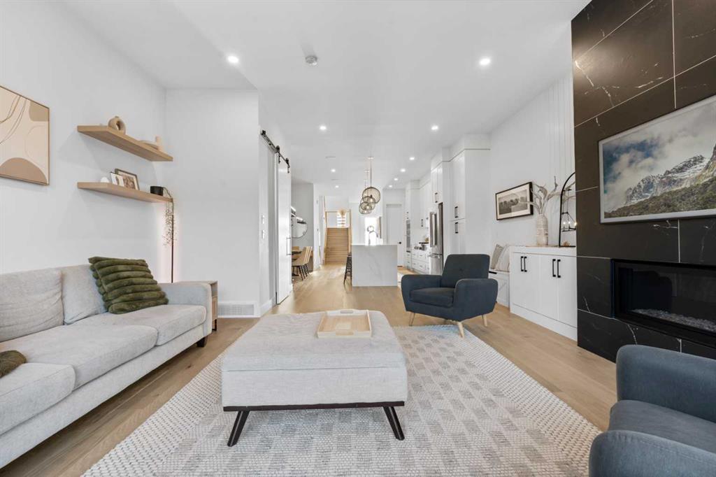 Welcome to modern farmhouse luxury living in the highly sought-after community of Altadore! This open-concept home showcases exceptional design and craftsmanship throughout, featuring 10’ ceilings, wide-plank flooring, and a layout ideal for both everyday living and entertaining. The heart of the home is a beautifully appointed chef’s kitchen with high-end stainless steel appliances, expansive quartz countertops, a large island perfect for family meals and hosting, and ample pantry storage, flowing seamlessly into the dining area and a stylish living room highlighted by a modern gas fireplace and feature wall. A spacious mudroom with built-in storage adds everyday functionality, while the striking front entry staircase emphasizes the impressive width of the home and creates a welcoming first impression. Upstairs offers 3 generously sized bedrooms, including a showpiece primary retreat with his-and-hers walk-in closets and a spa-like ensuite featuring a freestanding tub, dual vanities, glass shower, and private water closet, while the additional bedrooms each include spacious closet space and a full bathroom to share, complemented by a thoughtfully designed upper-level laundry room. The fully developed lower level features a large media and recreation room and a dedicated basement office, offering excellent flexibility. Designed for effortless indoor–outdoor living, oversized sliding doors lead to a large backyard deck with added railing, complemented by low-maintenance turf, creating the perfect space for entertaining and relaxing. Recent upgrades include a central air conditioning unit, a garage-installed EV charger, and a water conditioning system, adding comfort and efficiency throughout the home. Finished with premium materials, custom cabinetry, floor-to-ceiling windows, quality appliances and fixtures, and truly impressive attention to detail, this move-in-ready Altadore home offers an unbeatable lifestyle just steps from shopping, dining, parks, Marda Loop, the dog park, and minutes to downtown.