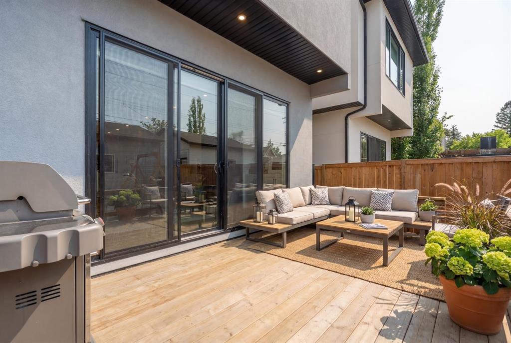 Welcome to modern farmhouse luxury in the highly sought-after community of Altadore. This meticulously finished home combines exceptional design with thoughtful craftsmanship at every turn. The open-concept main floor boasts soaring 10’ ceilings, wide-plank flooring, and a layout designed for both daily living and entertaining. At the heart of the home, the chef’s kitchen impresses with high-end stainless steel appliances, expansive quartz countertops, a large central island perfect for gatherings, and ample pantry storage, flowing seamlessly into the dining area and living room, complete with a modern gas fireplace and feature wall. A spacious mudroom with custom built-ins adds everyday convenience, while the striking front-entry staircase enhances the home’s generous width and makes a memorable first impression. Upstairs, three generously sized bedrooms include a showpiece primary retreat with his-and-hers walk-in closets and a spa-inspired ensuite featuring a freestanding tub, dual vanities, glass shower, and private water closet. Two additional bedrooms share a full bathroom, complemented by a thoughtfully designed upper-level laundry room. The fully developed lower level offers a large media and recreation area plus a dedicated home office, providing flexibility for work and play. Oversized sliding doors create effortless indoor–outdoor living, opening to a large backyard deck with railing and low-maintenance turf—ideal for entertaining or relaxing. Recent upgrades, including central air conditioning, a garage-installed EV charger, and a water conditioning system, enhance comfort and efficiency. Finished with premium materials, custom cabinetry, floor-to-ceiling windows, and top-quality appliances and fixtures, this move-in-ready Altadore home delivers an unparalleled inner-city lifestyle just steps from shopping, dining, parks, Marda Loop, the dog park, and minutes to downtown.