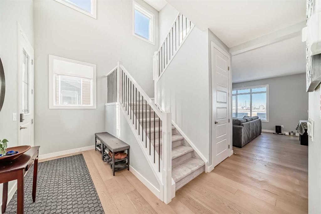 A warm, elegant townhome with absolutely NO CONDO FEES! Because of the front ATTACHED DOUBLE GARAGE and smart layout with 1600+ sqft, it feels more like a “real” home than a typical townhouse. Inside, you’ll notice calm blue-grey tones, light HARDWOOD flooring, and a bright, relaxed vibe that makes the whole space feel easy to live in. Plus, the TRIPLE-PANE WINDOWS keep things quiet and energy-friendly. The main floor has an open design with a VAULTED CEILING as you enter. The kitchen has QUARTZ counters, an ISLAND, a corner PANTRY, and plenty of room to cook. Just steps away, the living area features an electric FIREPLACE that gives the room a comfortable glow - perfect for movie nights or lazy Sundays. The dining area is sized perfectly for a large table to feast with friends. And the BACK DECK is another bonus for BBQs and summer soirees. Upstairs, a BONUS ROOM sits between the bedrooms - use it as a play space, hangout zone, or whatever fits your lifestyle. The PRIMARY bedroom includes a WALK-IN CLOSET and an ensuite with DOUBLE SINKS and a WALK-IN SHOWER. Two more bedrooms, a second full bathroom, and upstairs laundry make daily routines easy. The BASEMENT is unfinished, giving you the chance to design it your way - a rec room, a home gym, a fourth bedroom and bathroom, or even extra storage. And let’s not forget there’s also CENTRAL A/C for those warm summer days. Lakepointe is a family-friendly neighbourhood with easy access to schools, parks, pathways, shopping, and of course, CHESTERMERE LAKE. It’s the kind of place where you can walk the dog, hang out at the park, or enjoy a lakeside afternoon. If your wish list includes a home that feels super stylish and practically brand new, 852 Marina Drive is a fantastic fit!