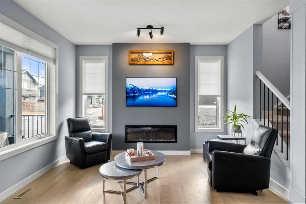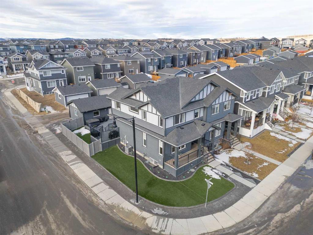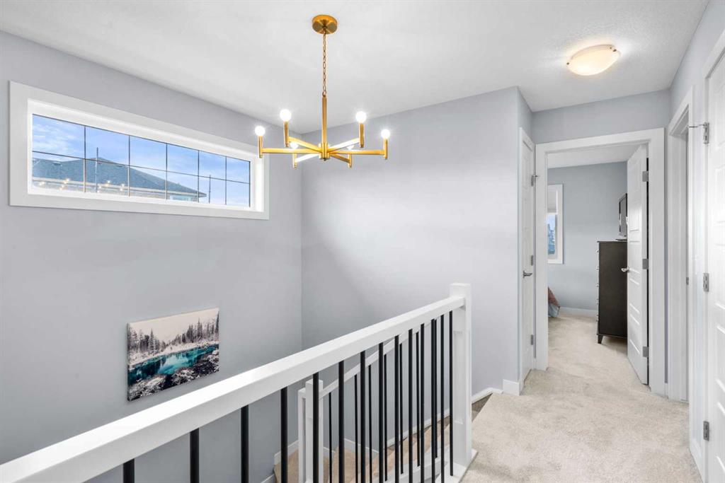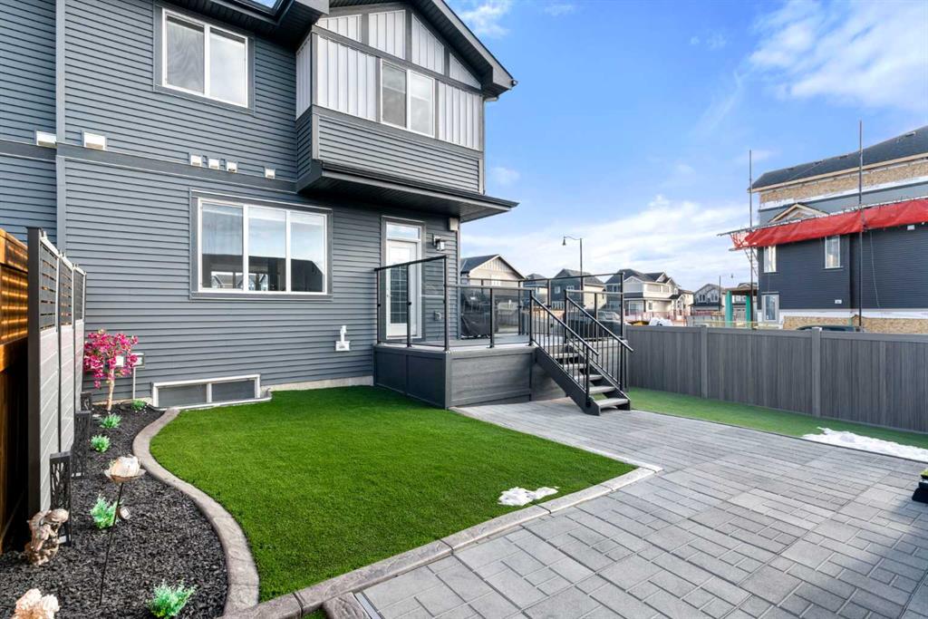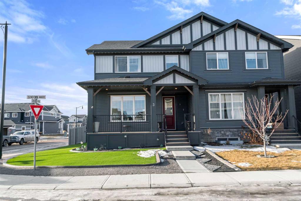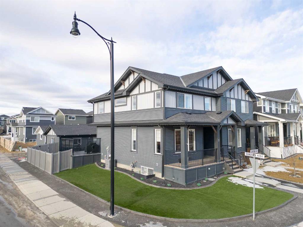 ** OPEN HOUSE SATURDAY, 17 JANUARY FROM 12-3PM** Welcome to this beautiful corner-lot duplex located in the family friendly community of Sunset Ridge. From the moment you arrive, you’re welcomed by a large covered front deck, the perfect spot to enjoy your morning coffee while soaking up the sunrise. Inside, the main level boasts 9 foot ceilings and showcases stylish engineered hardwood flooring while being filled with natural light from expansive windows. The inviting living room offers a cozy space to gather with family for movie nights, elegantly complemented by a modern electric fireplace to set the mood. The open-concept kitchen is both functional and stylish, featuring upgraded stainless steel appliances including a microwave hood fan, two-tone shaker-style cabinetry, quartz countertops, a large island with room for five seats, and a seamless flow ideal for entertaining. Upstairs, the spacious primary bedroom offers stunning mountain views and a well-appointed 4-piece ensuite with double vanities and quartz countertops which leads you to your walk in closet. Two additional bedrooms, a full bathroom, and convenient upper-level laundry complete the second floor. The basement comes with 9 foot ceilings and a bathroom rough in making it ready for the creative minds of its next owners. The attention to detail continues outdoors where the current owners spared no expense! The lot is fully landscaped with a zero-maintenance yard that truly stands out amongst the competition. The entire lot is finished with artificial turf, rubber mulch, custom rubber curbing, and rubber patio stones leading to the double detached garage. The back yard is completed with an oversized, permitted vinyl deck that is perfect for entertaining, while its glass panel railing ensures uninterrupted views of the always-green backyard and the kids playing amongst it. Encircling the backyard is vinyl fencing, reinforcing the home’s thoughtfully designed, low-maintenance lifestyle. Additional features include Gemstone lighting, additional parking next to the garage, air conditioning for year-round comfort, and a dual valve quick release gas line on the rear deck allowing for bbq and gas fire pit use at the same time. This exceptional home combines thoughtful interior design with extensive exterior upgrades. Don’t miss your opportunity to experience this beautiful property and envision it as your next home.