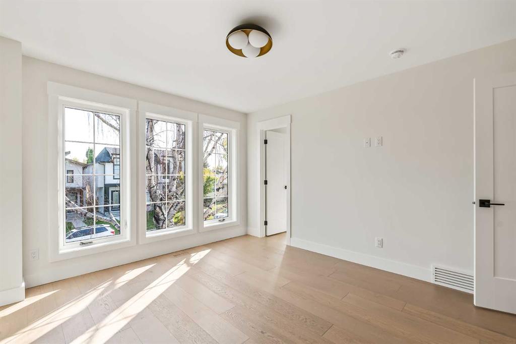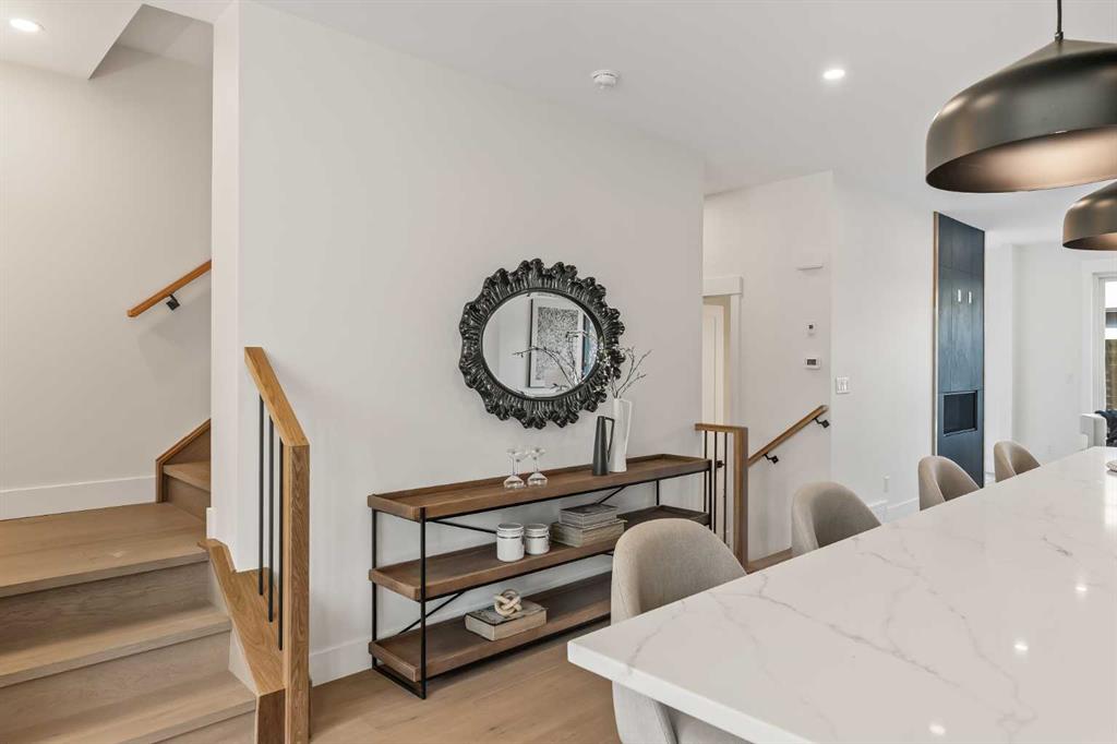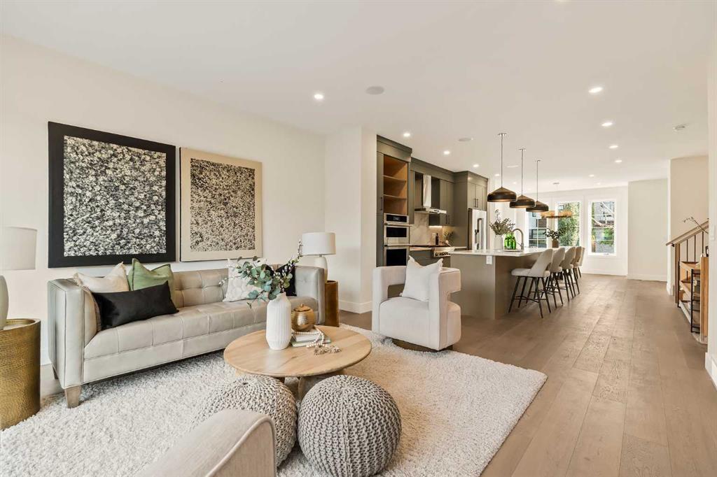 Proudly presenting a stunning urban-inspired masterpiece in coveted Killarney. Thoughtfully designed & impeccably crafted, this three-story residence offers nearly 3650 SF of refined living space. The open-concept main floor showcases striking architectural details, including white oak hardwood floors, custom-milled cabinetry, oak & metal railings, & expansive windows that bathe the interior in natural light. The kitchen stands as a true showpiece featuring bespoke cabinetry with undermount lighting, exquisite quartz slab countertops & backsplash, premium JennAir appliances, Silgranit sink, & a impressive 12-foot island with seating for five. In the living area, a handsome floor-to-ceiling fireplace surround, & 8-foot garden doors make a bold yet sophisticated statement while white oak hardwood, mullioned windows, & an inviting dining area further elevate the curated, light-filled main floor. Completing the level is a convenient mudroom with built-ins & a pretty powder room. The gorgeous oak hardwood continues to the second level where the centrally situated bonus room is flanked by two distinguished bedrooms, each boasting its own ensuite with custom vanities, quartz counters, & beautifully tiled showers with glass doors while spacious walk-in closets with built-ins & large windows enhance the comfort & appeal of these inviting retreats. The third level is a sanctuary of elegance and comfort. The airy primary suite is flooded with natural light & features expansive sliding doors to a private balcony perfect for enjoying quiet morning coffee from the convenient beverage centre. The stunning ensuite exudes spa-like luxury with double custom oak vanities & refined quartz countertops, a dramatic steam shower, in-floor heating, & an opulent stand-alone waterfall tub. Completing this exceptional level is a considerable walk-in closet with extensive custom millwork. The professionally developed lower level delivers 900 SF of living space built with the same attention to detail. Providing a spacious family room, wet bar, fitness area, 4th bedroom with walk-in closet, & 5th bathroom this additional level makes an ideal area for entertaining or accommodating family members & guests. Equally impressive is the extraordinary curb appeal displaying genuine brick accents, James Hardie board cladding, acrylic stucco, mullioned windows, & an aggregate patio. The quiet West-facing backyard offers a tranquil setting perfect for children at play, summer barbecues, or simply unwinding at the end of the day. Other notable highlights of this remarkable residence include a double insulated & drywalled garage, Ply Gem windows with 2-year warranty, Delta fixtures, & 200-amp electrical panel. Situated close to parks, shopping, schools, transit, & the vibrant amenities of 17th Ave, this extraordinary property delivers a beautiful lifestyle in an excellent Killarney location. Welcome home to 2013–34 St SW where exceptional design meets timeless luxury.