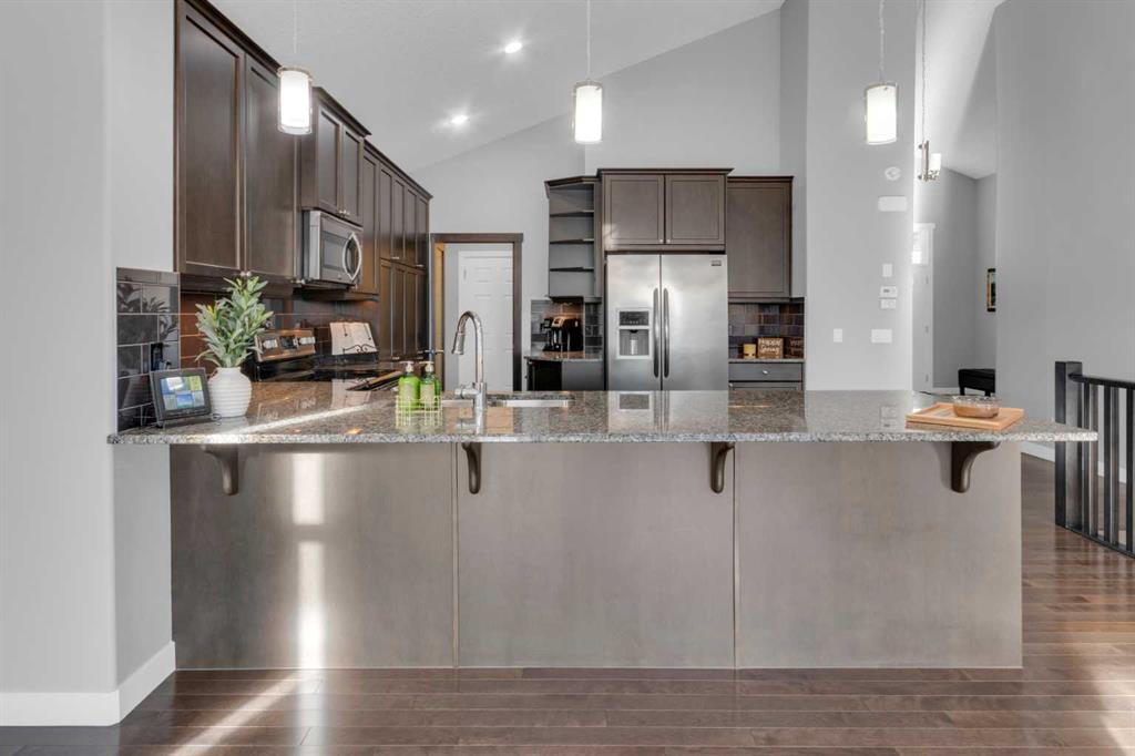 OPEN HOUSE: Saturday, January 17th from 1pm-3pm. Welcome to this wonderfully cared-for 4-bedroom, 2.5-bath bungalow sitting proudly on a sunny corner lot in the always-popular Heritage Hills community of Cochrane. Whether you're a growing crew looking for more space or a seasoned homeowner craving the ease of single-level living, this place brings together comfort, style, and smart design in all the right ways. Kick back on your back deck and enjoy those partial mountain views, then step inside to a layout that just flows. With 1,521 sq ft on the main level and another 1,409 sq ft of fully finished basement bliss, there’s room here for game nights, hobby time, guests, or whatever fun life throws your way. Main Floor Highlights: Bright, breezy, open-concept vibes with a mix of hardwood, tile, and cozy carpet. A chef-worthy kitchen featuring stainless steel appliances, under-cabinet lighting, loads of cabinetry, and all the storage you could wish for. A warm, inviting living room with a gas fireplace with blower and extra windows that practically chase the sunlight. Main floor laundry—because convenience is a love language. A dreamy primary suite with vaulted ceilings, a walk-in closet, and a spa-like ensuite complete with heated floors and a soaker tub. Two decks out back plus a charming front porch—perfect for morning coffees, evening sips, or friendly neighbour chats. Lower Level Features: 9-foot ceilings that make the basement feel anything but “basementy”. A big, cheerful bonus/family room ready for movie marathons or epic play spaces. Two roomy bedrooms with oversized windows. A full bathroom, a wine/beer-making room with its own sink, cold storage, and tons of extra storage throughout. Additional Perks: Radon mitigation system already in place, Hunter Douglas blinds across the main floor, Central vacuum and an assumable security system ($40/month), RV parking pad (or convert it to more green space—your call!) Professionally landscaped yard with underground irrigation and garden beds. A low-maintenance buffer between you and the neighbour for extra privacy. Nestled in a friendly community close to parks, trails, and all of Cochrane’s best amenities, this home gives you that sweet spot of peaceful suburban living with quick access to Highway 1A—hello Calgary, Ghost Lake, and the Rockies! Whether you're planning your next chapter or simply searching for a home that fits your life right now, this Heritage Hills bungalow brings comfort, accessibility, and charm together in one irresistible package.