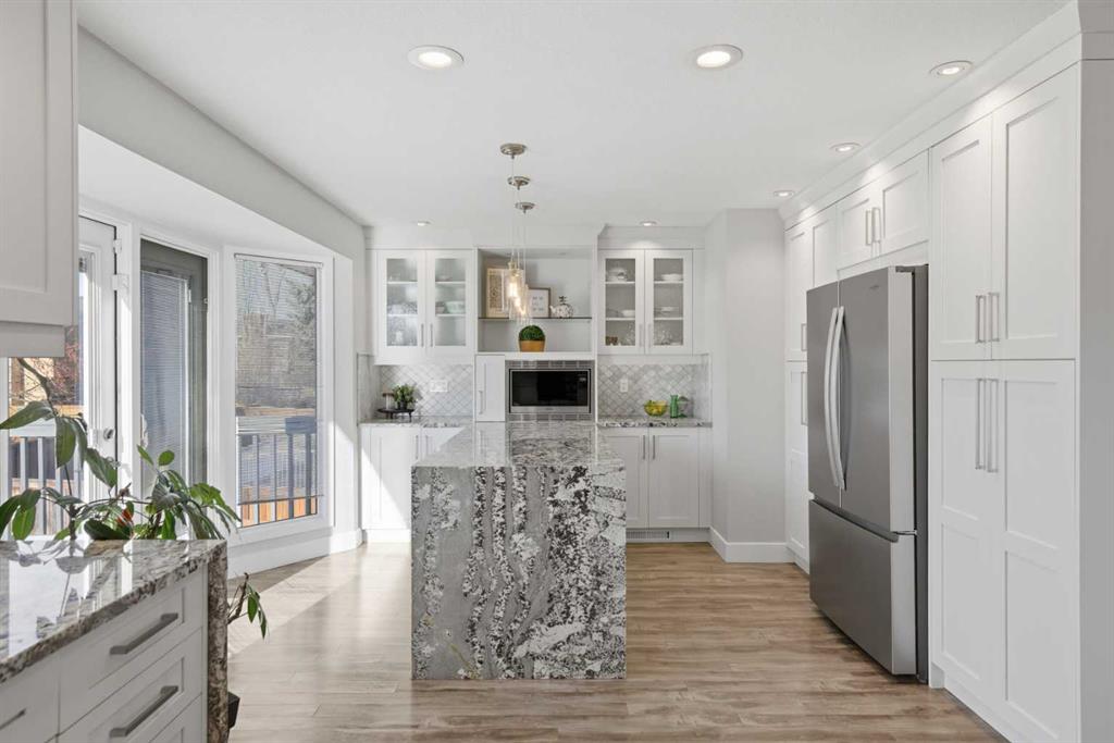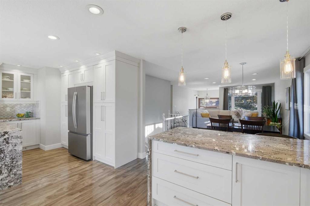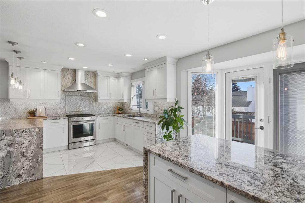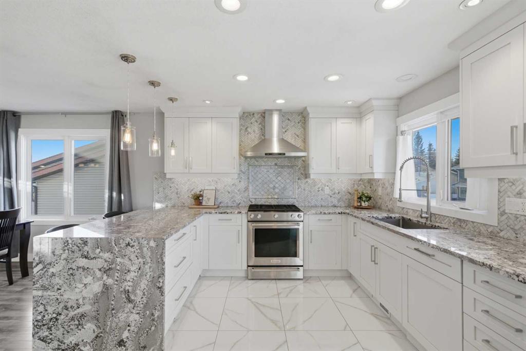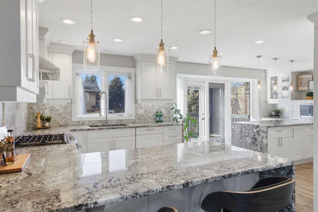 Homes like this rarely come up in Woodbine! A fully RENOVATED 5-bedroom WALKOUT, just steps from Fish Creek Park, excellent schools, and everyday conveniences including Costco, shopping, and quick access to Stoney Trail. Set on a WEST-FACING BACKYARD lot with mature trees, this home offers over 2,700 sq ft of bright, functional living space with oversized windows and an open main-floor layout. The RENOVATED KITCHEN anchors the home with custom millwork and abundant storage, stainless steel appliances including brand new Whirlpool refrigerator, Miele dishwasher, two oversized waterfall islands designed for both daily living and entertaining. The primary suite features a CUSTOM WALK-IN CLOSET and a fully updated ensuite with heated floors, Toto toilet, and steam shower. Two additional bedrooms and a REFRESHED MAIN BATH complete the upper level. The finished walkout basement adds two more bedrooms, a large family room, and flexibility for future legal suite potential (subject to city approval). Additional major updates include a NEW FURNACE, NEW ASPHALT SHINGLES, and NEW WINDOWS throughout. Outside, the sunny landscaped backyard includes garden beds, a veggie garden, deck, and expansive patio, ideal for family gatherings and long summer evenings. With the major updates already done, this home offers space, flexibility, and a location that works for everyday life. Book your showing today!