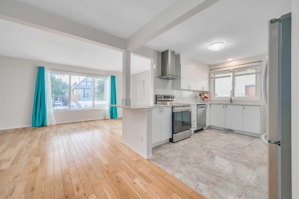 This bright and immaculately maintained home features large windows and a brand-new front entry door (2026). The open-concept main floor offers a spacious living and dining area filled with natural light, complemented by oak hardwood flooring (2016) and fresh paint (2024).