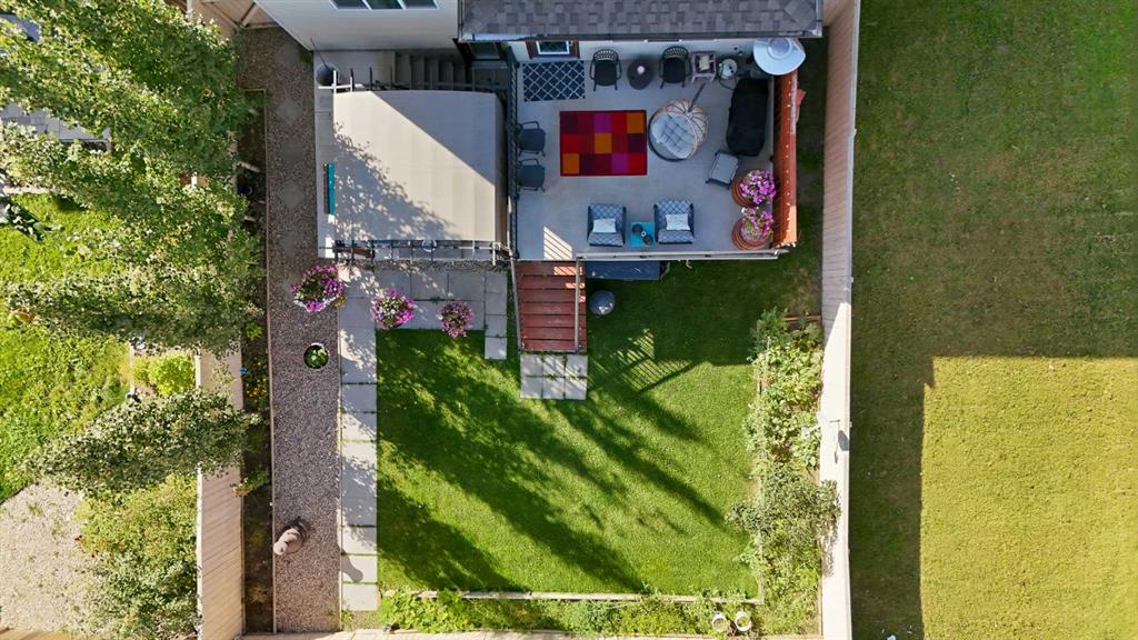 Lot:back lane, back yard, landscaped, triangular lot