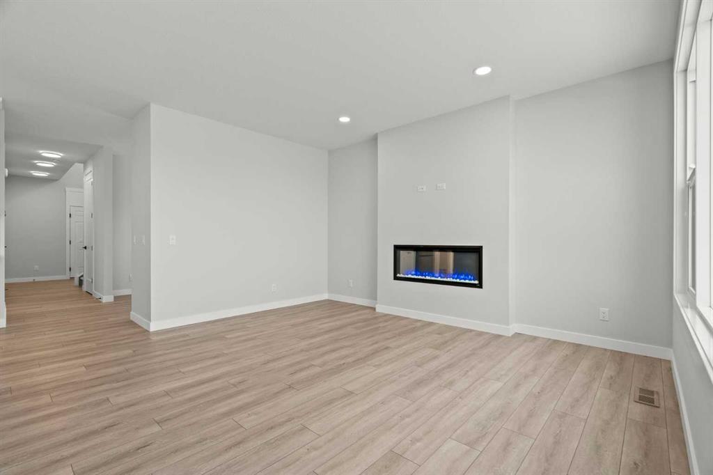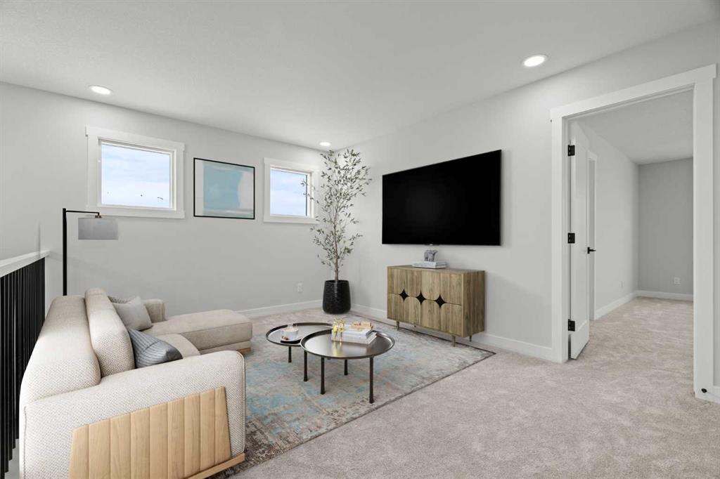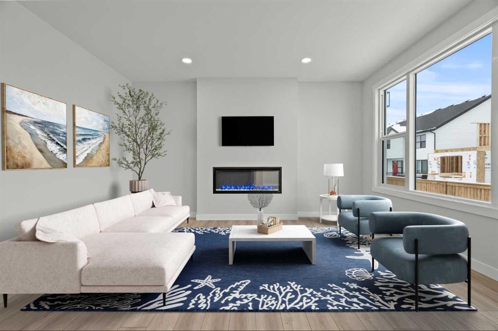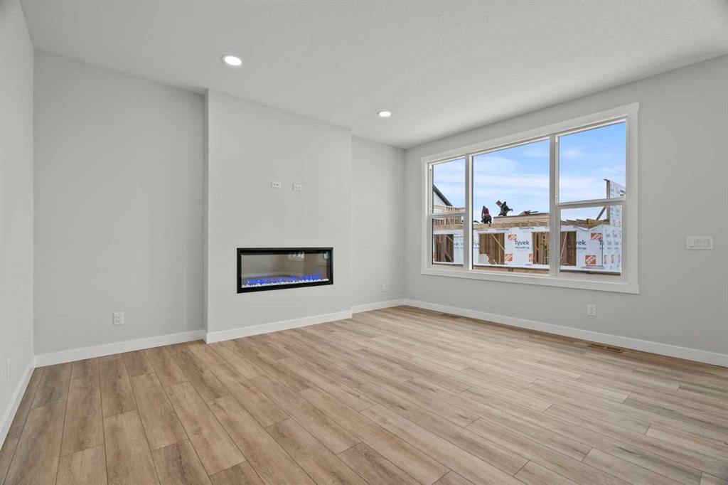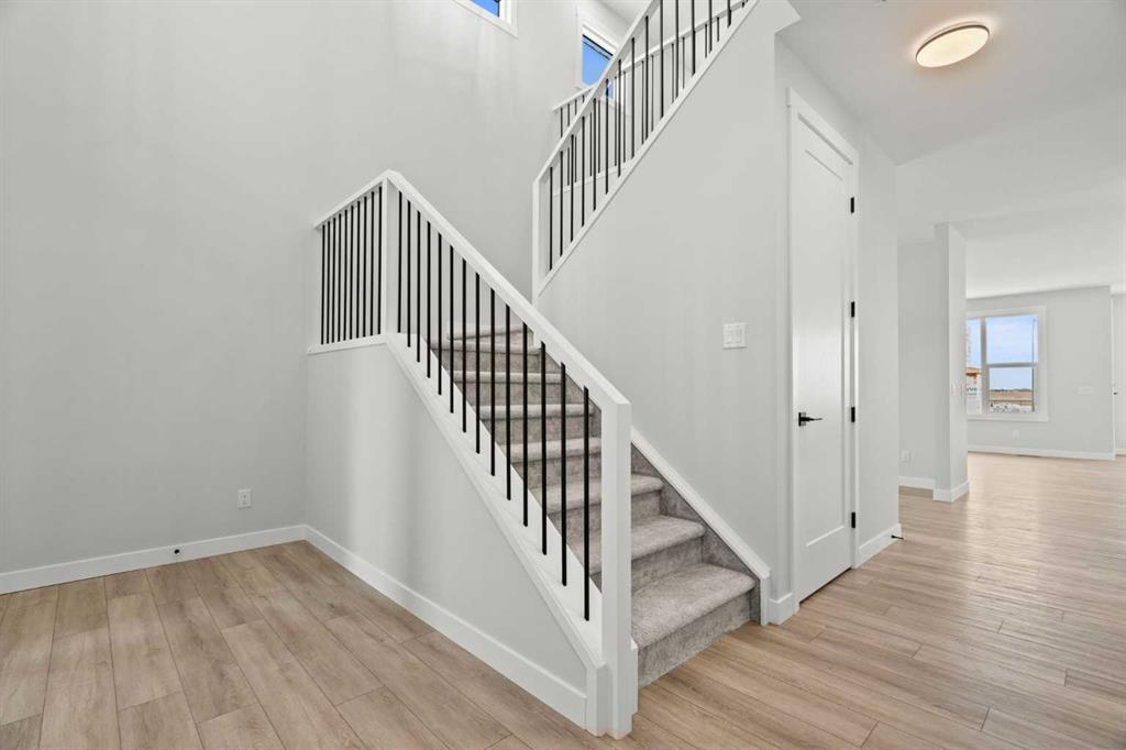 As with all Golden Homes builds, this home comes fully loaded with premium standards, including landscaping with full lot grading and loaming, sod to the side entry, and a front-yard tree; true 9' ceilings on both the main floor and basement; tall 8' doors on the main floor; a side entrance; a mosaic tile shower base; oversized triple-pane windows; matte black iron spindle railings and hardware; upgraded MDF shelving; upgraded carpet underlay; tankless hot water heater; smart home features and appliances; oversized quartz kitchen island; gas line to the deck; full-height painted kitchen cabinets; a complete HRV system; an electric fireplace; full-height wall tile in the ensuite shower; metal soft-close drawers; solar panel rough-in; tile flooring in all full bathrooms and laundry room; and gas line to deck.