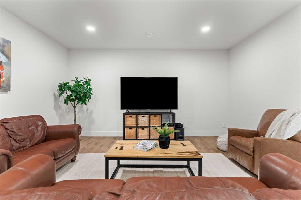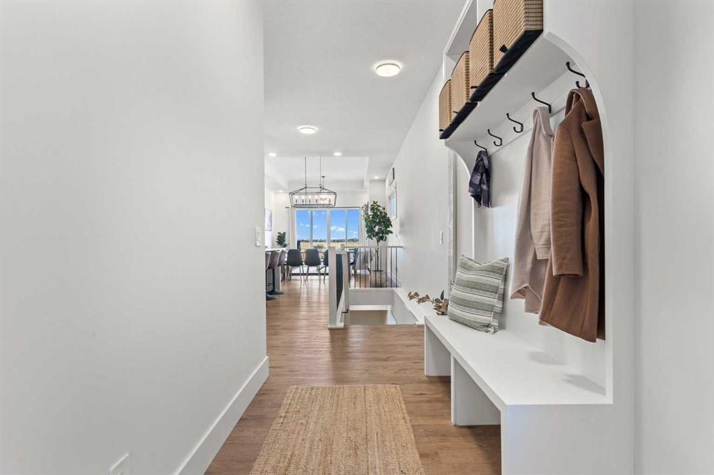 Welcome to extensively upgraded luxury bungalow—this home has been enhanced beyond imagination, offering over 2,500 square feet of beautifully finished living space and the comfort of central air conditioning. Step inside through the front entrance to discover a refined main floor with soaring 10’ ceilings that lead into a chef-inspired kitchen featuring a gas range, full-height chimney hood fan, quartz countertops, premium soft close cabinetry, and an upgraded pantry with sliding drawers. The space opens seamlessly to the living and dining area, where an 11’ tray ceiling, cedar mantel, and gas fireplace create an elegant yet inviting focal point. The primary suite is a true retreat with a dramatic 13’ vaulted ceiling, flowing into a spa-like 5-piece ensuite and a custom walk-in closet with built-in organizers. A stylish den or home office sits just off the main living space behind a striking 10’ cedar barn door, complemented by a beautiful full bathroom. Convenience continues with a thoughtfully designed laundry room and mudroom with lots of storage. The oversized double garage features epoxy flooring, mezzanine storage, hot and cold hose bibs, and in-floor heating, extending the home’s comfort and luxury beyond the interior. Completing the package is a true 9’ basement with in-floor heating, wet bar, two bedrooms , full washroom, and cold storage. It doesn’t stop with the interior- outside this home features Hardie Board siding, custom cedar gables and a fully equipped Eufy security system. This home is also fully landscaped with sodding and washed gravel fireplace and partially fenced. Its unbeatable location is close to schools, the golf course, scenic walking paths, and everyday shopping.